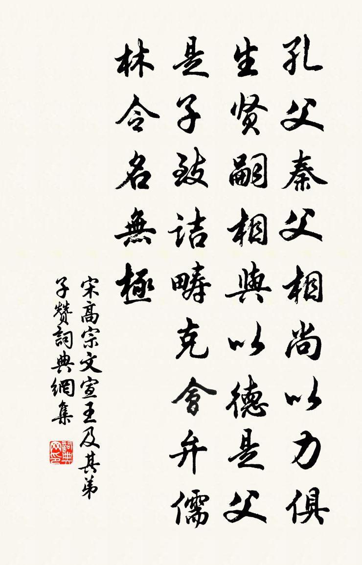 詩詞名句歷史字典書法欣賞書法字典國語詞典說文解字康熙字典古漢語字典標 題 作 者 詩 句 文宣王及其弟子贊作者:宋高宗 朝代:宋代文宣王及其弟子贊原文孔父秦父,相尚以力。俱生賢嗣,相與以德。是父是子,致詰疇克。會弁儒林,令名無極。詩詞問答問:文宣王及其弟子贊的作者是誰?答:宋高宗問:文宣王及其弟子贊寫於哪個朝代?答:宋代宋高宗文宣王及其弟子贊書法欣賞文宣王及其弟子贊書法作品詩詞推薦瀟湘夜雨(濡須對雪)周紫芝〔宋代〕樓上寒深,江邊雪滿,楚台煙靄空濛。一天飛絮,零亂點孤篷。似我華顛雪領,渾無定、漂泊孤蹤。空淒黯,江天臨行獻李尚書崔紫雲〔唐代〕從來學制斐然詩,不料霜台御史知。忽見便教隨命去,戀恩腸斷出門時。浣溪沙(示孟氏女)仲並〔宋代〕舉案家風未肯低。清心端自秀深閨。芝蘭玉樹寧馨兒。早歲安禪靈照女,靜中經卷手常攜。聲名要與斷機齊。日鑄山中阻雪釋文珦〔宋代〕來訪幽人宿,春風未變和。水聲依澗遠,雪意向山多。坡竹摧新粉,杉失舊柯。山童曉相報,鹿跡夜曾過。宮詞張公庠〔宋代〕八月金莖露有結,晨曦纏上散餘霞。朱書十字黃封酒,先賜王公執政家。和三司晏尚書秋詠宋祁〔宋代〕霜繁天白雁行單,灌莽梢梢矗早寒。正是河山搖落處,莫輕離思欲憑欄。九日即事雪中見菊家鉉翁〔宋代〕怪得西風吹袂涼,客中又過一重陽。今年喜見東籬雪,要與黃花共晚香。與客送仲白葬回登石室劉克莊〔宋代〕絕頂荒寒斷客過,偶攜之子共捫蘿。縱觀天外皆鯨浸,下視城中等蟻窠。悼友孤懷方濩落,逢僧逆境暫銷磨。夜歸呈齡叟陳著〔宋代〕寥寥古道獨開門,一見無言心已聞。別後黃塵留四月,坐來清雨洗三分。鱗鱗秧活方吞水,翼翼山飛欲舞雲。此景木蘭花令(次前韻再呈功甫)黃庭堅〔宋代〕青壺乃似壺中謫。萬象光輝森宴席。紅塵鬧處便休休,不是箇中無皂白。歌煩舞倦朱成碧。春草池塘凌謝客。共君閒居白居易〔唐代〕空腹一盞粥,飢食有餘味。南檐半床日,暖臥因成睡。綿袍擁兩膝,竹几支雙臂。從旦直至昏,身心一無事。心足三都賦左思〔魏晉〕總序蓋詩有六義焉,其二曰賦。楊雄曰:“詩人之賦麗以則。”班固曰:“賦者,古詩之流也。”。先王采焉,以雜興十首劉克莊〔宋代〕曾忝開元供奉班,君恩全護放還山。諸公縱慾俎豆汝,老子安能筆硯間。試拂毛錐嗟已禿,便扶靈壽亦何顏。回頭清明晁公溯〔宋代〕便覺近長夏,溫風蠶欲成。冠欹知發少,衣薄喜身輕。初荻青穿水,繁陰綠滿城。朝來試新火,茶鼎聽松聲。次韻趙帥四首陳造〔宋代〕酒會頻頻詩課忙,從公只爾了星霜,虛舟自昔安驚浪,左角從渠赴敵場。戀月每忘寒夜永,寄梅渾訝驛書香。吟邊為商隱賦篔房釋文珦〔宋代〕其篔非俗本,清韻古今同。渭上曾千畝,房邊又一叢。月生多散亂,風過玉玲瓏。勁節尤宜晚,青青雨露中。明日分弓亭按閱,再用西樓韻范成大〔宋代〕眼看白 * 蒼苔,歲月飛流首屢回。老去讀書隨忘卻,醉中得句若飛來。聞雞午夜猶能舞,射雉西郊不用媒。自笑觀丙辰省試宣鎖作胡仲弓〔宋代〕撒幙焚香冰鑒開,觀君切莫負多才。黜邊取迪渾閒事,只恐紛紛擲甓來。和書觀妙庵秦觀〔宋代〕龍瑞宮中種玉人,誅茅結室傍秋雲。自言洞裡山川別,此處千分未一分。屏居寄獻侍講孫尚書宋祁〔宋代〕僑版農廛陋,飛灰歲琯周。危疴負薪困,生事播精求。雨露遺幽谷,乾坤占一丘。惟餘道邊樹,獨為報春遊。名句推薦全則必缺,極則必反,盈則必虧。呂不韋《呂氏春秋·論·不苟論》 鳥無聲兮山寂寂,夜正長兮風淅淅。李華《弔古戰場文》 一月可曾閒幾日,百年難得閏中秋。慧霖《閏中秋玩月》 漸老念鄉國,先歸獨羨君。簡長《送僧南歸》 秋逼暗蟲通夕響,征衣未寄莫飛霜。張仲素《秋夜曲》 九華山路雲遮寺,清弋江村柳拂橋。杜牧《宣州送裴坦判官往舒州時牧欲赴官歸京》 青青子衿,悠悠我心。佚名《子衿》 文章憎命達,魑魅喜人過。杜甫《天末懷李白》 悵望千秋一灑淚,蕭條異代不同時。杜甫《詠懷古蹟五首·其二》 香到酴醾送晚涼,荇風輕約薄羅裳。曲闌憑遍思偏長。葉小鸞《浣溪沙·初夏》