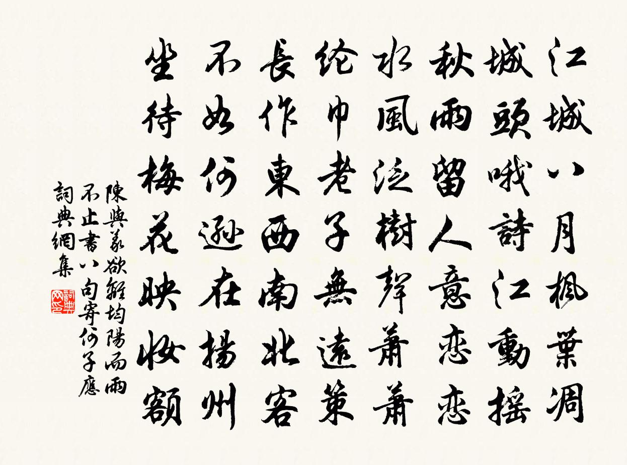 江城八月楓葉凋,城頭喔詩江動搖。秋雨留人意戀戀,水風泛樹聲蕭蕭。