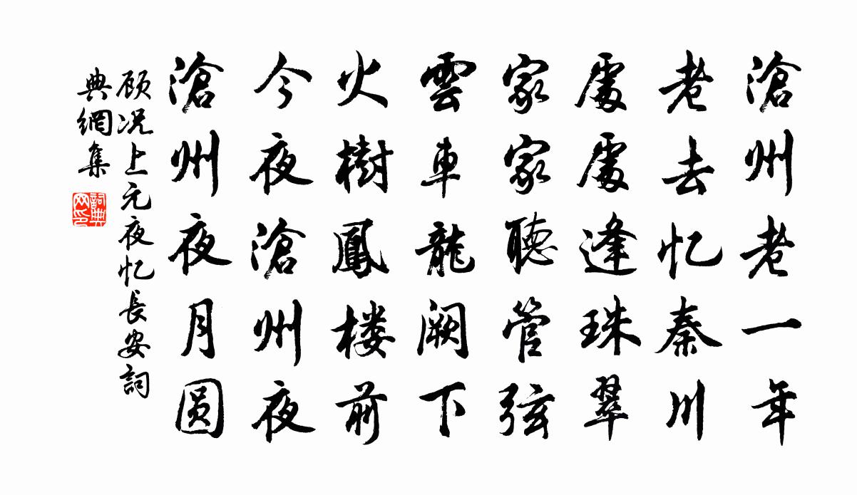 詩詞名句歷史字典書法欣賞書法字典國語詞典說文解字康熙字典古漢語字典標 題 作 者 詩 句 上元夜憶長安作者:顧況 朝代:唐代上元夜憶長安原文滄州老一年,老去憶秦川。處處逢珠翠,家家聽管弦。雲車龍闕下,火樹鳳樓前。今夜滄州夜,滄州夜月圓。詩詞問答問:上元夜憶長安的作者是誰?答:顧況問:上元夜憶長安寫於哪個朝代?答:唐代問:上元夜憶長安是什麼體裁?答:五律顧況上元夜憶長安書法欣賞上元夜憶長安書法作品注釋全唐詩:卷266_16詩詞推薦水紋二首楊萬里〔宋代〕池面炎風起,煙痕一拂微。無形還有影,掠水去如飛。歸田樂引/歸田樂黃庭堅〔宋代〕對景還銷瘦。被個人、把人調戲,我也心兒有。憶我又喚我,見我嗔我,天生教人怎生受。看承幸廝勾。又是尊前禮明安塔二偈釋正覺〔宋代〕石床冷臥禪虎,階蕪秋跳草蟲。有念耿懷陳事,無言淒立西風。蛟梅堯臣〔宋代〕橋邊三尺劍,江上六鈞弧。漢武帝何處,周將軍已無。織綃深有室,泣淚自為珠。誰為九淵害,人猶能爾圖。二兒次韻予亦複次韻二首曾幾〔宋代〕此君今日醉,不復記方隅。窈窕因吾有,恢台到爾無。青猶須雨沐,直不要人扶。旁舍連高柳,何堪與作奴。讀蘇武李陵司馬遷傳華岳〔宋代〕白旄持節使單于,萬里風煙十載余。柳毅不行沙漠路,卻憑歸雁為傳書。滿庭芳 授記定庵李道純〔元代〕學佛學仙,參禪窮理,不離玄牝中間。可憐迷謬,往往□相瞞。一味尋枝摘葉,徒坐破、幾個 * 。堪傷處,外邊蓬萊客 贊尹真人馬鈺〔元代〕無煙漠。集仙觀里飛仙閣。飛仙閣。巍巍高聳,半侵雲廓。尹真法體方圓藥。人還心敬消諸惡。消諸惡。本來靈物偈頌一百零一首釋慧性〔宋代〕春山青,春水綠。草葺葺,花簇簇。若能喪盡目前機,便見廬山真面目。水龍吟(夷陵雪作)管鑒〔宋代〕曉來密雪如篩,望中瑩徹還如洗。梅花過了,東風未放,滿城桃李。碎翦瓊英,高林低樹,巧裝勻綴。更江山秀髮次韻趙賓暘見寄長句方回〔宋代〕百憂攻心成白首,不少自寬死已久。我初作郡猶未貧,□□比□□□□。鹽官王長官新創瑞隱亭方乾〔唐代〕指畫便分元化力,周回秀絕自清機。孤雲戀石尋常住,落絮縈風特地飛。雛鳥啼花催釀酒,驚魚濺水誤沾衣。明年同常和仲謁照老和仲有詩次其韻李流謙〔宋代〕杏花一標凌曉寒,刮眼創見春風遠。天涯作客歸未得,主人好事客疎頑。鳴鳩喚雨綠野淨,遊絲掛空白日閒。只園偈頌五十一首釋大觀〔宋代〕取不得捨不得,不可得中只么得。萬籟收聲兮萬象自閒,秋水吞空兮秋天一色。申屠雪磯見寄韻顧逢〔宋代〕潘閬祠前在,天教得此鄰。百年傳盛事,一巷兩詩人。老境差磻水,高風想富春。但教樽有酒,不必更言貧。頌古九十八首釋印肅〔宋代〕團團如月畫難成,頭角完全鼻沒繩。非是學人藏隱物,雖然識破未通真。曉過南宮聞太常清樂張濛〔唐代〕玉珂經禮寺,金奏過南宮。雅調乘清曉,飛聲向遠空。慢隨飄去雪,輕逐度來風。迥出重城裡,傍聞九陌中。應將晚風楊萬里〔宋代〕晚風不許鑒清漪,卻許重簾到地垂。平野無山遮落日,西窗紅到月來時。游襄陽懷孟浩然白居易〔唐代〕楚山碧岩岩,漢水碧湯湯。秀氣結成象,孟氏之文章。今我諷遺文,思人至其鄉。清風無人繼,日暮空襄陽。南望簡全真二首趙蕃〔宋代〕捐棄悲歌詠白團,未忘衛霍內金盤。要知公子貂裘暖,孰若山人短褐寒。名句推薦何處合成愁。吳文英《唐多令·惜別》 興國在於務農。陳壽《三國志·魏書·辛毗楊阜高堂隆傳》 落花夜雨辭寒食。塵香明日城南陌。吳文英《菩薩蠻·落花夜雨辭寒食》 知古不知今,謂之陸沉,然則儒生,所謂陸沉者也。王充《論衡·卷十二·謝短篇》 人世幾回傷往事,山形依舊枕寒流。劉禹錫《西塞山懷古》 黃塵清水三山下,更變千年如走馬。李賀《夢天》 獨自淒涼還自遣,自製離愁。龔自珍《浪淘沙·寫夢》 合抱之木,生於毫末;九層之台,起於累土;千里之行,始於足下。老子《老子·德經·第六十四章》 一年最好,偏是重陽。吳文英《惜黃花慢·菊》 遠岫出山催薄暮,細風吹雨弄輕陰。李清照《浣溪沙·小院閒窗春色深》