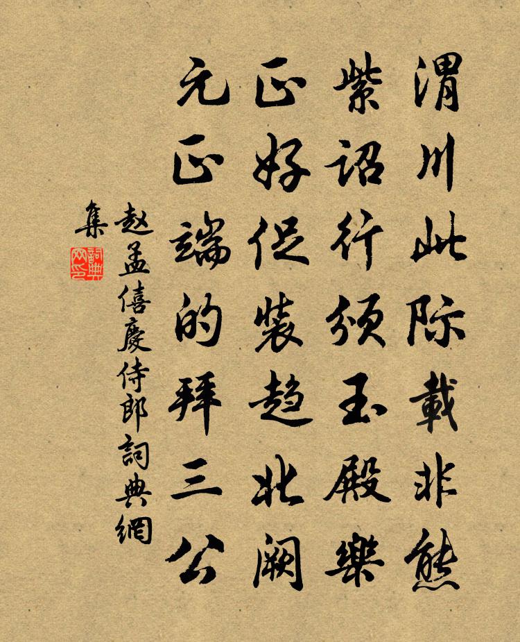 詩詞名句歷史字典書法欣賞書法字典國語詞典說文解字康熙字典古漢語字典標 題 作 者 詩 句 慶侍郎作者:趙孟僖 朝代:宋代慶侍郎原文渭川此際載非熊,紫詔行頒玉殿樂。正好促裝趨北闕,元正端的拜三公。詩詞問答問:慶侍郎的作者是誰?答:趙孟僖問:慶侍郎寫於哪個朝代?答:宋代趙孟僖慶侍郎書法欣賞慶侍郎書法作品詩詞推薦月底修簫譜(寓祝英台近乙未之秋高郵朱使君錢塘北關舟中)張輯〔宋代〕客西湖,聽夜雨。更向別離處。小小船窗,香雪照尊俎。斷腸一曲秋風,行雲不語。總寫入、征鴻無數。認眉嫵。點絳唇·紹興乙卯登絕頂小亭葉夢得〔宋代〕縹緲危亭,笑談獨在千峰上。與誰同賞。萬里橫煙浪。老去情懷,猶作天涯想。空惆悵。少年豪放。莫學衰翁樣。金縷曲(賀趙松廬)劉辰翁〔宋代〕歲事崢嶸甚。是當年、爆竹驅儺,插金幡勝。忽曉闌街兒童語,不為上元燈近。但笑揀、梅簪公鬢。莫恨青青如今前調(謝人送牡丹)李呂〔宋代〕甲帳春風肯見分。夜陪清夢當爐熏。尋香若傍闌乾曉,定見堆紅越鄂君。雕玉佩,鬱金裙。憑誰書葉寄朝雲。蘭芽清心鏡馬鈺〔元代〕菜重芥,果珍李。悟生死之苦,懶窮文理。薄滋味、遠除色聲,更倦看周禮。聚三光,放三里。認三髻,談論清淨次韻和復古春日五絕句司馬光〔宋代〕雪霜衰鬢拔還生,桃李新園長未成。五十尚能勝六十,今年又減去年情。送鄭平叔司勛之陝二首張舜民〔宋代〕憶昔垂髫里閈間,披雲常睹一峰巑。青衫白髮輕憂患,珥筆含香最歲寒。夢寐依稀留北省,家山迤邐近長安。下車夏五朔旦示都兒學書陳著〔宋代〕老去眼生花,兒方學畫鴉。聊將二十字,要識汝傳家。題集賢閣劉禹錫〔唐代〕鳳池西畔圖書府,玉樹玲瓏景氣閒。長聽餘風送天樂,時登高閣望人寰。青山雲繞欄乾外,紫殿香來步武間。曾是贈鄭征君家匡山首春與丞相贊皇公游止溫庭筠〔唐代〕一拋蘭棹逐燕鴻,曾向江湖識謝公。每到朱門還悵望,故山多在畫屏中。和魏定父早春十首王之道〔宋代〕辰瓜醉竹定何如,試問君家種蒔書。坐久幽窗轉斜日,恰憐梅影上衣裾。趙倅兼善再用前韻賦木犀王洋〔宋代〕物外家風本自奇,人間獨步九秋時。誰登月姊青霄露,折得郄詵丹桂枝。韞玉岩扉通戶牖,蕊珠花殿徹藩籬。淵明休日與客燕語既去聽小兒誦書因復作草數紙陸游〔宋代〕賜沐家居謝掾曹,暫將蕭散慰勤勞。琅琅應節兒書熟,亹亹生風客論高。玉屑名牋來濯錦,風漪奇石出臨洮。托盟九月五日得姑蘇謝學士寄木蘭堂官醞梅堯臣〔宋代〕公田五十畝,種秫秋未成。杯中無濁酒,案上唯丹經。忽有洞庭客,美傳烏與程。言盛木蘭露,釀作瓮間清。木蘭郊園聞蟬,寄諸弟韋應物〔唐代〕去歲郊園別,聞蟬在蘭省。今歲臥南譙,蟬鳴歸路永。夕響依山谷,餘悲散秋景。緘書報此時,此心方耿耿。游九鎖高似孫〔宋代〕洞門金畫翠琅玕,杏不多花月溜寒。借得御書經自讀,松風淨洗石棋盤。宿金陵鎮穩寺,望橫山楊萬里〔宋代〕再見橫山滴眼新,山曾勸我脫官身。燈籠簫鼓年年社,酒醆鶯花處處人。忽憶諸公牡丹會,轉頭五柞去年春。野雲送李少府貶峽中王少府貶長沙高適〔唐代〕嗟君此別意何如,駐馬銜杯問謫居。巫峽啼猿數行淚,衡陽歸雁幾封書。青楓江上秋天遠,白帝城邊古木疏。新地用東坡回文韻李洪〔宋代〕春晚落花餘碧草,日長舞蝶妒紅蔫。新荷卷翠簪池面,弱柳垂絲織暝煙。偶書黃庚〔宋代〕老眼看書暗,桑榆景漸催。文章身後貴,懷抱酒邊開。燈火夢猶在,功名心已灰。客來休問字,且覆掌中杯。名句推薦若說沒奇緣,今生偏又遇著他,若說有奇緣,如何心事終虛化?曹雪芹《紅樓夢·第五回》 兵出無名,事故不成班固《漢書·紀·高帝紀上》 波光水鳥驚猶宿, 露冷流螢濕不飛。湯顯祖《江宿》 賢而多財,則損其志;愚而多財,則益其過。司馬光《資治通鑑·漢紀·漢紀十七》 秉忠貞之誠,守退讓之實。陳壽《三國志·魏書·荀彧攸賈詡傳》 昨夜星辰昨夜風,畫樓西畔桂堂東。李商隱《無題·昨夜星辰昨夜風》 山有扶蘇,隰有荷華。佚名《山有扶蘇》 一身轉戰三千里,一劍曾當百萬師。王維《老將行》 日色已盡花含煙,月明欲素愁不眠。李白《長相思三首·其二》 坐到三更盡,歸仍萬里賒。戎昱《桂州臘夜》