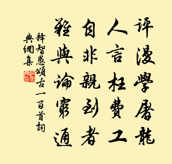 詩詞名句歷史字典書法欣賞書法字典國語詞典說文解字康熙字典古漢語字典標 題 作 者 詩 句 頌古一百首作者:釋智愚 朝代:宋代頌古一百首原文評漫學屠龍,人言枉費工。自非親到者,難與論窮通。詩詞問答問:頌古一百首的作者是誰?答:釋智愚問:頌古一百首寫於哪個朝代?答:宋代釋智愚頌古一百首書法欣賞頌古一百首書法作品詩詞推薦送普上人游雁盪白玉蟾〔宋代〕嶺外猿啼秋樹月,林間鶴唳曉松風。此行雁盪須參透,依舊歸來玉幾峰。杜鵑二首陳著〔宋代〕萬綠陰中拌死啼,如何日夜不能疲。料應飽作秋冬夢,恰好如今是醒時。和范茂才陳宓〔宋代〕小小平欄容易攀,欄邊楊柳又成班。是非榮辱不到地,南北東西都見山。但解心寬長有趣,不因境勝始能閒。從今鹹陽西樓別竇審郎士元〔唐代〕西樓迥起寒原上,霽日遙分萬井間。小苑城隅連渭水,離宮曙色近京關。亭皋寂寞傷孤客,雲雪蕭條滿眾山。時命聽杜鵑思亡弟邵雍〔宋代〕嘗憶去上初夏時,與爾同聽杜鵑啼。杜鵑今年又復至,還是去年初夏時。禽鳥亦知人意切,一聲未絕一聲悲。腸隨蔬飯陸游〔宋代〕春事已闌珊,山村未褪寒。筍生初入饌,薺老尚登盤。僧飯時分缽,園蔬不仰官。枯腸更禁攪,姑置密雲團。早春宴高陵滑少府(得升字)耿湋〔唐代〕且寬沈簿領,應賴酒如澠。春夜霜猶下,東城月未升。清言饒醉客,亂舞避寒燈。名字書仙籍,諸生病未能。上後樂劉先生左史十首用襄陽詩兩句行藏堅晚程公許〔宋代〕千載嗣韓統,斯文諒關天。字袞失所歸,何以革其先。陟屺有遺恨,琢石圖方鐫。百拜涕綆縻,萬一彤史傳。書院即事胡宏〔宋代〕為無經濟學,萬里築幽棲。波漲青冥濶,柳垂春色低。煙花薰小院,風竹掩丹梯。便是神仙宅,世人應未迷。射雉韋應物〔唐代〕走馬上東岡,朝日照野田。野田雙雉起,翻射斗回鞭。雖無百發中,聊取一笑妍。羽分繡臆碎,頭弛錦鞘懸。方將和顏長官百詠漁父朱繼芳〔宋代〕秋風淅淅獵菰蒲,如此江山其可孤。天與玻瓈三萬頃,更添一半夕陽鋪。卜運算元(復自和賦第四首)向子諲〔宋代〕千古一靈根,本妙元明靜。道個如如已是差,莫認風番影。枯木夜堂深,默坐時觀省。月落烏雞出戶飛,萬里關河題苕溪道觀壁鄭子覃〔宋代〕紛紛紅雨入蒼苔,密蔭新成鶯友來。擬逐幽人夢蓬島,一聲裂竹故警回。乘風雨登舟至曲院喻良能〔宋代〕猛雨連天水滿湖,扁舟風撼碧濤粗。掀髯笑詠煙波里,兩岸人應作畫圖。和汪君徐元傑〔宋代〕胸次秋風澗底苹,坐間那得此嘉賓。詩來香迸宵人屋,笑殺元規塵汙人。【雙調】雁兒落過得勝令 春遊吳西逸〔元代〕人銜白玉杯,馬縱黃金轡。簾櫳燕影閒,院落鶯聲碎。酒瓮浸玻璃,睡帳揭金泥。醉寫評花句,夢隨芳草池。別離郡侯雪天開宴即席以填字韻索詩金梁之〔宋代〕昨夜嫦娥弄玉纖,也應掐月作花鈿。為嫌梅影太清瘦,幾乍飛來疏處填。和七兄秋浦韻周必大〔宋代〕遵渚遲魚素,巡檐驗鵲占。江雲懷李白,籬菊詠陶潛。句好那容畫,才高卻道鹽。皇華聊吏隱,清論付廷僉。挽鄢晉步主簿文天祥〔宋代〕此君何坦坦,回首杏園游。魂魄湘潭去,聲名彭澤休。百年中道短,千里故鄉愁。六子三方幼,遺言可淚流。宋玉宅吳融〔唐代〕草白煙寒半野陂,臨江舊宅指遺基。已懷湘浦招魂事,更憶高唐說夢時。穿徑早曾聞客住,登牆豈復見人窺。今朝名句推薦君子恥其言而過其行。孔子弟子《論語·憲問篇》 江上春山遠,山下暮雲長。葛長庚《水調歌頭·江上春山遠》 醉臥沙場君莫笑,古來征戰幾人回?王翰《涼州詞二首·其一》 蝸角虛名,蠅頭微利,算來著甚乾忙。蘇軾《滿庭芳·蝸角虛名》 不成拋擲,夢裡終相覓。王國維《點絳唇·屏卻相思》 做弄得、酒醒天寒,空對一庭香雪。張炎《疏影·梅影》 蠶娘洗繭前溪淥,牧童吹笛和衣浴。貫休《春晚書山家屋壁二首》 霰雪紛其無垠兮,雲霏霏而承宇。屈原《九章》 天下無難事,只怕有心人。曹雪芹《紅樓夢·第四十九回》 憶年十五心尚孩,健如黃犢走復來。杜甫《百憂集行》