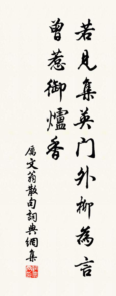 詩詞名句歷史字典書法欣賞書法字典國語詞典說文解字康熙字典古漢語字典標 題 作 者 詩 句 句作者:厲文翁 朝代:宋代句原文若見集英門外柳,為言曾惹御爐香。詩詞問答問:句的作者是誰?答:厲文翁問:句寫於哪個朝代?答:宋代厲文翁句書法欣賞句書法作品詩詞推薦偶題三首王禹偁〔宋代〕白頭厭郎署,病眼欲分司。寸心猶未決,所顧在妻兒。嘉定二年冊皇太子四首佚名〔宋代〕明兩承曜,作貳宣獻。茂德金昭,令譽川流。豫定厥本,永貽迺謀。三朝致養,間寐龍樓。買舟過雙塔夜阻風舟中作謝伋〔宋代〕高閣臨流雙塔寺,扁舟艤岸一帆風。夜潮迷浦難安枕,晝雨翻江只閉篷。人境行時雖甚逆,我身著處本來空。明朝丞相信庵趙公哀詩五首劉克莊〔宋代〕粵從宣靖至炎興,粉飾湖山苑圃增。列聖久無師入洛,三京初有使朝陵。摧鋒指日酋傳首,返旆終身氣拂膺。逸少送張郎中副使自南省赴鳳翔府幕羊士諤〔唐代〕仙郎佐氏謀,廷議寵元侯。城郭須來貢,河隍亦順流。亞夫高壘靜,充國大田秋。當奮燕然筆,銘功向隴頭。白鶴山新居鑿井四十尺遇盤石石盡乃得泉蘇軾〔宋代〕海國困蒸溽,新居利高寒。以彼陟降勞,易此寢處乾。但苦江路峻,常慚汲腰酸。矻矻煩四夫,磽磽斫層巒。彌旬餞魏州判鵬舉邵桂子〔宋代〕搜出指礦遺其沙,鄉雲褒武皆蜀秀,虎豹各自雄須牙。兩京得人廣數路,忍使丘中留子嗟。不然題名百許輩,無一和秘書崔少監春日游青龍寺僧院姚合〔唐代〕官清書府足閒時,曉起攀花折柳枝。九陌城中尋不盡,千峰寺里看相宜。高人酒味多和藥,自古風光只屬詩。見說送客南遷白居易〔唐代〕我說南中事,君應不願聽。曾經身困苦,不覺語叮嚀。燒處愁雲夢,波時憶洞庭。春畬煙勃勃,秋瘴露冥冥。蚊蚋三月十六日為某初度十九日又趙寅仲誕辰俱在金履祥〔宋代〕帝遣銀潢一派來,日長春老起風雷。誰知年少貴公子,儼若儒先老秀才。共作師門湯餅客,早期庭下彩衣萊。明朝李英公勣石介〔宋代〕一言容易廢忠謀,徇主從昏可自尤。今日始知辜付託,當時齒指血空流。送柳震入蜀司空曙〔唐代〕粉堞連青氣,喧喧雜萬家。夷人祠竹節,蜀鳥乳桐花。酒報新豐景,琴迎抵峽斜。多聞滯遊客,不似在天涯。齊天樂佚名〔宋代〕天開圖畫江山秀。怪得人間希有。屏島精神,潭溪骨格,鍾作名門華胄。滿堂晝繡。甚禊集蘭亭,竹修林茂。得得太上皇后合端午帖子詞汪應辰〔宋代〕自然長壽又康寧,德合無疆萬物亨。聖主愛新思盡美,更羞仙朮助延生。送康洗馬歸滑州韓翃〔唐代〕腰佩雕弓漢射聲,東歸銜命見雙旌。青絲玉勒康侯馬,孟水金堤滑伯城。臘雪夜看宜縱飲,寒蕪晝獵不妨行。懷君別叔父録曹陳師道〔宋代〕為吏專文法,成家托弟昆。三年如昨日,一笑更何言。扶老須微祿,移官實至恩。兩疏元父子,何日復東轅。爛柯山四首。石室二禪師劉迥〔唐代〕繩床宴坐久,石窟絕行跡。能在人代中,遂將人代隔。白雲風颺飛,非欲待歸客。西湖趙崇嶓〔宋代〕洞府煙霞錦繡叢,車如流水馬如龍。東風爛熳花時節,也有人行九里松。詠桂呈張貳車劉黻〔宋代〕昨夜烽風吹作花,異香早已滿天涯。蓬萊深處兩三樹,風月分來第一家。綽約道妝如侍案,婆娑醉影欲乘槎。廣寒華清宮四首張祜〔唐代〕風樹離離月稍明,九天龍氣在華清。宮門深鎖無人覺,半夜雲中羯鼓聲。天闕沈沈夜未央,碧雲仙曲舞霓裳。一聲名句推薦此生只是償詩債,白菊開時最不眠。司空圖《白菊雜書四首》 正蹇驢吟影,茶煙灶冷,酒亭門閉。吳文英《無悶·催雪》 遲日江山麗,春風花草香。杜甫《絕句二首》 明朝事與孤煙冷,做滿湖、風雨愁人。吳文英《渡江雲三犯·西湖清明》 梅定妒,菊應羞。畫闌開處冠中秋。李清照《鷓鴣天·桂花》 陪都歌舞迎佳節,遙祝延安景物華。 * 《元旦口占用柳亞子懷人韻》 杏樹壇邊漁父,桃花源里人家。王維《田園樂七首·其三》 沽酒清陰時系馬,招涼短檻幾留題。許德溥《西橋柳色》 欲速則不達。孔子弟子《論語·子路篇》 漠漠帆來重,冥冥鳥去遲。韋應物《賦得暮雨送李胄 / 賦得暮雨送李曹》