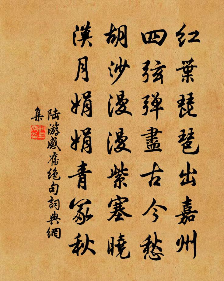 紅葉琵琶出嘉州,四弦彈盡古今愁。胡沙漫漫紫塞曉,漢月娟娟青冢秋。