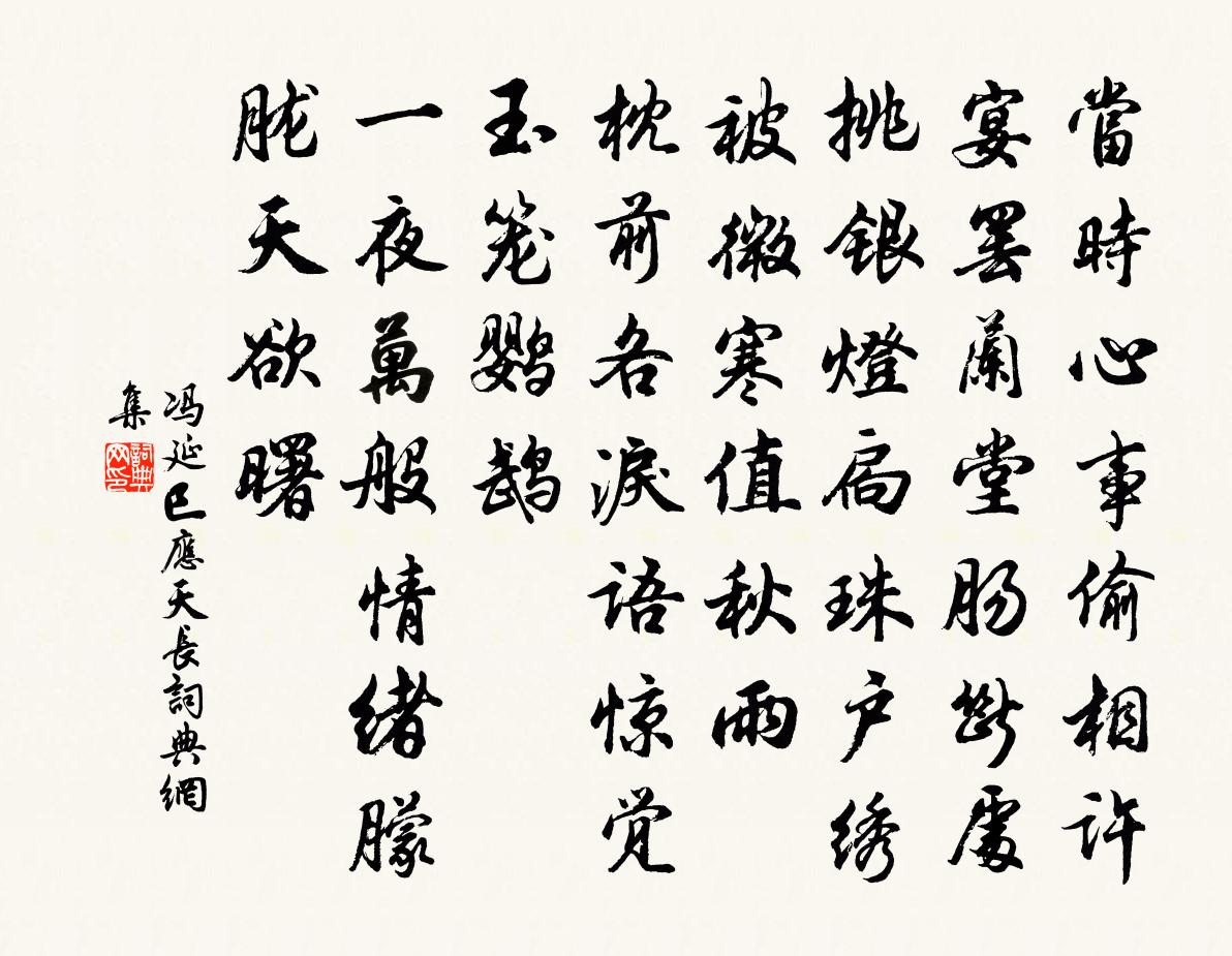 當時心事偷相許,宴罷蘭堂腸斷處。挑銀燈,扃珠戶,繡被微寒值秋雨。