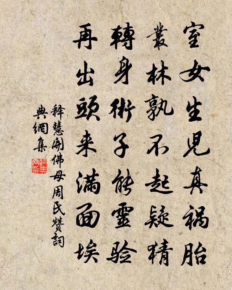 詩詞名句歷史字典書法欣賞書法字典國語詞典說文解字康熙字典古漢語字典標 題 作 者 詩 句 佛母周氏贊作者:釋慧開 朝代:宋代佛母周氏贊原文室女生兒真禍胎,叢林孰不起疑猜。轉身術子能靈驗,再出頭來滿面埃。詩詞問答問:佛母周氏贊的作者是誰?答:釋慧開問:佛母周氏贊寫於哪個朝代?答:宋代釋慧開佛母周氏贊書法欣賞佛母周氏贊書法作品詩詞推薦雜詠七言十首劉克莊〔宋代〕聰明不及前時久,惟鼻猶能嗅臭香。老去無端都塞了,不分鮑肆與蘭房。初夏二首舒邦佐〔宋代〕稍久梅黃雨,新晴麥熟天。寸懷煎百慮,一病費三年。方冊強遮眼,短窗時送眠。三生償業盡,四體合安便。晦日湖塘孫逖〔唐代〕吉日初成晦,方塘遍是春。落花迎二月,芳樹歷三旬。公子能留客,巫陽好解神。夜還何慮暗,秉燭向城闉。李君昆弟訪別長蘆玉淮陰追寄王安石〔宋代〕怒水憑風雪壟高,亂流追我只魚舠。忽看淮月臨寒食,想映江春聽伯勞。道義當成麟一角,文章已禿兔千毫。後生書荊溪禪師傅後二首釋智圓〔宋代〕清風遺句滿人間,滅後天台跡更閒。碑折塔摧人不顧,不堪冥目想空山。下直歐陽修〔宋代〕宮柳街槐綠未齊,春陰不解宿雲低。輕寒漠漠侵◇褐,小雨班班作燕泥。報國無功嗟已老,歸田有約一何稽。終當此悟羅與之〔宋代〕遑遑偶偶亦堪悲,桀死堯生畢竟齊。空羨駝峰烹翠釜,漫思鱸膾拌金齏。榮華代謝看荊棘,今古推遷望澗溪。造化頌古釋慧空〔宋代〕古人悟處今人眼,善巧休為眼畫眉。不見馬頭人廝撲,一拳打倒只臨時。更始徐鈞〔宋代〕三精霧塞未能收,諸將俄興翼戴謀。誰謂庸才能戮莽,人心畢竟尚思劉。燈二首林之奇〔宋代〕自從失道人多岐,擿植冥行信所之。昨夜忽然尋得路,孤燈一點是吾命。步虛子令佚名〔宋代〕碧煙籠曉海波閒。江上數峰寒。佩環聲里,異香飄落人間。弭絳節、五雲端。宛然共指嘉禾瑞,開一笑、破朱顏。王獻之洛神賦帖贊岳珂〔宋代〕慶雲絢彩,河漢縈之。列星垂天,日月明之。先民授能,維聖成之。英英後先,疇其勝之。有晉大令,父而兄之。雜詩陳瓘〔宋代〕大抵操心在謹微,謬差千里始毫鰲。如聞不善須當改,莫謂無人例可欺。忠信但當為己任,行藏終自有天知。深冬題南巢地藏寺王之道〔宋代〕蚊觜生花夜更長,睡鄉蝴蝶正悠颺。山僧不恤秋眠熟,連打鐘聲到枕旁。南華山文天祥〔宋代〕北行近千里,迷復忘西東。行行至南華,忽忽如夢中。佛化知幾塵,患乃與我同。有形終歸滅,不滅惟真空。笑看滿江紅楊炎正〔宋代〕典盡春衣,也應是、京華倦客。都不記,麴塵香霧,西湖南陌。兒女別時和淚拜,牽衣曾問歸時節。到歸來、稚子禪人並化主寫真求贊釋正覺〔宋代〕形聲幻為,聞見智隨。自然出礙,平等何疑。瑩明而絕累,圓應而無疵。而今問你,且道是誰。送程給事知越州張師顏〔宋代〕才臣新命輟卿聯,漕輓於今委重官。一道去蠲民疾苦,重江甯恤路艱難。行舟使節威聲遠,祖帳都門暑氣殘。奏課句羅舜舉〔宋代〕臘酒催詩處,春幡剪彩時。百字令/念奴嬌東岡〔宋代〕排雲拓月,向天上移下,神仙華屋。畫棟飛檐千萬落,黼黼城南喬木。出谷鶯遷,趨庭燕爾,袍綰登科綠。嫦娥分名句推薦出不入兮往不反,平原忽兮路超遠。屈原《國殤》 悠悠卷旆旌,飲馬出長城。李世民《飲馬長城窟行》 紫菊宜新壽,丹萸辟舊邪。趙彥昭《奉和九日幸臨渭亭登高應制》 冰合大河流,茫茫一片愁。納蘭性德《菩薩蠻·白日驚飈冬已半》 成事不說,遂事不諫,既往不咎。孔子弟子《論語·八佾篇》 雨聲颼颼催早寒,胡雁翅濕高飛難。杜甫《秋雨嘆三首》 以天下為沈濁,不可與莊語。莊子《莊子·雜篇·天下》 此去與師誰共到,一船明月一帆風。韋莊《送日本國僧敬龍歸》 隔岸荒雲遠斷,繞磯小樹微明。歸莊《錦堂春·半壁橫江矗起》 除害在於敢斷;得眾在於下人。尉繚《尉繚子·十二陵》