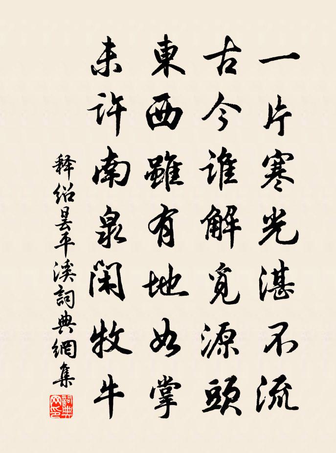 詩詞名句歷史字典書法欣賞書法字典國語詞典說文解字康熙字典古漢語字典標 題 作 者 詩 句 平溪作者:釋紹曇 朝代:宋代平溪原文一片寒光湛不流,古今誰解覓源頭。東西雖有地如掌,未許南泉閒牧牛。詩詞問答問:平溪的作者是誰?答:釋紹曇問:平溪寫於哪個朝代?答:宋代釋紹曇平溪書法欣賞平溪書法作品詩詞推薦次善堂宴餞應詔司馬光〔宋代〕士論歸清德,皇心重第成。陳謨侍經席,得謝解塵纓。坐密金章並,行徐玉醴清。都門昔供帳,疏傅未為榮。小景陳某〔宋代〕山迥雲垂野,江空水接天。西風陶令宅,落日季鷹船。愁緒丹心外,歸心白雁前。如何倦遊客,猶是未歸年。早春呈水部張十八員外二首韓愈〔唐代〕天街小雨潤如酥,草色遙看近卻無。最是一年春好處,絕勝煙柳滿皇都。莫道官忙身老大,即無年少逐春心。憑君李審言相招與刁景純周仲章裴如晦馮當世沈文梅堯臣〔宋代〕自君命我飲,朝暮雨傾瓦。城東與城北,大道泥沒馬。敢忘主人勤,顛撲困馭者。眾客亦如期,陳餚藉蘭若。馮裴天津感事二十六首邵雍〔宋代〕淥水悠悠際碧天,平蕪更與遠山連。白髮老叟心無事,閒憑欄乾看洛川。過崔駙馬山池王維〔唐代〕畫樓吹笛妓,金碗酒家胡。錦石稱貞女,青松學大夫。脫貂貰桂醑,射雁與山廚。聞道高陽會,愚公谷正愚。奉和御製真游殿上樑寇準〔宋代〕敦崇妙本膺丕貺,濬發鴻源示永年。吉語密傳當乙夜,粹儀祗覿擁祥煙。皇心翼翼精齋至,祖德綿綿道誨宣。誕集詩思方回〔宋代〕野眺荒山外,詩愁細雨中。肯令一字俗,已拼百年窮。病體皮膚皺,寒庖糗餌空。戎葵獨何事,故作向人紅。雜曲歌辭。千秋樂張祜〔唐代〕八月平時花萼樓,萬方同樂奏千秋。傾城人看長竿出,一伎初成妙解愁。治圃陸游〔宋代〕小圃漫經營,栽培抵力耕。土松宜雨點,根稚怯鉏聲。紅果方當熟,清陰亦漸成。每來常竟日,聊得暢幽情。迓楊守宿九峰黃公度〔宋代〕木落閩山暮,雲深野寺秋。寒花空照眼,濁酒不禁愁。宦拙羞奔走,時危且滯留。迥廊供徙倚,萬慮寄冥搜。湖上夜歸葛天民〔宋代〕陌上紅塵歇,湖中翠藹生。定鐘山寺過,新月夜船清。蛙亂鳴方急,鷗閒睡不驚。兒曹知我到,認得打門聲。讀武侯傳王遂〔宋代〕馬踏渭濱春草亂,鳥啼白帝夕陽深。漢家渾是皇天做,渠是通天一寸心。別詩應瑒〔魏晉〕朝雲浮四海。日暮歸故山。行役懷舊土。悲思不能言。悠悠涉千里。未知何時旋。 酬沖卿月晦夜有感王安石〔宋代〕夜雲不見天,況乃星與月。蕭蕭暗塵走,坎坎寒更發。樓歌客尚飲,酪酊不畏雪。巷哭復有人,鄰風送幽咽。紛然贈孫莘老七絕蘇軾〔宋代〕夜橋燈火照溪明,欲放扁舟取次行。暫借官奴遣吹笛,明朝新月到三更。挽武宣教徯四首廖行之〔宋代〕哭公無計挽公留,痛寫哀衷佐紼謳。丹旐姓名何所益,青編事業等閒休。長江百里浮清恨,明月孤峰起些愁。底事登樂遊園望白居易〔唐代〕獨上樂遊園,四望天日曛。東北何靄靄,宮闕入煙雲。愛此高處立,忽如遺垢氛。耳目暫清曠,懷抱郁不伸。下視春日田家三首黃大受〔宋代〕清明百草春,家家上丘墓。南鄰去年冬,祝痛及翁嫗。酒戎羅新阡,蹙頞見追慕。舊時細君墳,望見淚已注。紙錢偈頌六十七首釋原妙〔宋代〕封卻拄杖頭,結卻布袋頭。大家團欒頭,赤眼火柴頭。嗄,正是冤家共聚頭,不妨頭上更安頭。名句推薦路逢俠客須呈劍,不是才人莫獻詩。佚名《增廣賢文·上集》 桂花香霧冷,梧葉西風影。高觀國《菩薩蠻·何須急管吹雲暝》 言不中,行不謹,辱也。王通《中說·卷一·王道篇》 師之所處,荊棘生焉。大軍之後,必有凶年。老子《老子·道經·第三十章》 只有天在上,更無山與齊寇準《詠華山》 佳人獨立相思苦。薄袖欺寒脩竹暮。劉鎮《玉樓春·東山探梅》 紫艷半開籬菊靜,紅衣落盡渚蓮愁。趙嘏《長安晚秋 / 秋望 / 秋夕》 君為女蘿草,妾作菟絲花。李白《古意》 是他春帶愁來,春歸何處。辛棄疾《祝英台近·晚春》 綠葉青跗映丹萼,與君裴回上金閣。王勃《落花落》
