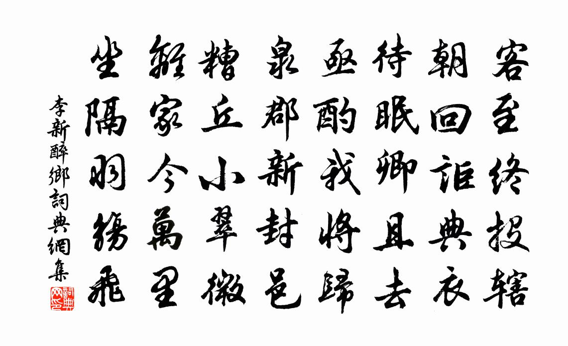 詩詞名句歷史字典書法欣賞書法字典國語詞典說文解字康熙字典古漢語字典標 題 作 者 詩 句 醉鄉作者:李新 朝代:宋代醉鄉原文客至終投轄,朝回詎典衣。待眠卿且去,亟酌我將歸。泉郡新封邑,糟丘小翠微。離家今萬里,坐隔羽觴飛。詩詞問答問:醉鄉的作者是誰?答:李新問:醉鄉寫於哪個朝代?答:宋代李新醉鄉書法欣賞醉鄉書法作品詩詞推薦結客少年場行孔紹安〔唐代〕結客佩吳鉤,橫行度隴頭。雁在弓前落,雲從陣後浮。吳師驚燧象,燕將警奔牛。轉蓬飛不息,冰河結未流。若使送鄭舜舉赴闕陳棣〔宋代〕籍甚聲名著日邊,英辭健筆許誰先。置之華省星曹上,付以赤墀香案前。好向從班光玉筍,竚膺蜜炬照金蓮。此行念奴嬌(丁卯中元作示兒)陽枋〔宋代〕白盡蒹葭,蓑從蒲柳,我只松筠節。君民堯舜,老翁揩眼勳業。桂州黃潭舜祠宋之問〔唐代〕虞世巡百越,相傳葬九疑。精靈游此地,祠樹日光輝。禋祭忽群望,丹青圖二妃。神來獸率舞,仙去鳳還飛。日暝醉芙蓉姚勉〔宋代〕庭前木芙蓉,姿色夐殊異。初開花微碧,仙子淡雲袂。逡巡改瑩白,玉骨淨無滓。爛漫欲謝時,潮臉暈紅媚。詩人梁明堂登歌 歌青帝辭沈約〔南北朝〕帝居在震。龍德司春。開元布澤。含和尚仁。羣居既散。歲雲陽止。飭農分地。民粒惟始。雕梁繡栱。丹楹玉墀。微雨三首趙蕃〔宋代〕大雨若盆傾,小雨如絲亂。盆覆幾時收,絲長何日斷。庭前菊蘇泂〔宋代〕百圳黃香十月春,東籬佳節誤陶巾。開花較晚酒羞澀,風味依然似主人。題安溪流惠亭陳宓〔宋代〕平蕪幾載翳雲煙,一日重開便豁然。須信耕桑皆帝力,謾將翔泳祝堯年。金堤新插千株柳,玉井仍看十丈蓮。縣令除夜文天祥〔宋代〕歲暮難為客,天涯況是囚。乾坤還許大,歲月忽如流。夢過元無夢,憂多更不憂。屠蘇兒女態,肯作百年謀。再答靜翁並以筇竹一枝贈行四首黃庭堅〔宋代〕一筇九節添行李,用得人間處處尊。只要上山行飽飯,莫將風雪打人門。吳顧雍孫元晏〔唐代〕贊國經綸更有誰,蔡公相嘆亦相師。貴為丞相封侯了,歸後家人總不知。泛海王守仁〔明代〕險夷原不滯胸中,何異浮雲過太空?夜靜海濤三萬里,月明飛錫下天風。秘閣觀唐法帖呈同舍諸公孔武仲〔宋代〕雍熙真人金丹成,騎龍逍遙上太清。一時文物甚炳煥,至今高閣留崢嶸。道山不為人間設,千秋長鎮白玉京。蓬萊高宗皇帝輓詞四首程大昌〔宋代〕英明如藝祖,慈厚類仁宗。民隱深憂惻,天驕入益容。前芳嘗北指,鳴鏑自回功。戢動皆時當,居然八政農。郊廟歌辭。儀坤廟樂章。壽和徐堅〔唐代〕於穆清廟,肅雍嚴祀。合福受釐,介以繁祉。踏莎行 閨情唐寅〔明代〕可怪春光,今年偏早,閨中冷落如何好。因他一去不歸來,愁時只是吟芳草。奈爾雙姑,隨行隨到,其間況味予知柳梢青(生日)趙彥端〔宋代〕衰翁自謫。堪笑忘了,山林閒適。一歲花黃,一秋酒綠,一番頭白。浮生似醉如客。問底事、歸來未得。但願長年游龜峰王洋〔宋代〕下徹靈根上太虛,斑分碧落照塵區。要知一覽峰境,不用重看雁盪圖。又登碧雲亭感懷三十首吳芾〔宋代〕晚上危亭待月生,雲頭俄涌一輪明。終朝汩沒塵埃里,對此身心覺頓清。名句推薦獨自下層樓,樓下蛩聲怨。程垓《卜運算元·獨自上層樓》 一自胡塵入漢關,十年伊洛路漫漫。陳與義《詠牡丹》 故人遠,問誰搖玉佩,檐底鈴聲。蔣捷《聲聲慢·秋聲》 孤舟向廣武,一鳥歸成皋。岑參《鞏北秋興寄崔明允》 身有傷,貽親憂。德有傷,貽親羞。李毓秀《弟子規·入則孝》 一聲何滿子,雙淚落君前。張祜《宮詞·故國三千里》 以我之鎮靜,御彼之猖狂宋濂、王褘《元史·列傳·卷五十五》 冬則溫,夏則凊。晨則省,昏則定。李毓秀《弟子規·入則孝》 春風舉國裁宮錦,半作障泥半作帆。李商隱《隋宮 / 隋堤》 兒孫自有兒孫福,莫為兒孫做馬牛。佚名《增廣賢文·上集》