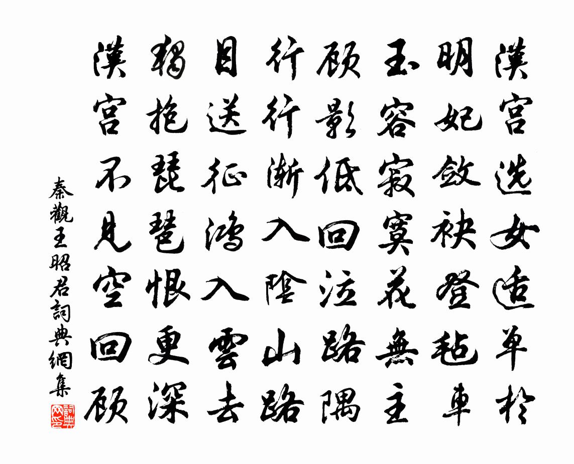 詩詞名句歷史字典書法欣賞書法字典國語詞典說文解字康熙字典古漢語字典標 題 作 者 詩 句 王昭君作者:秦觀 朝代:宋代王昭君原文漢宮選女適單于,明妃斂袂登氈車。玉容寂寞花無主,顧影低回泣路隅。行行漸入陰山路,目送征鴻入雲去。獨抱琵琶恨更深,漢宮不見空回顧。詩詞問答問:王昭君的作者是誰?答:秦觀問:王昭君寫於哪個朝代?答:宋代問:秦觀的名句有哪些?答:秦觀名句大全秦觀王昭君書法欣賞王昭君書法作品詩詞推薦蘇幕遮佚名〔宋代〕嘆人身,如傀儡,五彩妝成,儘是虛瞞昧。叉手棚頭談今古。相呼相喚,空向人前舞。出來時,如風雨。氣斷之時長沙歷冬無雪正月十日與客登捲雲亭望西山始張栻〔宋代〕冬溫氣苦盭,玄冥未書勛。薄雪殿余臘,一夜收楚氛。歡欣想農圃,潤澤到蒿芹。我亦破曉出,喚客來捲雲。蒼蒼松原山行七絕趙蕃〔宋代〕烏噪猿號古樹叢,亂青參倚更撐空。悠然到處皆詩本,須信山行不負公。哀韓君表無文編晁說之〔宋代〕少師名德振鵷鸞,孫子何為短羽翰。不使功名藏竹間,宜留文字後人看。六丁取去嗟韓第,七子亡來恨建安。賴有詠梅五十首呈史尚書釋紹嵩〔宋代〕古寺高樓暮倚欄,小梅零落雪欺殘。一枝帶雨牆頭出,乞與時人畫裹看。送謝孝廉移家越州權德輿〔唐代〕家承晉太傅,身慕魯諸生。又見一帆去,共愁千里程。沙平古樹迥,潮滿曉江晴。從此幽深去,無妨隱姓名。題釣台潘中父〔宋代〕焚坑禍作逃軒綺,明哲保身寧飢死。溺冠嫚罵又一春,織奮鼓刀恬不恥。子房託疾封留歸,齊魯大臣那可知。此意和故人韻文天祥〔宋代〕人情嗟愈變,世法合何如。氣以心平定,才因意廣疏。時行或時止,無咎亦無譽。第一嚴交際,琴紳敢不書。長思仙 贈魏害風馬鈺〔元代〕害風仙。害風仙。萬事俱忘理太玄。調和汞與鉛。結金蓮。結金蓮。九轉功成性月圓。超凡入洞天。夏駕石鼓辭楊維楨〔元代〕周家十圓鼓,散落陳倉野。猶有夏駕石,盤盤駕之下。秦鞭血山骨,吳獵焦野火。夏鼓建不拔,石鳴知者寡。父老行園詩沈約〔南北朝〕寒瓜方臥壟。秋菰亦滿陂。紫茄紛爛熳。綠芋郁參差。初菘向堪把。時韮日離離。高梨有繁實。何減萬年枝。荒渠偈頌一百零一首釋慧性〔宋代〕郊原雨過,春日熙熙。桃紅李白,發最上機。啞卻口,落盡眉。就中一曲江南發,薦管迎風撩亂吹。三月三日登龍山張九齡〔唐代〕伊川與灞津,今日祓除人。豈似龍山上,還同湘水濱。衰顏憂更老,淑景望非春。禊飲豈吾事,聊將偶俗塵。和李書記席上見贈薛濤〔唐代〕翩翩射策東堂秀,豈復相逢豁寸心。借問風光為誰麗,萬條絲柳翠煙深。寄題上饒周儀仲西疇姚勉〔宋代〕聞君負北郭,築室扁西疇。綠水人家曉,黃雲穡事秋。吾生如有此,外物更何求。堪卜東鄰否,耕余著釣舟。大滌洞天留題陳唐生〔宋代〕肩臂成窪古石存,雨乾不受野苔痕。道人未用夸神力,自是山王不動尊。賀新涼(戊申生日)方岳〔宋代〕一笑君知否。笑當年、山 * 士,行歌樵叟。五十到頭公老矣,只可鷺朋鷗友。便富貴、何如杯酒。好在歸來蒼崖偶作楊簡〔宋代〕有心切勿卻鉤玄,鉤得玄來在外邊。可以罷休依本分,孝慈忠仍乃天然。此天然處不亦妙,費盡思量卻不到。有時和許守喜雨韻吳芾〔宋代〕千里焦枯頓郁蒼,邦人寧復慮年荒。大田一雨渾沾足,鄰壤群偷更伏藏。治郡羨君端有術,救民愧我獨無方。夜來頌古四十五首釋如珙〔宋代〕秘魔提杈起,驗你本來人。得在杈下死,不負此生身。名句推薦書無不可讀者!魏徵《隋書·列傳·卷四十一》 夫輕諾必寡信,多易必多難。老子《老子·德經·第六十三章》 春田龜坼苗不滋,猶賴立春三日雪。王士禎《春不雨》 花滿河陽,為君羞褪晨妝茜。吳文英《燭影搖紅·賦德清縣圃古紅梅》 蕭蕭落木不勝秋,莫回首、斜陽下。納蘭性德《一絡索·過盡遙山如畫》 思親堂上茱初插,憶妹窗前句乍裁。秋瑾《九日感賦》 狂風吹我心,西掛鹹陽樹。李白《金鄉送韋八之西京》 十年種木,一年種穀,都付兒童。元好問《人月圓·重岡已隔紅塵斷》 瞻彼洛城郭,微子為哀傷。曹操《薤露行》 千里鶯啼綠映紅,水村山郭酒旗風。杜牧《江南春》