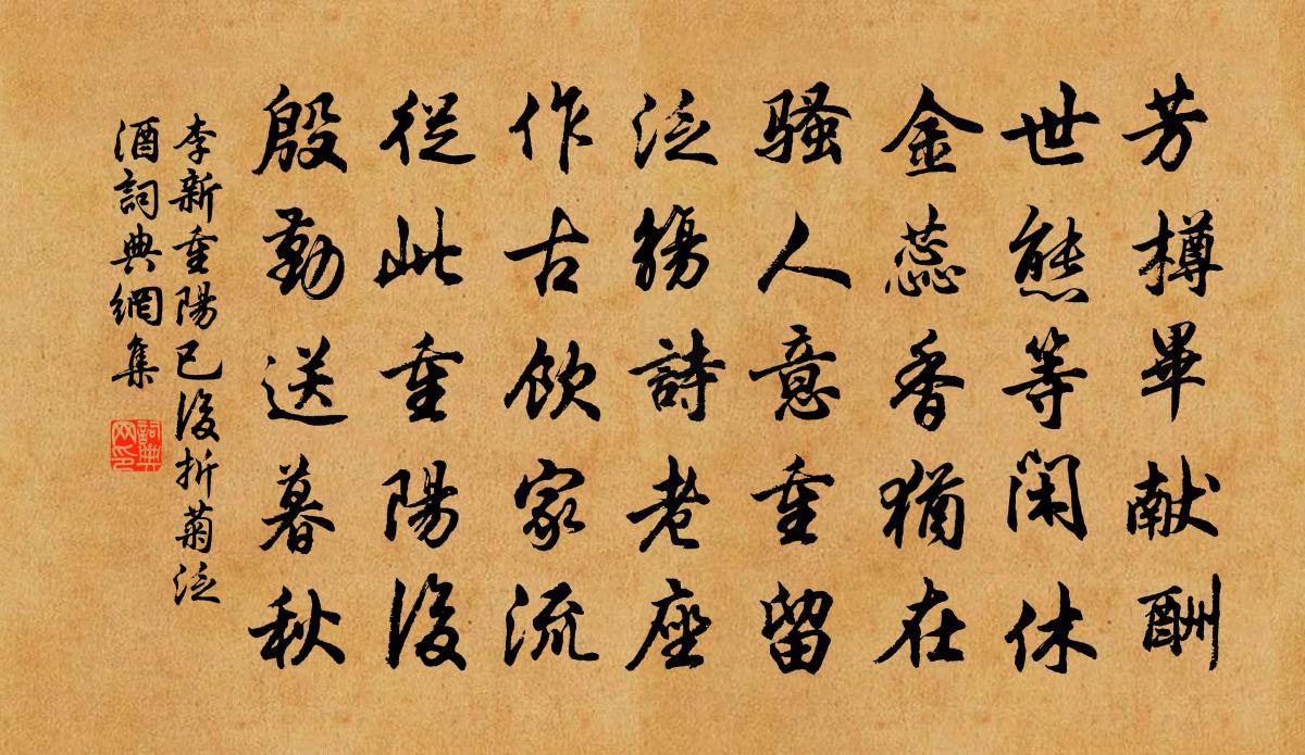- 綠杯紅袖趁重陽。人情似故鄉。晏幾道《阮郎歸·天邊金掌露成霜》