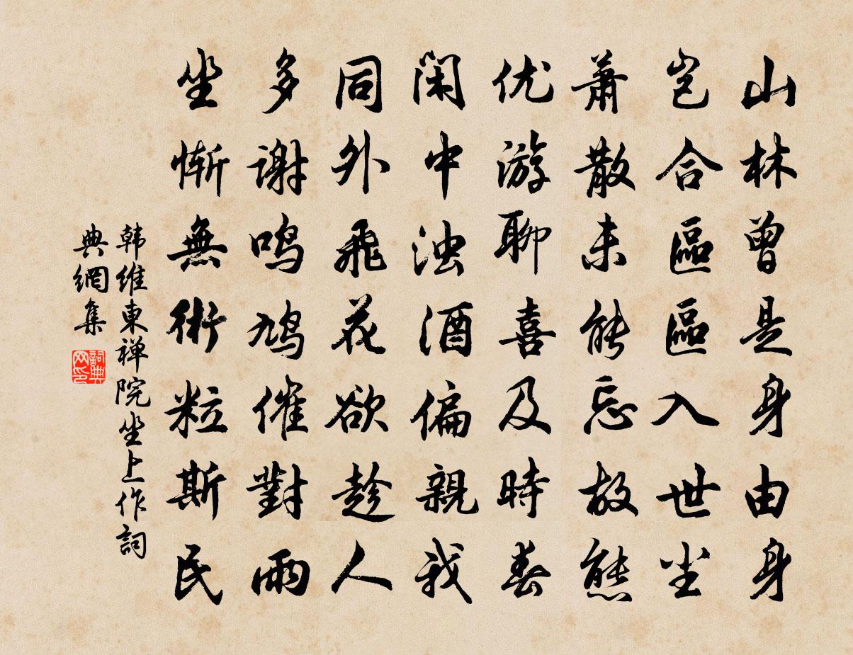 詩詞名句歷史字典書法欣賞書法字典國語詞典說文解字康熙字典古漢語字典標 題 作 者 詩 句 東禪院坐上作作者:韓維 朝代:宋代東禪院坐上作原文山林曾是身由身,豈合區區入世塵。蕭散未能忘故態,優遊聊喜及時春。閒中濁酒偏親我,同外飛花欲趁人。多謝鳴鳩催對雨,坐慚無術粒斯民。詩詞問答問:東禪院坐上作的作者是誰?答:韓維問:東禪院坐上作寫於哪個朝代?答:宋代韓維東禪院坐上作書法欣賞東禪院坐上作書法作品詩詞推薦書謝文靖東山圖王銍〔宋代〕山如出繭眉,溪似縈風帶。雅意樂溪山,安用攜粉黛。煙雲無定姿,姝麗有真態。謝公經世心,遇物何顯晦。鐘鼎落莫張耒〔宋代〕歲晚苦落莫,獨游情易傷。晴溪沙漾碧,秋徑葉鋪黃。幽菊開經雨,疏槐老奈霜。閉門無俗客,攄散有林塘。沈彬壙篆佚名〔唐代〕佳城今已開,雖開不葬埋。漆燈猶未滅,留待沈彬來。鷓鴣天(十二月二十二日與許乾譽賞梅)葉夢得〔宋代〕不怕微霜點玉肌。恨無流水照冰姿。與君著意從頭看,初見今年第一枝。人醉後,雪消時。江南春色寄來遲。使君舍北野步仇遠〔宋代〕野步上西門,寬平又一村。疏籬圍古井,密樹擁高墳。家有田園樂,氓知守令尊。因思興廢事,變滅似秋雲。摩尼歌釋印肅〔宋代〕一顆摩尼非玉貝,不動隨機方便快。無邊無表實先天,亘古迄今無覆蓋。六和同,心不在,放蕩汪洋塵世外。箇中次秘丞李希聲新省韻曾幾〔宋代〕吾皇德澤小滄溟,倒載干戈不用刑。天以圖書效河洛,人如蘭玉秀階庭。石渠盡日蓬山影,金殿凌虛帝座星。從此次韻韓川奉祠西太乙宮四首黃庭堅〔宋代〕白髦下金神節,青祝攜御爐香。百禮盡修亳祀,九歌不取沈湘。題滿氏申申亭王令〔宋代〕申申亭者名自誰,河東丈人身銘之。方其作亭自休息,固欲申暢名其題。雖然自奉頗幽樂,豈敢兼忽當世為。若日戒香院俞汝尚〔宋代〕崎嶇窮谷翠屏圍,卻訝遊人到此稀。修竹帶雲當戶聳,暗泉鳴玉繞亭飛。春風欲老茶含旆,暑雨初收水帶磯。擾擾挽寧谷居士何公三首何夢桂〔宋代〕天寒白月墮西湖,血淚啼枯聽薤歌。食子俱亡收子在,近孫猶少遠孫多。北邙有地存詩窖,後圃無人負鞠窠。欲志劉監簿第一百三十文天祥〔宋代〕秀氣沖星斗,壯筆過飛泉。舊遊易磨滅,魂傷山寂然。金丹詩四十八首張繼先〔宋代〕擾擾浮生一夢間,幾人回首鎖三關。黃婆壓定分全易, * 飛來投下難。朱雀入爐三畝靜,黑龜伏鼎一生閒。昭昭崇仁縣後白蓮花韓曉〔宋代〕東皇發生無賢愚,祝融長養無枯偏。一般薰風同芊芊,何獨芙蕖多靚妍。小荷出水浮青煙,沈郎拋下 * 錢。相看辛酉冬罷歸至家自省曾豐〔宋代〕彼哉言者固云云,老矣歸歟敢自文。不可以風霜後葉,何傷於月雨余雲。性情與物常為一,鷗鷺容吾便入群。古道和史子美知丞月台釋寶曇〔宋代〕乞得更籌一夜寬,傍檐唯有斗闌乾。須臾銀闕從空下,想像冰輪不自寒。迫近天人無浪語,卻回歌吹有餘歡。只應漢武李宗諤〔宋代〕建章宮闕郁岧嶢,露掌脩莖倚泬寥。平樂館中觀角觝,單于台上懾天驕。蓬萊望氣滄波闊,太一祈年紫府遙。西母乙巳邵武建寧夜坐書呈諸公陳普〔宋代〕山龍火藻舜所置,六合可無綱與維。有室有家萬心愿,聖門大標在鑽窺。羈游曾鞏〔宋代〕粗飯寒齏且自如,欲將吾道付樵漁。羈游事事情懷惡,貧病年年故舊疏。自古幸容元容醉,凡今誰喜子云書。何由秋懷二首洪咨夔〔宋代〕鸚鵡琵琶恨,融歸十四弦。撥寒紅玉筍,拍暖繡金蓮。梅影春風裹,茶聲雪水邊。自憐還自笑,星發照嬋娟。名句推薦雲山行處合,風雨興中秋。高適《送魏八》 料黛眉重鎖隋堤,芳心還動梁苑。盧祖皋《宴清都·初春》 父老得書知我在,小軒臨水為君開。蘇軾《送賈訥倅眉》 回看射鵰處,千里暮雲平。王維《觀獵》 十二峰頭秋草荒,冷煙寒月過瞿塘。何景明《竹枝詞·十二峰頭秋草荒》 手捻香箋憶小蓮。欲將遺恨倩誰傳。晏幾道《鷓鴣天·手捻香箋憶小蓮》 三思而行,再思可矣。佚名《增廣賢文·上集》 一派青山景色幽, 前人田地後人收。范仲淹《書扇示門人》 除腹心之疾,而置諸股肱,何益?左丘明《左傳·哀公·哀公六年》 竹樹無聲或有聲,霏霏漠漠散還凝。杜荀鶴《春日山中對雪有作》