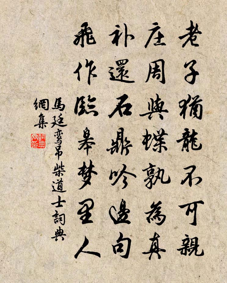 詩詞名句歷史字典書法欣賞書法字典國語詞典說文解字康熙字典古漢語字典標 題 作 者 詩 句 吊柴道士作者:馬廷鸞 朝代:宋代吊柴道士原文老子猶龍不可親,莊周與蝶孰為真。補還石鼎吟邊句,飛作臨皋夢裡人。詩詞問答問:吊柴道士的作者是誰?答:馬廷鸞問:吊柴道士寫於哪個朝代?答:宋代馬廷鸞吊柴道士書法欣賞吊柴道士書法作品詩詞推薦早秋京口旅泊章侍御寄書相問因以贈之時七夕李嘉祐〔唐代〕移家避寇逐行舟,厭見南徐江水流。吳越征徭非舊日,秣陵凋弊不宜秋。千家閉戶無砧杵,七夕何人望鬥牛。只有宿北岩院陸游〔宋代〕車馬紛紛送入朝,北岩燈火夜無聊。中年到處難為別,也似初程宿灞橋。題盧秘書夏日新栽竹二十韻白居易〔唐代〕湘竹初窗植,盧生來考槃。久持霜節苦,新托露根難。等度須當砌,疏稠要滿欄。買憐分薄俸,栽稱作閒官。葉翦吏部謠佚名〔唐代〕岑愔獠子後,崔湜令公孫。三人相比校,莫賀咄骨渾。蝶戀花(三十日歸途村店市酒,成季、子任同酌而歌)韓淲〔宋代〕道上疏梅花一樹。人去人來,不管流年度。閒過南豅同散步。東風為我吹香去。試問青春今幾許。明日新正,溪影登楚山絕頂李廌〔宋代〕新雨路少人,公子有佳招。下馬語未竟,西城趨連鑣。初雲眺江閣,忽欲登山椒。陟巘踐蹺踴,舍鞍升迢嶢。濈濈淳熙六年春帖子詞皇帝合六首崔敦詩〔宋代〕今歲韶光好,年中兩見春。余寒九日在,芳意一朝新。宿青龍寺故曇上人院耿湋〔唐代〕年深宮院在,閒客自相逢。閉戶臨寒竹,無人有夜鍾。降龍今已去,巢鶴竟何從。坐見繁星曉,淒涼識舊峰。西城宴集元佑七年三月上已日詔賜館閣官花酒秦觀〔宋代〕宜秋門外喜參尋,豪竹哀絲髮妙音。金爵日邊棲壯麗,彩虹天際臥清深。已煩逸少書陳跡,更屬相如賦上林。猶恨上封有懷元晦張栻〔宋代〕憶共朱夫子,登臨冰雪中。劇談無俗調,得句有新功。別去雁橫浦,重來月滿空。遙憐今夕意,清夢儻相同。讀金剛經郭印〔宋代〕智慧比金剛,能碎諸煩惱。良哉須菩提,為眾非草草。再三立問端,一起復一倒。要以撼瞿曇,俾之攄懷抱。瞿曇射梅李龍高〔宋代〕由基去後揮瞻來,不慣穿楊慣射梅。寄語東居莫塗抹,犧樽自是木之災。如夢令(春晚)劉南翁〔宋代〕沒計斷春歸路。借問春歸何處。鶯燕也含愁,總對落花無語。春去。春去。門掩一庭疏雨。去八月同張文饒考試始遂言集執經問道至今不晁公溯〔宋代〕屬者俱被命,敕書黃札光。同將舜權量,與較蜀文章。投分雖已晚,傳經何可忘。對床風雨地,長記此升堂。詠梅五十首呈史尚書釋紹嵩〔宋代〕玉樹交橫雪後天,新詩吟得百餘篇。郵筒不住如飛翼,送與襄陽孟浩然。益壽美金花侯善淵〔元代〕羽倪澄秀。午夜能令回春晝。奕御中天。絕妙清奇玄又玄。精瑛微密。散景瑤花橫空碧。日照琅。風息猶聞佩玉上孫使君貫休〔唐代〕聖主得賢臣,天地方交泰。恭惟岳精粹,多出於昭代。君侯握文鏡,獨立塵埃外。王演俗容儀,崔陵小風概。馨香忽見檳榔詩庾信〔南北朝〕綠房千子熟。紫穗百花開。莫言行萬里。曾經相識來。句高似孫〔宋代〕回舟指淞江,徑奔魚蟹海。雲入窗牖徐僑〔宋代〕白雲入戶牖,幽趣頗相關。俗遠人無累,心夷物自閒。名句推薦賊是小人,智過君子。佚名《增廣賢文·上集》 匹馬南來渡浙河,汴城宮闕遠嵯峨。于謙《岳忠武王祠》 鵲飛山月曙,蟬噪野風秋。上官儀《入朝洛堤步月》 側見雙翠鳥,巢在三珠樹張九齡《感遇十二首·其四》 南國辛居士,言歸舊竹林孟浩然《都下送辛大之鄂》 盡日空濛無所見,雁行斜去字聯聯。韋莊《登鹹陽縣樓望雨》 旅館寒燈獨不眠,客心何事轉悽然。高適《除夜作》 歲華向晚愁思,誰念玉關人老?蔡挺《喜遷鶯·霜天秋曉》 疾雷不及塞耳,疾霆不暇掩目。劉安及其門客《淮南子·兵略訓》 詩家清景在新春,綠柳才黃半未勻。楊巨源《城東早春》