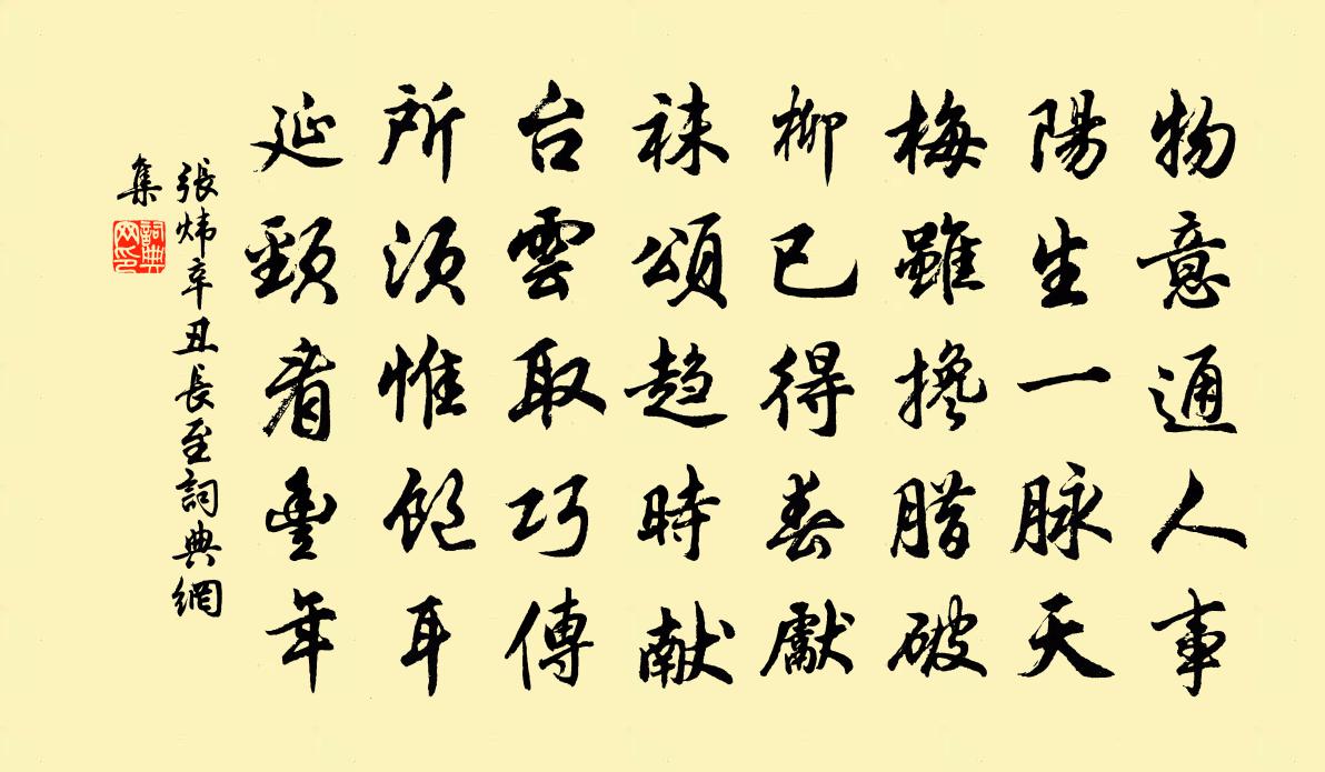 詩詞名句歷史字典書法欣賞書法字典國語詞典說文解字康熙字典古漢語字典標 題 作 者 詩 句 辛丑長至作者:張煒 朝代:宋代辛丑長至原文物意通人事,陽生一脈天。梅雖攙臘破,柳已得春先。襪頌趨時獻,台雲取巧傳。所須惟飽耳,延頸看豐年。詩詞問答問:辛丑長至的作者是誰?答:張煒問:辛丑長至寫於哪個朝代?答:宋代張煒辛丑長至書法欣賞辛丑長至書法作品詩詞推薦太行皇太后輓詞二首周必大〔宋代〕瑞應興沙麓,祥源發狶韋。東朝方母育,滄海倏塵飛。蟾蟬冰輪影,鰲翻地軸機。宸心懷慕處,篋有五時衣。獨酌權德輿〔唐代〕獨酌復獨酌,滿盞流霞色。身外皆虛名,酒中有全德。風清與月朗,對此情何極。導引佚名〔宋代〕祥符盛際,二鄙正休兵。瑞應滿寰瀛。東封西祀鳴鑾輅,從幸見昇平。仙遊一去上三清。廟食享隆名。寢園松柏秋送朱制乾象祖文天祥〔宋代〕一官聱漫任如何,屢疏箋天氣不磨。宋祚萬年陳大計,周圖五字訂前訛。重尋范老憂時箸,旁豎文公衛道戈。投匭初夏雜興陸游〔宋代〕終日頹然蠹簡中,門前煙水浩無窮。百年等是一枯冢,四海應無雨放翁。栗玉長枝挑苦筍,胭脂小把翦防風。地偏初冬快晴陪宣卿叔夏遊石頭庵過三生藏窮深極胡寅〔宋代〕凍雨籠山秀木冰,斜陽側鏡遠峰澄。罷妝群玉褰雲障,寶髻珠花幾萬層。蕃與斯遠季奕同生於十二月蕃初五日季奕初十趙蕃〔宋代〕徐子崖根竹,風雪不掩綠。鄭子谷中蘭,冰霜已騰馥。二子有此風,宜爾生窮冬。我獨何為者,飄然直轉蓬。過邵堯夫先生富弼〔宋代〕先生自衛客西畿,樂道安間絕世機。再命初筵終不起,獨甘窮巷寂無依。貫穿百代嘗探古,吟詠千篇亦造微。珍重上益公十絕為壽寶龜劉過〔宋代〕納錫曾看上九江,又聞詹事奉儲皇。巢成荷上窺仙景,在顧溪中賜印章。和總管姜知閣虞儔〔宋代〕五筆梅山漫不休,詩筒倏寄置書郵。分符我亦慚銅虎,問俗人誰忍佩牛。已洗圜扉亡久系,更教彩棒息群偷。年來庵中睡起五頌寄海印長老韓維〔宋代〕剡竹紉絲雜短長,誰教曲折號宮商。自從眠處知訊息,終日笙歌是道場。任道源轉示玉艷亭探梅詩卷未暇屬和閏月十一張鎡〔宋代〕細看孤標迎臘瘦,爭如繁 * 春酣。古為節士功名薄,乘欲裁詩問水南。紀夢鄭若沖〔宋代〕包抱乾坤一環堵,拍手千門輝藻黼。編茅何事傍雲根,川觀岩居天固予。憶昔臥病歲壬午,夢行澗石憩衡宇。常充避難周姓家席地而眠偶成陳著〔宋代〕夜宿山家謝主翁,安排席藁地爐東。枕頭就借支機石,帕額聊防箭隙風。酒瓮下眠添古話,牛衣中臥有時通。老吾上平江陳侍郎十絕張元乾〔宋代〕先生許可能尊祖,詞采今存幹蠱身。碑版燦然垂世譽,要知忠肅有門人。晚雨後虹蜺並見趙蕃〔宋代〕薄雷收淡雨,雌蜺映雄虹。雲擁奇峰出,霞飛散綺紅。渠無畫手妙,我久作詩工。泛泛身隨梗,蕭蕭鬢似蓬。讀東坡玉糝詩因成一絕續去年芋莖羹後寄丘林陳藻〔宋代〕味有酥陀出自天,芋成玉糝卻同然。此羹若使東坡見,尤怪枯莖化得偏。長相思(相山集題作恨別)王之道〔宋代〕雨濛濛。日日龍日龍。洗出遠山三四重。分明眉黛濃。野橋西,官路東。小驛夜涼風入松。夢魂誰與同。累夜讀開經總要慨然思陳叔易寄予嵩陽讀水經晁說之〔宋代〕風送黃河冰底聲,三川半死誤丹青。何人千與君訊息,枉是磨鉛勘水經。寄趙昌父劉克莊〔宋代〕世上久無遺逸禮,此翁白首不禪冠。一生官職監南嶽,四海詩盟主玉山。經歲著書人少見,有時入郭俗爭看。何因名句推薦魚澤灘頭嘶獵馬,省嵬城畔看黃河。石茂華《九月九日登長城關》 如何肯到清秋日,已帶斜陽又帶蟬。李商隱《柳》 漆燕黃鸝夸舌健,柳花榆莢斗身輕。王禹偁《清明日獨酌》 還作一段相思,冷波葉舞愁紅,送人雙槳。吳文英《解蹀躞·醉雲又兼醒雨》 綠遍山原白滿川,子規聲里雨如煙。翁卷《鄉村四月》 士有妒友,則賢交不親。荀子《荀子·大略》 秋夜訪秋士,先聞水上音。袁枚《夜過借園見主人坐月下吹笛》 財物輕,怨何生。言語忍,忿自泯。李毓秀《弟子規·出則弟》 何處寄想思,南風搖五兩。王維《送宇文太守赴宣城》 紅燭背,繡簾垂,夢長君不知。溫庭筠《更漏子·柳絲長》
