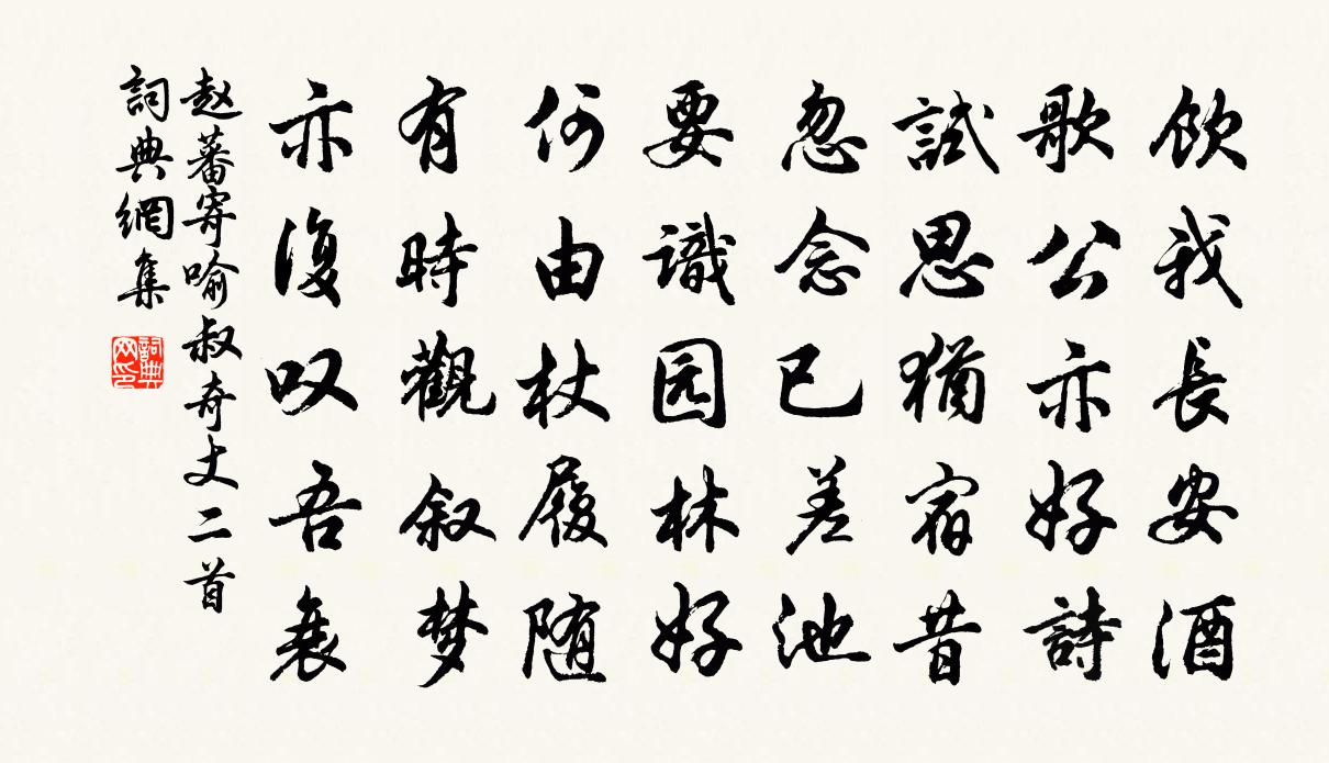 詩詞名句歷史字典書法欣賞書法字典國語詞典說文解字康熙字典古漢語字典標 題 作 者 詩 句 寄喻叔奇丈二首作者:趙蕃 朝代:宋代寄喻叔奇丈二首原文飲我長安酒,歌公亦好詩。試思猶宿昔,忽念已差池。要識園林好,何由杖履隨。有時觀敘夢,亦復嘆吾衰。詩詞問答問:寄喻叔奇丈二首的作者是誰?答:趙蕃問:寄喻叔奇丈二首寫於哪個朝代?答:宋代趙蕃寄喻叔奇丈二首書法欣賞寄喻叔奇丈二首書法作品詩詞推薦和張方回西湖二首郭印〔宋代〕叢篁深翳景,草木未知春。晴漏林間日,寒生水上苹。縈紆通邃徑,寂歷遠囂塵。更渡長橋去,無邊物色新。新柳楊萬里〔宋代〕輦路金絲半欲垂,外間玉爪未渠開。上林柳色休多憶,更趁春風看一回。獻僕射相公王禹偁〔宋代〕五年黃閣掌陶甄,憂國翻成兩鬢斑。初到廟堂溫樹冷,暫收霖雨岳雲閒。春園領鶴尋芳草,小閣留僧畫遠山。惟有淨因和尚釋子淳〔宋代〕即真非真,是假非假。語路未陳,言滿天下。驪龍海臥彩雲深,黑漆崑崙騎玉馬。滬州大將第四文天祥〔宋代〕西南失大將,帶甲滿天地。高人憂祝胎,感嘆亦歔欷。同舍弟佶、班、韋二員外秋苔對之成詠包何〔唐代〕每看苔蘚色,如向簿書閒。幽思纏芳樹,高情寄遠山。雨痕連地綠,日色出林斑。卻笑興公賦,臨危滑石間。祝英台近吳潛〔宋代〕旋安排,新捻合,鶯谷共煙浦。好處偏慳,一向風和雨。今朝捱得晴明,拖條藜杖,一齊把、春光黏住。且閒覷。水竹袁說友〔宋代〕拳石環清泚,龍鬚細屈蟠。兩峰低峍崒,一簇小琅玕。密葉風前影,疏枝水底寒。相從此君爾,著意問平安。句高似孫〔宋代〕上皇今百歲,近侍多人。和周公美韻陳文蔚〔宋代〕風光報答可無詩,漸喜春風熟燕泥。客至甚思留竹隱,書來無奈趣岩棲。幸同故國雲雖暮,郎誦新吟日未西。自愧仁上聞角聲有感曾黯〔宋代〕學劍年來又不成,羈窮誰與共功名。殊鄉歲歲秋風客,孤壘朝朝曉角聲。富貴安能同噲伍,文章不願以詩鳴。鹿門送進士萬知古釋智圓〔宋代〕經明行修徒爾為,一名屢點春官闈。時之不利非戰罪,歸山且著老萊衣。清時貪賤誠堪恥,侏儒太飽朔方飢。男兒奉和御製玉清昭應宮成夏竦〔宋代〕中宸夜駐飛廉轡,東闕朝迎綠錯篇。祇建寶宮朝睟象,載崇金閣奉真銓。高侔紫極威神異,回據柔靈勝勢宣。矗矗戚氏(此詞始終指意,言周穆王賓於西王母事)蘇軾〔宋代〕 * 山。東皇靈媲統群山。絳闕岧嶢,翠房深迥,倚霏煙。幽閒。志蕭然。金城千里鎖嬋娟。當時穆滿巡狩,翠華劉王花塢方信孺〔宋代〕綠陰到處小舟藏,淺水漂紅五里香。不見芳華舊亭宛,桃花應解笑劉郎。寄茅山道友三絕周文璞〔宋代〕伏事三茅過一生,痴心不望羽車迎。舊時手種黃龍子,今解升雲入太清。觀葉生畫花施肩吾〔唐代〕心竅玲瓏貌亦奇,榮枯只在手中移。今朝故向霜天裡,點破繁花四五枝。陳參政輓詩三首張嵲〔宋代〕徒知天可恃,豈謂病終侵。遽使儀刑意,翻成殄瘁心。開阡賢子力,卜遠外姻臨。墓木看初種,俄悲已茂林。侍宴華光殿曲水奉勑為皇太子作詩 八謝朓〔南北朝〕灞滻入筵。河淇流阼。海若來往。觴餚{氵公}泝。歡飫有終。清光欲暮。輕貂回首。華組徐步。別韋洵美詩崔素娥〔唐代〕妾閉閒房君路岐,妾心君恨兩依依。神魂倘遇巫娥伴,猶逐朝雲暮雨歸。名句推薦狡兔盡則良犬烹,敵國滅則謀臣亡。韓非及後人《韓非子·內儲說下六微》 絲槐煙柳長亭路,恨取次、分離去。惠洪《青玉案·絲槐煙柳長亭路》 水上遊人沙上女,回顧,笑指芭蕉林里住。歐陽炯《南鄉子·畫舸停橈》 山重水複疑無路,柳暗花明又一村。陸游《游山西村》 怠慢忘身,禍災乃作。荀子《荀子·勸學》 落日塞塵起,胡騎獵清秋。辛棄疾《水調歌頭·舟次揚州和人韻》 荷絲傍繞腕,菱角遠牽衣蕭綱《採蓮曲》 恭敬不如從命。曹雪芹《紅樓夢·第六十二回》 無言獨上西樓,月如鉤。李煜《相見歡·無言獨上西樓》 尊賢使能,俊傑在位,則天下之士皆悅而願立於其朝矣。孟子《孟子·公孫丑章句上·第五節》