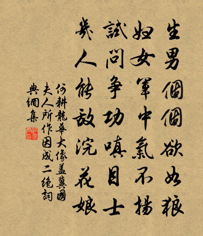 詩詞名句歷史字典書法欣賞書法字典國語詞典說文解字康熙字典古漢語字典標 題 作 者 詩 句 龍華大像蓋冀國夫人所作因成二絕作者:何耕 朝代:宋代原文生男個個欲如狼,婦女軍中氣不揚。試問爭功嗔目士,幾人能敵浣花娘。詩詞問答問:《龍華大像蓋冀國夫人所作因成二絕》的作者是誰?答:何耕問:該詩寫於哪個朝代?答:宋代書法欣賞龍華大像蓋冀國夫人所作因成二絕書法作品詩詞推薦壺中天(客中寄友)張炎〔宋代〕西秦倦旅。是幾年不聽,西湖風雨。我托長鑱垂短髮,心事時看天語。吟篋空隨,征衣休換,薜荔猶堪補。山能招又自和二首強至〔宋代〕好把悲歡付一卮,明朝北客有行期。勸君莫聽驪駒曲,只恐催人兩鬢衰。題山居十絕雲臥胡仲弓〔宋代〕來尋高處臥吟身,泉石中間避世塵。莫把白雲都占斷,也分一半與閒人。雜曲歌辭。鳴雁行陸龜蒙〔唐代〕朔風動地來,吹起沙上聲。閨中有邊思,玉箸此時橫。莫怕兒女恨,主人烹不鳴。石魚湖上醉歌元結〔唐代〕石魚湖,似洞庭,夏水欲滿君山青。山為樽,水為沼,酒徒歷歷坐洲島。長風連日作大浪,不能廢人運酒舫。我持菩薩蠻(上元)張綱〔宋代〕重簾卷盡樓台日。華燈萬點歡聲入。老病莫憑闌。一城星斗寒。艷妝翻舞雪。目眩紅生纈。不是故無情。羞君雙鬢答陳傳道五首之五賀鑄〔宋代〕倒橐黃金盡,方悲行路難。桂薪炊玉粒,可是樂長安。口號十首呈程殿撰陳造〔宋代〕白璧明璣每墮前,續貂輒復聳雙肩。一從歸作漳濱臥,不寄詩筒恰五年。次韻趙文鼎同游鵝石五首韓元吉〔宋代〕桃花臨水喚人看,花在嶙峋翠石間。莫惜持杯酬爛漫,更須扶杖俯潺湲。東宮生日六首癸巳林光朝〔宋代〕昭代璿源遠,高秋寶月前。神光浮蜀道,瑞氣貫秦川。銀榜應如舊,金莖若個邊。龍樓清晝出,鶴禁彩雲連。妙選偈頌七十一首釋了惠〔宋代〕孟嘉已前,淵明去後。誰家籬畔欠黃花,那個杯中無白酒,重陽只有九月九。呵呵呵,始信茱萸茶苦澀,展眉人少次韻清修老墨梅新茗方岳〔宋代〕此詩合讓簡齋老,盡洗世間聲色塵。我更鑿空難著語,蹇驢粗記雪橋春。和南仲見寄仇遠〔宋代〕我本西湖一散人,偶來溪上濯烏巾。波光綠映台城柳,山色青回句曲春。客舍相親那忍別,交情到老願如新。江南寄浙漕王子文野以思君令人老五字為韻得詩五五邁〔宋代〕我友半湖海,知心吾子文。君忙我已老,事事不如君。君生通貴家,我出寒素門。君披貂毛裘,我著犢鼻褌。戲彩昔陳北山趙南塘二老各有觀物十詠筆力高妙暮劉克莊〔宋代〕物理或難詰,疑經多未通。蜚雖筆麟史,荔不產龜蒙。記異因同蜮,為災豈減螽。恨余非博識,安敢注魚蟲。孟子王霸陳普〔宋代〕德誠已有奚容力,假偽非由力莫為。若使桓文居萬里,不知功效竟何施。嘉定二年秋重遊洞霄胡衍〔宋代〕餘杭泉石欠幽探,淨拂衣塵入翠嵐。九鎖山門雲上下,一峰天柱殿西南。元封舊事無人記,德壽仙遊有客談。痛飲送沈校書吳中搜書儲光羲〔唐代〕郊外亭皋遠,野中岐路分。苑門臨渭水,山翠雜春雲。秦閣多遺典,吳台訪闕文。君王思校理,莫滯清江濆。感皇恩(徐鐸狀元·般涉調)張先〔宋代〕延壽芸香七世孫。華軒承大對,見經綸。溟魚一息化天津。袍如草,三百騎,從清塵。玉樹瑩風神。同時棠棣萼,玉燭新(梨花)楊 * 〔宋代〕梨花寒食後。被麗日和風,一時開就。濛濛雨歇,香猶嫩、漸覺芳心彰漏。牆頭月下,似舊日鶯鶯相候。縴手為、名句推薦雪虐風饕愈凜然,花中氣節最高堅。陸游《落梅》 隨侯之珠,國寶也,然用之彈,曾不如泥丸劉向《說苑·雜言》 靖安宅里當窗柳,望驛台前撲地花。白居易《望驛台》 黃鶯不語東風起,深閉朱門伴舞腰。溫庭筠《楊柳八首·其三》 夜月一簾幽夢,春風十里柔情。秦觀《八六子·倚危亭》 未信此情難系絆,楊花猶有東風管。蘇軾《蝶戀花·蝶懶鶯慵春過半》 秋風別蘇武,寒水送荊軻。庾信《擬詠懷二十七首·其二十六》 風蒲獵獵小池塘。過雨荷花滿院香。李重元《憶王孫·夏詞》 漢臣曾此作縲囚,茹血衣毛十九秋。汪遵《詠北海》 晨興好擁向陽坐,晚出宜披踏雪行。白居易《新制綾襖成感而有詠》