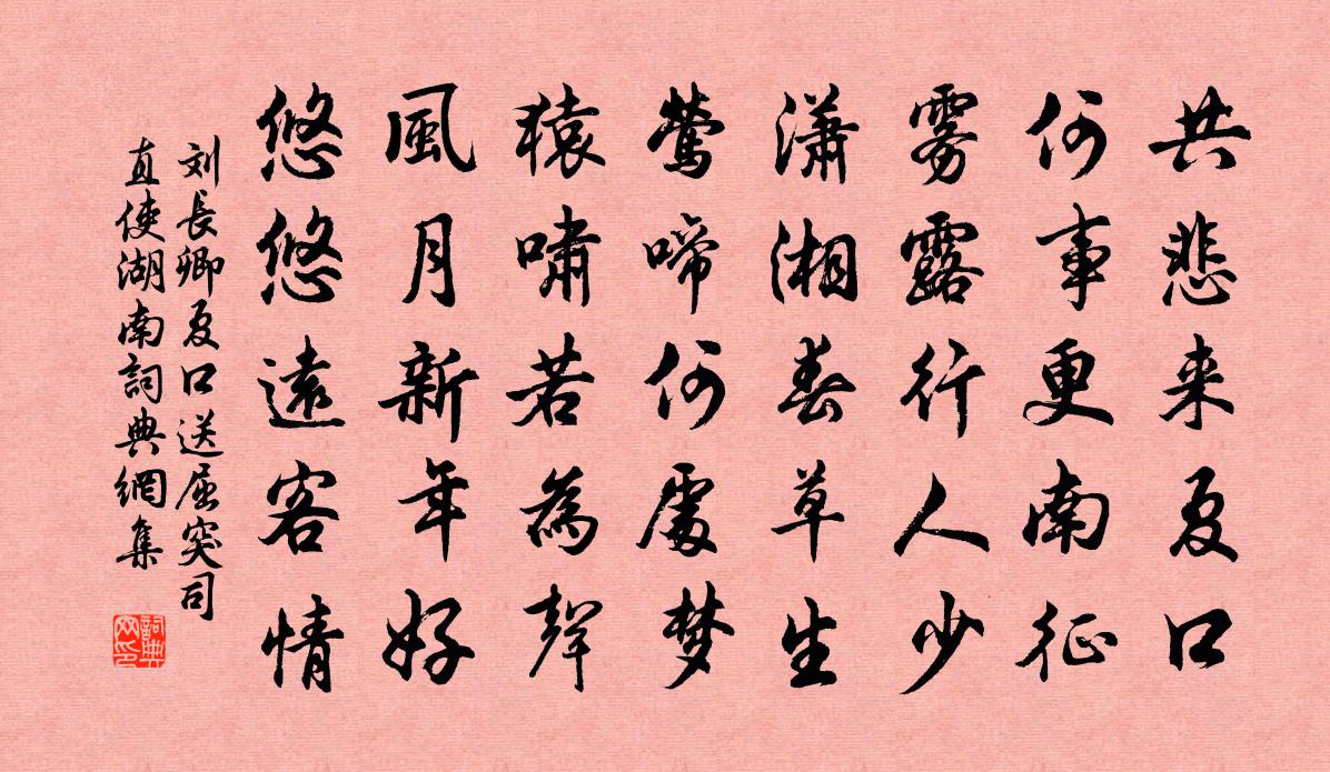 劉長卿夏口送屈突司直使湖南書法欣賞