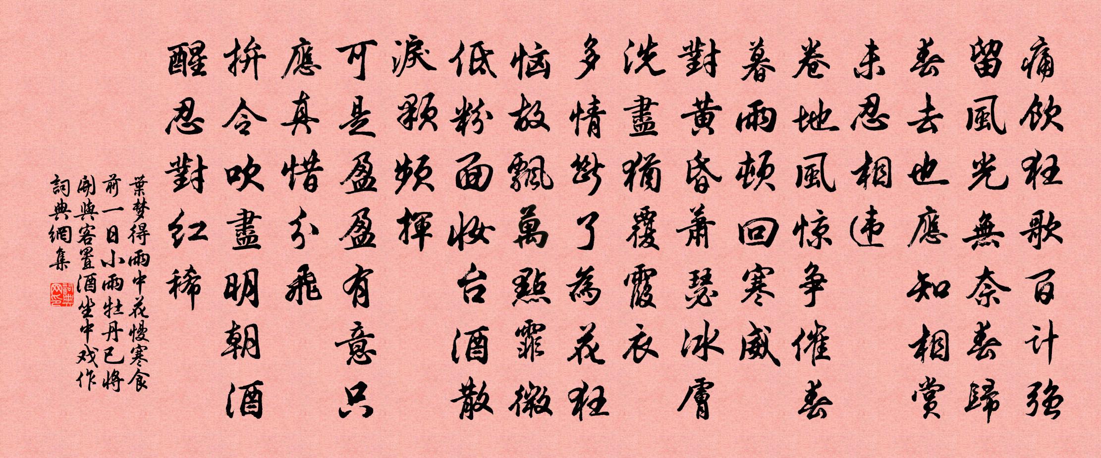 痛飲狂歌,百計強留,風光無奈春歸。春去也,應知相賞,未忍相違。
