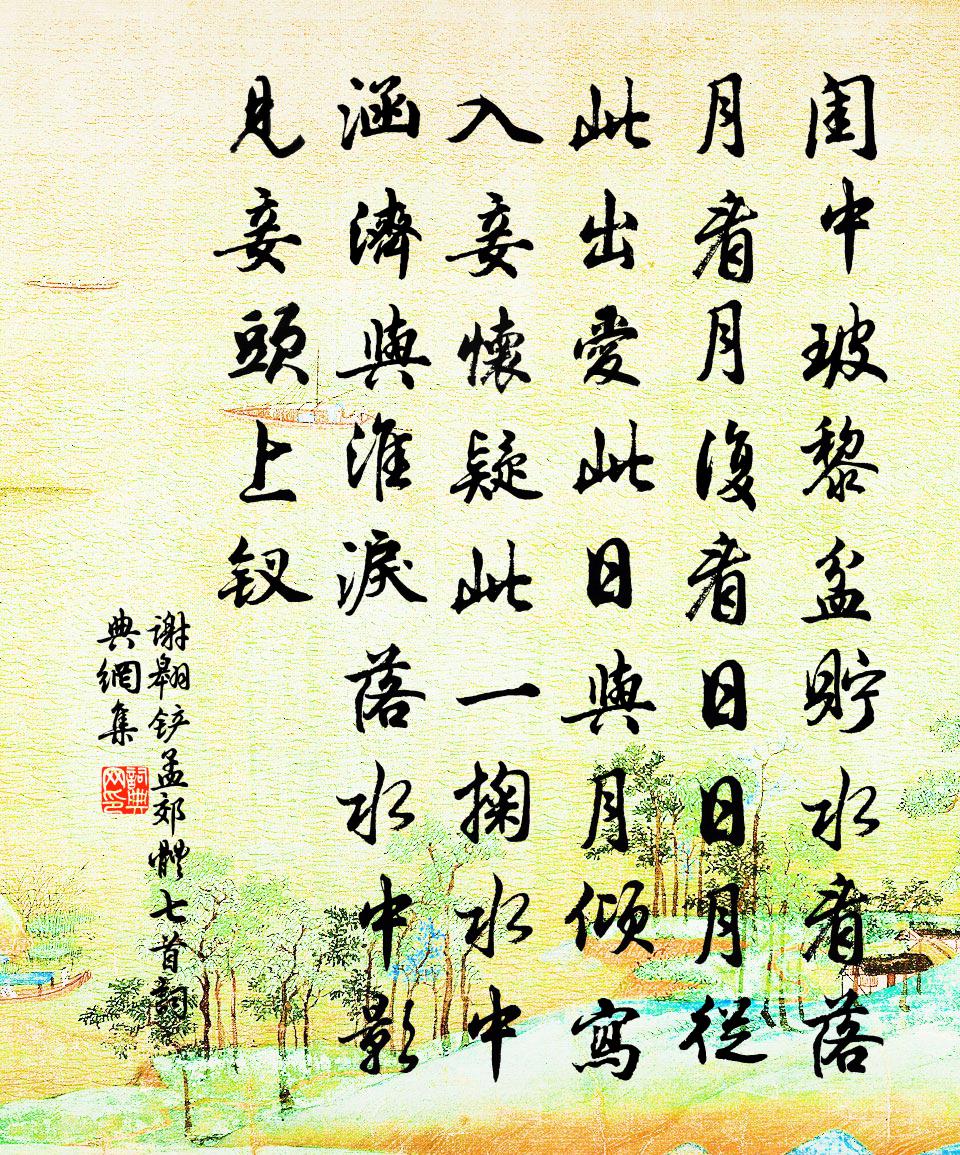 詩詞名句歷史字典書法欣賞書法字典國語詞典說文解字康熙字典古漢語字典標 題 作 者 詩 句 鏟孟郊體七首作者:謝翱 朝代:宋代鏟孟郊體七首原文閨中玻黎盆,貯水看落月。看月復看日,日月從此出。愛此日與月,傾寫入妾懷。疑此一掬水,中涵濟與淮。淚落水中影,見妾頭上釵。詩詞問答問:鏟孟郊體七首的作者是誰?答:謝翱問:鏟孟郊體七首寫於哪個朝代?答:宋代謝翱鏟孟郊體七首書法欣賞鏟孟郊體七首書法作品詩詞推薦上巳日周丞相少保來訪敝廬,留詩為贈楊萬里〔宋代〕楊鹽金勝賀鹽家,賜湖豈比賜書華。迴環自辟三三徑,頃刻常開七七花。門外有田聊伏臘,望中無處不煙霞。卻慚西征賦潘安〔魏晉〕歲次玄枵,月旅蕤賓,丙丁統日,乙未御辰。潘子憑軾西征,自京徂秦。乃喟然嘆曰:古往今來,邈矣悠哉!寥廓送張少卿赴召十首李新〔宋代〕天子清閒問侍臣,當年張姓復其名。金甌已灑銀鉤字,庭下宣麻不用驚。點絳唇(艷香茉莉)王十朋〔宋代〕畏日炎炎,梵香一炷薰亭院。鼻根充滿。好利心殊淺。貝葉書名,名義誰能辨。西風遠。勝鬟不見。喜見瓊花面。牧牛圖田錫〔宋代〕干戈擾擾遍中州,挽粟車行似水流。何日承平如畫裡,短蓑長笛一川秋。婆羅門引(用韻答趙晉臣敷文)辛棄疾〔宋代〕不堪鶗鴂,早教百草放春歸。江頭愁殺吾累。卻覺君侯雅句,千載共心期。便留春甚樂,樂了須悲。瓊而素而。被山甫游鄞訪僧復歸山房舒岳祥〔宋代〕麥熟歸小隱,詩名留遠方。竹冠山靄重,棕屨石苔香。掃徑憐新筍,臨池玩舊芳。僧交非昔比,吾黨懼行藏。送冷金箋與興宗司馬光〔宋代〕蜀山瘦碧玉,蜀土膏黃金。寒谿漱其間,演漾清且深。工人剪稚麻,搗之白石砧。就豀漚為紙,瑩若裁璆琳。風日除夜官舍獨坐王炎〔宋代〕半世更憂患,微霜入鬢邊。旅懷尊有酒,官況客無氈。故國逾千里,浮生又一年。遙憐小兒女,今夜話燈前。次韻頓起考試徐沂舉人見寄二首蘇轍〔宋代〕齊楚諸生儼鞸紳,人人願得出君門。銜枚勇銳驚初合,棄甲須臾訝許奔。細讀未辭燈損目,久留終厭棘為藩。定應偈頌八十七首釋慧開〔宋代〕翠岩絕嶮巇,元不涉階梯。去來無窒礙。珍重洪源湖海眾,箇中不隔一毫釐。用前韻簡日華李洪〔宋代〕遲遲欲去戀雙溪,獨樂簞瓢不糝藜。豈稱昔賢為半刺,只堪老宿話全提。家貧未辦千頭橘,世習猶堪兩顆梨。速丐戲和荊公讀漢書劉宰〔宋代〕當年此筆笑愚忠,後日私書跡更窮。自是京劉異恭顯,未知君意與誰同。偈頌四十二首釋祖先〔宋代〕曉來鵲噪一聲聲,象駕崢嶸喜見臨。款聽琅琅終日文,異苗翻秀映叢林。下直宋祁〔宋代〕殿樓傳鼓報歸鞍,槐道逶迤出九關。雨罷浮雲留北闕,朝來爽氣遍西山。倏逢行幰排輈度,稍見晴鴉接翅還。痴計送粹中赴舉強至〔宋代〕朔風攪疏林,短日寒無暉。有客氣軒昂,束書赴禮闈。行橐雖雲輕,滿抱藏珠璣。出以售春官,善價其可希。骨肉偈六首釋慧勤〔宋代〕去年今日時,紅爐片雪飛。今日去年時,曹娥讀夜碑。末後一句子,佛眼莫能窺。白蓮峰頂上,紅日繞須彌。鳥啄夏五月大雨,南畝半成澤國,而梁溪人尚有畫陳維崧〔清代〕翠釜一朝裂,銅狄盡流鉛。江南五月天漏,鍊石補仍穿。驟若淫龍噴沫,狂比長鯨跋浪,廬舍沒長川。菱蔓繞床下道中即事方岳〔宋代〕上到春山頂{左寧右頁}頭,更攜煙雨入吾州。梅花便作鄉人看,飛落酒杯相勸酬。客懷黃庚〔宋代〕年年春暮客天涯,愁見東風颺柳花。自嘆身如樑上燕,營巢長傍別人家。名句推薦文之英蕤,有秀有隱。隱也者,文外之重旨者也;秀也者,篇中之獨拔者也。劉勰《文心雕龍·隱秀》 隨你官清似水,難逃吏滑如油。馮夢龍《警世通言·卷十五》 無情燕子,怕春寒、輕失花期。晁沖之《漢宮春·梅》 六翮飄颻私自憐,一離京洛十餘年。高適《別董大二首》 月落烏啼霜滿天,江楓漁火對愁眠。張繼《楓橋夜泊 / 夜泊楓江》 馬穿山徑菊初黃,信馬悠悠野興長。王禹偁《村行·馬穿山徑菊初黃》 青海長雲暗雪山,孤城遙望玉門關。王昌齡《從軍行七首·其四》 願為西南風,長逝入君懷。曹植《七哀詩》 回首天涯歸夢,幾魂飛西浦,淚灑東州。周密《一萼紅·登蓬萊閣有感》 傷情處,高城望斷,燈火已黃昏。秦觀《滿庭芳·山抹微雲》