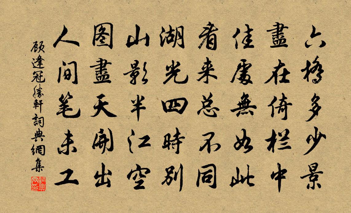 詩詞名句歷史字典書法欣賞書法字典國語詞典說文解字康熙字典古漢語字典標 題 作 者 詩 句 冠勝軒作者:顧逢 朝代:宋代冠勝軒原文六橋多少景,盡在倚欄中。佳處無如此,看來總不同。湖光四時別,山影半江空。圖盡天開出,人間筆未工。詩詞問答問:冠勝軒的作者是誰?答:顧逢問:冠勝軒寫於哪個朝代?答:宋代顧逢冠勝軒書法欣賞冠勝軒書法作品詩詞推薦陪五馬諸公游西山泛舟待月而歸偶作李彌遜〔宋代〕鳥烏聲樂報新晴,起覓鄰翁作隊行。愛日葵心傾爛漫,尋春蝶夢去縱橫。人歸高屋山逾碧,船到平灘月已生。客里魚樂樓趙孟頫〔元代〕樓下南來水,清泠百尺深。菰蒲終夜響,楊柳半溪陰。日月驅人世,江湖動客心。向來歌舞宴,達曉看橫參。次韻朱飾之中秋玩月因以送之李流謙〔宋代〕君理朝宗楫,吾乘上峽船。此杯同此地,明月又明年。怕作凌晨別,貪看徹曉圓。眉間有黃氣,知近冕旒邊。偕康子雍州季子東所游虔州通天岩伍餘乾〔宋代〕山靈不為紅塵掃,仙竇玲瓏自天巧。或開或合誰主張,元氣淋漓出蓬島。壓服坡陀萬象高,平鋪練帶三江繞。水西鄭文振席上方岳〔宋代〕香篆燒殘小玉虬,荷花深處浴鳧鷗。談詩未了催行酒,忽送清歌淺黛愁。幽居陸游〔宋代〕來客無僮奴,剝啄自叩戶;主人亦蕭然,茗飲不能具。清言正絕倒,日暮亟散去。更欲盡所懷,衣薄畏霜露。十一月初三日插梅花古罍洗中因成四絕舒岳祥〔宋代〕半映寒溪半映山,不妨朱戶借清閒。詩人帶得渠風味,也有香名滿世間。丁丑歲與德載相別辛巳復會於潁相視而嘆仍蒙張耒〔宋代〕重入修門一見春,衰容仍是臥漳濱。歸來未解纍囚服,揮去真同下坂輪。痛飲久無連夜醉,白頭何啻二毛新。□□評詩史彌寧〔宋代〕籌量節物細評詩,詩要天然莫強為。蛩韻酸寒東野句,鶯吟富貴小山詞。復古詩首句雲獨步復靜坐輒繼二章獨步司馬光〔宋代〕踽踽出東軒,徐徐步小園。何須從吏卒,亦不引兒孫。躡屐尋莎徑,攜筇撥水源。愁聞俗客到,唯說市朝喧。孤嶼亭鄭俠〔宋代〕峰巒何迤邐,天際相依倚。如何是孤嶼,獨立澄明裹。秦樓月/憶秦娥范成大〔宋代〕珠簾狹。捲簾春院花圍合。花圍合。晝長人靜,雙雙胡蝶。花前苦殢金蕉葉。瞢騰午睡扶頭怯。扶頭怯。閒愁無限見湖南繡使陳益甫大著戴復古〔宋代〕敢寫散人號,來登君子堂。論文才力短,憂世話頭長。老不堪行路,心思歸故鄉。數行詩後語,夜夜吐光芒。信口十絕李流謙〔宋代〕溫說昭君第一人,氈車萬里托羌渾。君王下詔求傾國,不為琵琶略斷魂。題荷花畫屏張鎡〔宋代〕芙蓉世界水為宮,宴處鏗雙沸鼓鍾。後乘舞妃香十里,月寒誰見曉騎龍。句晏殊〔宋代〕蟹螯今在左,欲拍酒船浮。嘉陵驛(一作題嘉陵江驛)薛能〔唐代〕江濤千疊閣千層,銜尾相隨盡室登。稠樹蔽山聞杜宇,午煙薰日食嘉陵。頻題石上程多破,暫歇泉邊起不能。如此寄題鄭尚明煮茶軒三首劉子翬〔宋代〕一點春回枯卉,萬家譟動寒墟。鳳餅龍團玉食,傷心半入穹廬。福應山張景脩〔宋代〕南亭不減北邙高,美景因公見一朝。已看溪山如在畫,更傳風雅似聞韶。栽桃定有仙家在,種竹寧無隱者招。秀氣送雍陶侍御赴兗州裴尚書命劉得仁〔唐代〕綸閣知孤直,翻論北巷賢。且縻蓮幕里,會致玉階前。洙泗秋微動,龜蒙月正圓。元戎軍務息,清句待君聯。名句推薦葉落風不起,山空花自紅。陳師道《妾薄命·為曾南豐作》 慮澹物自輕,意愜理無違。謝靈運《石壁精舍還湖中作》 秋空明月懸,光彩露沾濕。孟浩然《秋宵月下有懷》 興天下之利,除天下之害。墨子《墨子·12章 尚同(中)》 仍憐故鄉水,萬里送行舟。李白《渡荊門送別》 三年不上門,當親也不親。吳承恩《西遊記·第四十回》 若待得君來向此,花前對酒不忍觸。蘇軾《賀新郎·夏景》 射人先射馬,擒賊先擒王。杜甫《前出塞九首·其六》 野曠天低樹,江清月近人。孟浩然《宿建德江》 少年聽雨歌樓上。紅燭昏羅帳。蔣捷《虞美人·聽雨》