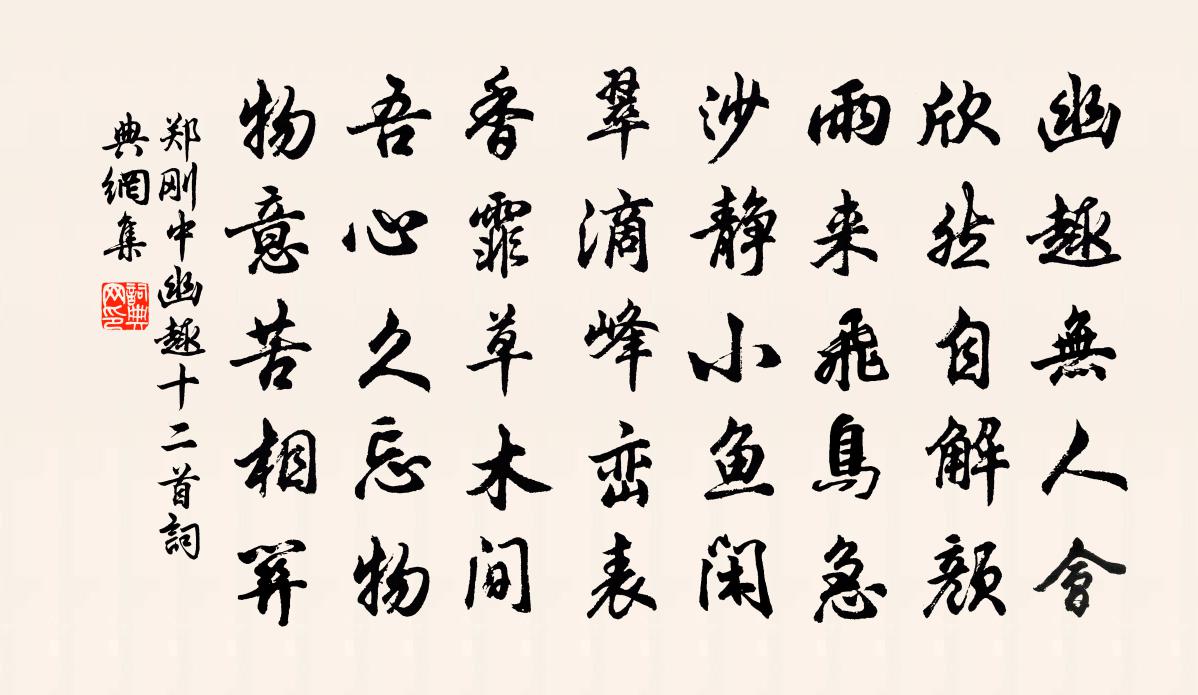 詩詞名句歷史字典書法欣賞書法字典國語詞典說文解字康熙字典古漢語字典標 題 作 者 詩 句 幽趣十二首作者:鄭剛中 朝代:宋代幽趣十二首原文幽趣無人會,欣然自解顏。雨來飛鳥急,沙靜小魚閒。翠滴峰巒表,香霏草木間。吾心久忘物,物意苦相關。詩詞問答問:幽趣十二首的作者是誰?答:鄭剛中問:幽趣十二首寫於哪個朝代?答:宋代鄭剛中幽趣十二首書法欣賞幽趣十二首書法作品詩詞推薦龍華山寺寓居十首王之望〔宋代〕有客過松徑,呼兒下竹關。張燈深夜語,沽酒遠村還。醇異交公瑾,清非醉景山。劇談自有理,不在濁醪間。題盤古山二首曾豐〔宋代〕太初盤古造乾坤,鬼力神筋擘混元。妙果雖圓心不有,凡身已蛻跡獨存。女媧石帶補天色,波利岩余飛錫痕。想與湖上新秋葛天民〔宋代〕十里荷風蓋盡傾,城中憶殺水邊清。催詩末用西湖雨,且送新涼入帝城。夜漁梅堯臣〔宋代〕夜漁歸自速,短艇若飛雲。水動月猶白,挐音人不聞。回身明燭底,撫卷至宵分。我以此為足,勞勞非爾群。雁塔艾性夫〔宋代〕君不見春初淮白魚,秋深黃雀兒。川潛山泊誰得知,災身不幸甘且肥。官饕弗渠赦,竟作一網打。頭顱千百奉苞苴湖州歌九十八首 其五十四汪元量〔宋代〕船泊邳州古岸傍,斜風細雨送昏黃。美人十二船中坐,猶把金猊炷好香。利州北佛龕前重於去歲題處作蘇頲〔唐代〕重岩載看美,分塔起層標。蜀守經塗處,巴人作禮朝。地疑三界出,空是六塵銷。臥石鋪蒼蘚,行塍覆綠條。歲年送客之湖南白居易〔唐代〕年年漸見南方物,事事堪傷北客情。山鬼趫跳唯一足,峽猿哀怨過三聲。帆開青草湖中去,衣濕黃梅雨里行。別後夫以因於閒暇採集巴句幸寄孔目五言二十韻伏釋道猷〔宋代〕多幸遭逢處,知交信有恩。偏承相見重,頻沐厚光榮。眷戀常推許,人情每普平。視田五首贈八弟無斁晁補之〔宋代〕河流之所濡,一斛泥數斗。我莊當水窮,乃比石田瘦。尚無東陵瓜,況有南山豆。天雨不可期,且復鞭牛後。將歸江淮書(一作冬歸有感)張喬〔唐代〕東風搖眾木,即有看花期。紫陌頻來日,滄洲獨去時。郡因兵役苦,家為海翻移。未老多如此,那堪鬢不衰。洞仙歌(所居丟山為仙人舞袖形)辛棄疾〔宋代〕婆娑欲舞,怪青山歡喜。分得清溪半篙水。記平沙鷗鷺,落日漁樵,湘江上,風景依然如此。東籬多種菊,待學淵寄答李方叔陳師道〔宋代〕平生經世策,寄食不資身。孰使文章著,能辭轍跡頻。帝城分不入,書札詗何人。子未知吾懶,吾寧覺子貧。野寺陸游〔宋代〕閒行入野寺,僧飯鼓其鏜。慘慘風剺面,暉暉日滿廊。去來元自在,賓主兩相忘。卻下山坡路,樵歌出隴長。傑閣万俟紹之〔宋代〕傑閣倚空闊,身高眇萬山。棟雲飛縹緲,檐鐵鬧虛閒。地步氛埃外,天威咫尺間。好風吹笑語,餘響落人寰。送人寇準〔宋代〕客亭殘照里,歌闋獨南行。芳草無斷色,離人多別情。遠途方不極,長笛更飛聲。莫動鄉關念,徒令白髮生。和宗易作屋之什陳傅良〔宋代〕欲因舊築倍勞形,昔在先生配二程。梅樹護持供北顧,萱堂潤色作東榮。但堪樽俎來三益,何必籓牆屏五兵。若徙奉和虢州劉給事使君三堂新題二十一詠流水韓愈〔唐代〕汩汩幾時休,從春復到秋。只言池未滿,池滿強交流。戲題承天寺法堂前柏黃庭堅〔宋代〕樹底 * 禪老家,高僧倚坐日西斜。有人試問西來事,無處安排玉如意。方者風旛動不同,不道風幡境亦空。開口竹溪直院盛稱起予草堂詩之善暇日覽之多有可劉克莊〔宋代〕五葉英雄主,長驅等拉摧。單于先退舍,天子自登台。鳴鏑經營遠,乘輿警蹕來。穹廬空漠遁,黃屋半天開。雁寒名句推薦寡助之至,親戚畔之;多助之至,天下順之。孟子《孟子·公孫丑章句下·第一節》 新寒中酒敲窗雨,殘香細裊秋情緒。納蘭性德《菩薩蠻·新寒中酒敲窗雨》 口之宣言也,善敗於是乎興左丘明《國語·周語·邵公諫厲王弭謗》 遙憐小兒女,未解憶長安。杜甫《月夜》 一輪秋影轉金波,飛鏡又重磨。辛棄疾《太常引·建康中秋夜為呂叔潛賦》 野蔬充膳甘長藿,落葉添薪仰古槐。元稹《遣悲懷三首·其一》 憶昔花間相見後,只憑縴手,暗拋紅豆。歐陽炯《賀明朝·憶昔花間相見後》 扁舟去作江南客,旅雁孤雲。朱敦儒《採桑子·彭浪磯》 宴爾新婚,以我御窮。佚名《谷風》 寒氣先侵玉女扉,清光旋透省郎闈。李商隱《對雪二首》