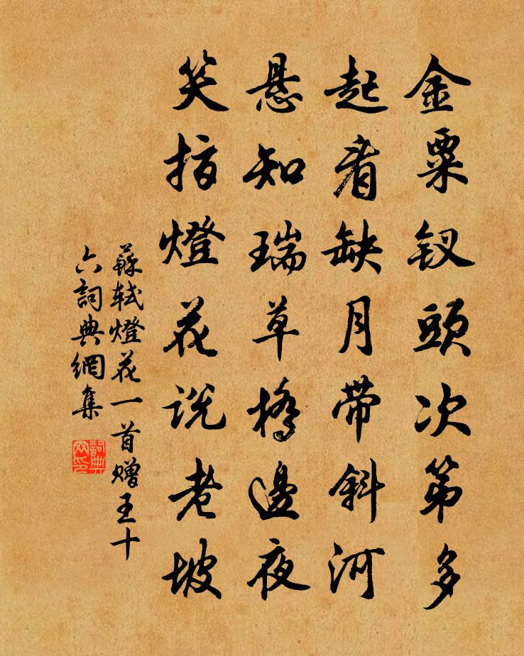 金粟釵頭次第多,起看缺月帶斜河。懸知瑞草橋邊夜,笑指燈花說老坡。