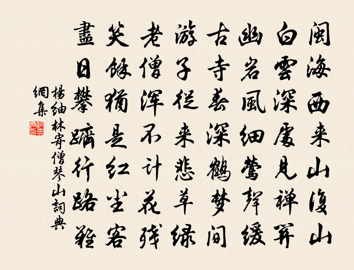 詩詞名句歷史字典書法欣賞書法字典國語詞典說文解字康熙字典古漢語字典標 題 作 者 詩 句 寄僧琴山作者:楊紬林 朝代:宋代寄僧琴山原文閩海西來山復山,白雲深處見禪關。幽岩風細鶯聲緩,古寺春深鶴夢間。遊子從來悲草綠,老僧渾不計花殘。笑余猶是紅塵客,盡日攀躋行路難。詩詞問答問:寄僧琴山的作者是誰?答:楊紬林問:寄僧琴山寫於哪個朝代?答:宋代楊紬林寄僧琴山書法欣賞寄僧琴山書法作品詩詞推薦休寧朱肖嚴葺其先大父岐山書為堂藏修之所而汪炎昶〔宋代〕閉門讀書非俗人,政使未見兒傾心。斑窺已駭文彩異,流長要自根源深。松比靈椿健霜骨,草連玉樹輝庭陰。岐山頌古十二首釋智深〔宋代〕笑里憑誰眼豁開,龜毛須向火中栽。腳跟有路雲泥隔,千里區區謾往來。寄瀘南子止兄晁公溯〔宋代〕杖鉞知何處,看雲望欲迷。真同阮南北,各寄蜀東西。峽險水增急,樓高山為低。春來日行樂,桃李想成蹊。次韻苗彥先題薛獻可新居四首林季仲〔宋代〕軒檻青紅壓水濱,小橋斜出樹橫陳。功名豫計殊非計,且與龜魚作主人。春日宴共樂台黃公度〔宋代〕畫棟朱甍插紫清,連山帶水自紆縈。閭閻高下魚鱗比,田畝縱橫基局平。花發鳥啼春耐事,夜闌客散月多情。寸陰眼兒媚(瞻叔兄生日五月三日)魏了翁〔宋代〕夢魂不踏 * 班。直作五雲間。簡編真樂,塤篪雅韻,菽水清歡。都將瞥忽榮華事,春夢曉雲看。只期他日,實願武林書事九首方回〔宋代〕狐狸夜號歌舞地,荊棘非復向朱門。有人政自不可測,一斛檳榔五百褌。候月台宋庠〔宋代〕平昔詞林伯,嘗為右輔來。庾公偏愛月,薛縣未傾台。鑱石雲根斷,臨波水腹開。良宵時弭蓋,方信謝莊才。念奴嬌(老人用僧仲殊韻詠荷花橫披,謹和)洪咨夔〔宋代〕香山老矣,正商量不下,去留蠻素。獨立躊躇腸欲斷,一段若耶溪女。水底新妝,空中香袖,斜日疏風浦。向人慾偈頌一百二十三首釋普度〔宋代〕大機圓應,大用無方。撲碎破沙盆,滅卻 * 眼。要津把定,佛祖潛蹤。正案傍提,百發百中。霅上宴別許渾〔唐代〕山斷水茫茫,洛人西路長。笙歌留遠棹,風雨寄華堂。紅壁耿秋燭,翠簾凝曉香。誰堪從此去,雲樹滿陵陽。闕題釋文珦〔宋代〕飲罷唯圖睡快,老來不作書痴。一味古人糟粕,誰能更辨醇醨。感春白玉蟾〔宋代〕晴少春光淺,寒多酒力微。一聲山鷓過,數點海棠飛。府試萊城晴日望三山許彬〔唐代〕不易識蓬瀛,憑高望有程。盤根出巨浸,遠色到孤城。隱隱排雲峻,層層就日明。淨收殘靄盡,浮動嫩嵐輕。縱目次韻蔚上人見寄戴表元〔宋代〕流落誰相憶,山林蔚講師。玄機魂夢接,詩力鬢毛知。舟去須尋處,書來不記時。君看東海月,今夜亦追隨。和子瞻學士游祖塔院釋來復〔宋代〕金沙泉涌雪濤香,灑作醍醐大地涼。倒侵九天河影白,遙通百穀海聲長。僧來汲月歸靈石,人到尋源宿上方。欲著次韻李忱承議所惠詩李復〔宋代〕人生飄蕩若浮雲,邂逅乘風忽聚群。嗟我淹留今倦宦,喜君傾倒細論文。揚舲覺海宗提印,授鉞詩壇勇冠軍。荒學又次韻三首廖行之〔宋代〕昔人逢秋每悲思,往往捧本騷人言。安知四時皆足樂,但願一切長無冤。山林朝市等昔夢,榮悴開落俱陳根。不如忠州懷古郭印〔宋代〕連日追游笑語同,一樽能遣百愁空。唐賢閣上秋風冷,巴子台邊夕照紅。木落荒坡思白傅,草深頹墓憶宣公。只憐新昌大石佛黃庚〔宋代〕倚天岩石費雕鐫,佛相分明在眼前。莫與嘉州爭大小,法身充滿本無邊。名句推薦好景落誰詩句里,蹇驢馱我畫圖間。趙渢《黃山道中》 英雄行險道,富貴似花枝。佚名《增廣賢文·上集》 易樂者必多哀,輕施者必好奪。王通《中說·卷一·王道篇》 深秋簾幕千家雨,落日樓台一笛風。杜牧《題宣州開元寺水閣閣下宛溪夾溪居人》 富貴本無根,盡從勤里得。馮夢龍《醒世恆言·卷三十五》 宣父猶能畏後生,丈夫未可輕年少。李白《上李邕》 蕭條清萬里,瀚海寂無波。李白《塞上曲》 黃雲隴底白雲飛,未得報恩不能歸。李頎《古意》 單于北望拂雲堆,殺馬登壇祭幾回。王之渙《涼州詞二首》 美人結長想,對此心悽然。李白《折楊柳》