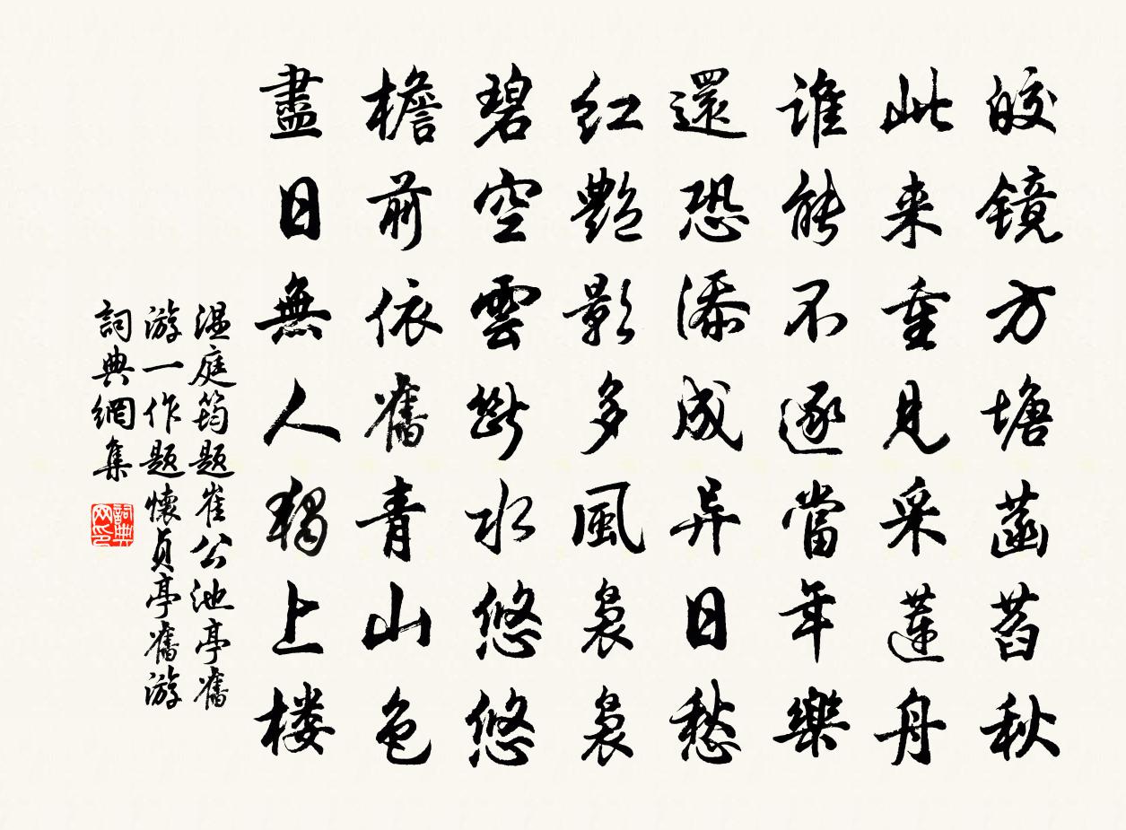 皎鏡方塘菡萏秋,此來重見採蓮舟。誰能不逐當年樂,還恐添成異日愁。