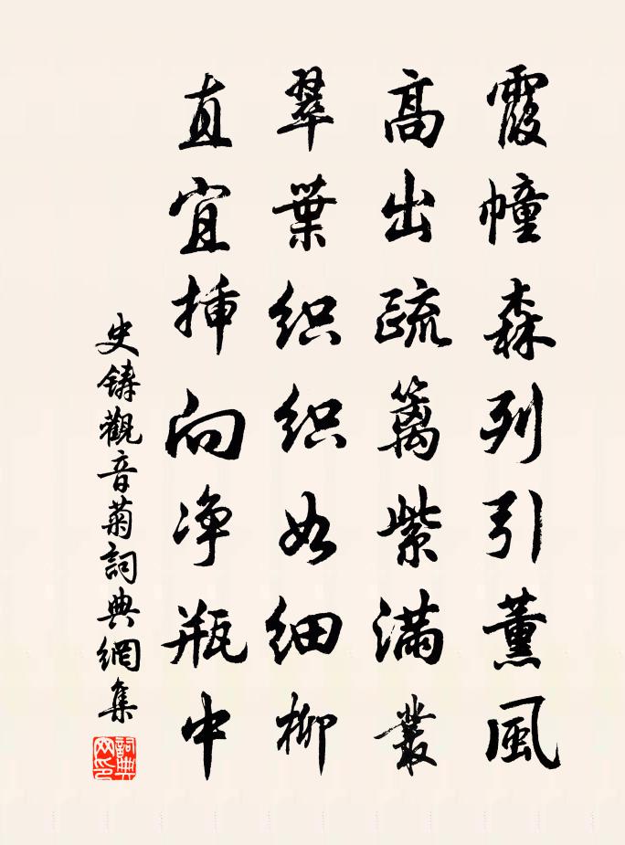 詩詞名句歷史字典書法欣賞書法字典國語詞典說文解字康熙字典古漢語字典標 題 作 者 詩 句 觀音菊作者:史鑄 朝代:宋代觀音菊原文霞幢森列引薰風,高出疏籬紫滿叢。翠葉織織如細柳,直宜插向淨瓶中。詩詞問答問:觀音菊的作者是誰?答:史鑄問:觀音菊寫於哪個朝代?答:宋代史鑄觀音菊書法欣賞觀音菊書法作品詩詞推薦三奠子王惲〔元代〕悵神光奕奕,天上良宵。花露濕,翠釵翹。風回鸞扇影,愁滿紫雲軺。恨相望,雖一水,隔三橋。朱弦寂寂,心思留題江秀才舊居范仲淹〔宋代〕結舍近滄洲,江山不外求。我來明月夜,更得主人留。鷓鴣天(送春)趙長卿〔宋代〕只慣嬌痴不慣愁。離情渾不掛眉頭。可憐惱盡尊前客,卻趁東風上小舟。真箇去,不忺留。落花流水一春休。自憐同吳仲退周南翁登法雲寺志上人流玉閣黎廷瑞〔宋代〕偶與幽人期,頗愜滄洲趣。嵐影倒虛碧,天光澹晴素。煙橫雙鷺起,水落孤帆度。憑闌足清眺,隱几得玄悟。顧茲雪陳舜俞〔宋代〕老來惟有看山癖,踏雪來尋洞府春。已愛匡廬無俗骨,更逢姑射露天真。參差玉樹千岩里,高下藍田一水濱。乘興贈別盧司直之閩中劉長卿〔唐代〕爾來多不見,此去又何之。華發同今日,流芳似舊時。洲長春色遍,漢廣夕陽遲。歲歲王孫草,空憐無處期。聯句杜衍〔宋代〕古木含清吹,池上增晚涼。余懷本達曠,聯此傲羲皇。孤鷗可與狎,幽岸足以觴。幸有彭澤酒,便同永嘉堂。潘生游黃山寺葛起文〔宋代〕偶為尋幽出,扶筇亦懶拈。鸛巢依古塔,燕語入虛欄。筆下詩初就,樽中酒屢添。此游堪喜膝,上一去掀髯。句李廌〔宋代〕文林換卻山林興,誰道山人索價高。廬山雜興二首董嗣杲〔宋代〕鐘聲警征人,頓省巡溪步。轉盼失路頭,紅日生黃霧。看松乘西風,盪此林影趣。古翠撲面老,肯放所歷住。幽聆中觴二絕蘇籀〔宋代〕珠貫筍彎奇出倫,龍蘭入縷疊文茵。芳年長好長歡夜,滿意同心同夢人。雪趙葵〔宋代〕玉龍昨夜起天涯,曉香團花一尺圍。莫放馮台簾卷上,怕驚釵畔寶鶯飛。相見歡·微雲一抹遙峰納蘭性德〔清代〕微雲一抹遙峰,冷溶溶,恰與個人清曉畫眉同。[1]紅蠟淚,青綾被,水沉濃,[2]卻與黃茅野店聽西風。句法振〔唐代〕畫鼓催來錦臂襄,小娥雙起整霓裳。雲溪雜詠郭印〔宋代〕俗客尋常少,珍禽自在啼。一溪如練淨,萬竹與雲霽。縱目心貪看,回頭路卻迷。清游殊未足,日下小橋西。書齋十詠壓紙獅子劉子翬〔宋代〕鎮浮須假重,刻石作狻猊。偶以形模好,兒童競見知。清平樂(迎春花一名金腰帶)趙師俠〔宋代〕纖穠嬌小。也解爭春早。占得中央顏色好。裝點枝枝新巧。東皇初到江城。殷勤先去迎春。乞與黃金腰帶,壓持紅奉和聖制早度蒲津關徐安貞〔唐代〕仙掌臨秦甸,虹橋辟晉關。兩都分地險,一曲度河灣。路得津門要,時稱古戍閒。城花春正發,岸柳曙堪攀。後乘舟行青溪道中入歙十二首方回〔宋代〕花間預想到家時,筍蕨堆盤薦酒卮。點檢兒童參國小,招呼朋友說新詩。浣溪沙孫光憲〔唐代〕蓼岸風多橘柚香,江邊一望楚天長,片帆煙際閃孤光。目送征鴻飛杳杳,思隨流水去茫茫,蘭紅波碧憶瀟湘。桃杏名句推薦高田如樓梯,平田如棋局。楊慎《出郊》 脫衣換得商山酒,笑把離騷獨自傾。王禹偁《清明日獨酌》 國君好仁,天下無敵焉。孟子《孟子·盡心章句下·第四節》 混沌初開,乾坤始奠。程登吉《幼學瓊林·卷一·天文》 關西老將不勝愁,駐馬聽之雙淚流。王維《隴頭吟》 故大國之攻小國也,是交相賊也,過必反於國。墨子《墨子·49章 魯問》 綠葉漸成陰,下有遊人歸路。王安石《傷春怨·雨打江南樹》 落日照大旗,馬鳴風蕭蕭。杜甫《後出塞五首》 楊柳千條拂面絲,綠煙金穗不勝吹。溫庭筠《題柳》 無有定法如來可說。鳩摩羅什譯《金剛經·無得無說》