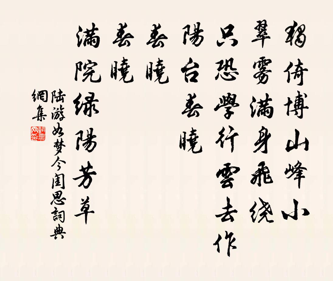 - 至今雲雨帶愁容,月斜江上,征棹動晨鐘牛希濟《臨江仙·峭壁參差十二峰》