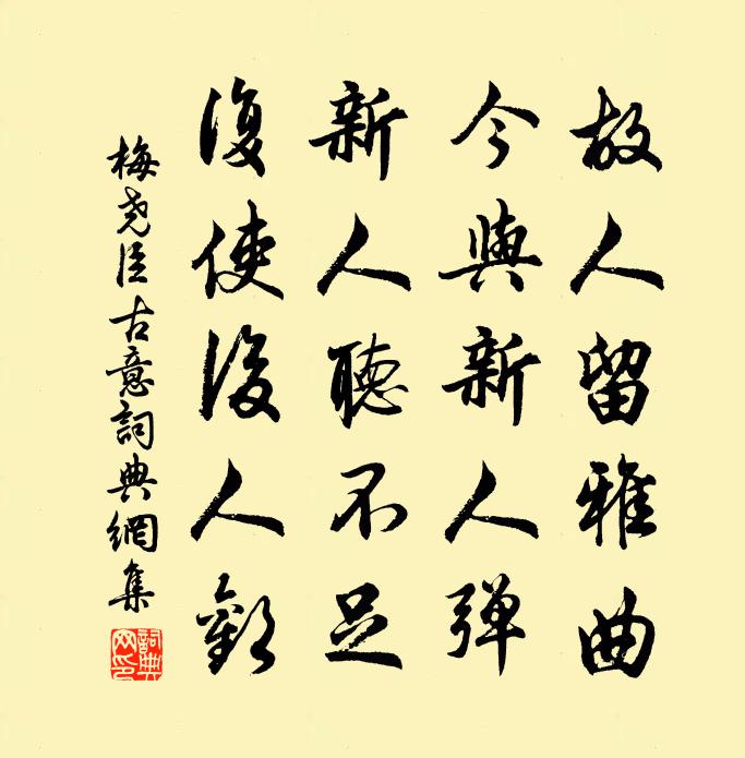 詩詞名句歷史字典書法欣賞書法字典國語詞典說文解字康熙字典古漢語字典標 題 作 者 詩 句 古意作者:梅堯臣 朝代:宋代古意原文故人留雅曲,今與新人1*1彈。新人聽不足,復使後人歡。詩詞問答問:古意的作者是誰?答:梅堯臣問:古意寫於哪個朝代?答:宋代問:梅堯臣的名句有哪些?答:梅堯臣名句大全梅堯臣古意書法欣賞古意書法作品詩詞推薦浣溪沙 舟中紀事姚燧〔元代〕白髮年來自笑余。孔方從有絕交書。誰憐多病麴生疏。兩岸行人爭抵掌,誰家舟上載籃輿。江南休問看山無。和黃充實榴花陳師道〔宋代〕春去花隨盡,紅榴暖欲然。後時何所恨,處獨不祈憐。葉葉自相偶,重重久更鮮。流珠沾暑雨,改色淡朝煙。著子四言詩十一首 其十嵇康〔兩漢〕羽化華岳。超游清霄。雲蓋習習。六龍飄飄。左配椒桂。右綴蘭苕。凌陽贊路。王子奉軺。婉孌名山。真人是要。薌林五十詠皈來橋楊萬里〔宋代〕已賡彭澤辭,更擬輞川詩。未老還山了,猶嫌皈較遲。冶春王士禎〔清代〕今有東風太狡獪,弄晴作雨遣春來。江梅一夜落紅雪,便有夭桃無數開。百舌鳥魏野〔宋代〕長截鄰雞叫五更,數般名字百般聲。饒伊饒舌爭先曉,也待青天明即鳴。鵲橋仙熊以寧〔宋代〕隱君仙裔,帥垣佳配。誰似碩人清貴。幾番鸞誥自天來,森綠綬、彩衣當砌。蓮開十丈,蓂留十莢,遲十日、瑤池齒痛有感陸游〔宋代〕眼暗頭童負聖時,齒牙欲脫更堪悲。暮年漸解人間事,蒸食哀梨亦自奇。李仲賓墨竹四首方回〔宋代〕渭川千畝入毫端,子美臨風野色寒。不是畫師即詩客,可能收拾與人看。題人畫扇十首曹勛〔宋代〕一川芳草接濃雲,拂地垂楊帶雨昏。蓑笠不堪牛背濕,迎風呼犢趁柴門。送劉法曹東歸魏野〔宋代〕上官多是嘆窮途,得替行裝盡有餘。唯有甘棠劉法掾,來時騎馬去騎驢。賦得夜雨滴空階送魏秀才楊衡〔唐代〕委檐方滴滴,沾紅復灑綠。醉聽乍朦朧,愁聞多斷續。始兼泉向細,稍雜更聲促。百慮自縈心,況有人如玉。三堂早春韋莊〔唐代〕獨倚危樓四望遙,杏花春陌馬聲驕。池邊冰刃暖初落,山上雪棱寒未銷。溪送綠波穿郡宅,日移紅影度村橋。主人寄懷在伯三首趙蕃〔宋代〕我苦千里役,兒荒三月書。役苦殆委頓,書荒廑墾鋤。夜雨倒湖水,春耕競田廬。事貴在勇決,爾胡但居諸。與印老同訪天封老至夕忘歸曹勛〔宋代〕斜風吹雪冷征衣,來見長眉老阿師。為我曉開銀 * ,笑談寧復問歸期。筠莊亭軒皆以筠名學士兄有詩次韻李彌遜〔宋代〕種竹營巢老自如,渭川端不羨商於。松行外護遮凡木,蓮葉平鋪覆斷渠。我輩方宜置丘壑,此君可共樂琴書。軒亭書翠岩寺壁曹松〔唐代〕何年話尊宿,瞻禮此堂中。入郭非無路,歸林自學空。濺瓶雲嶠水,逆磬雪川風。時說南廬事,知師用意同。新秋陸游〔宋代〕短鬢蕭蕭失舊青,此身已看作郵亭。新秋無限淒涼意,盡付風蟬與露螢。答中書詩謝靈運〔南北朝〕懸圃樹瑤。崑山挺玉。流采神皋。列秀華岳。休哉美寶。擢穎昌族。灼灼風徽。采采文牘。雜書五首方回〔宋代〕鼻涕垂頤銀竹凍,腦脂遮眼黑花飛。此身尚覺非吾有,焉問人間萬事非。名句推薦宮衣亦有名,端午被恩榮。杜甫《端午日賜衣》 思悠悠,恨悠悠,恨到歸時方始休。白居易《長相思·汴水流》 亦余心之所善兮,雖九死其猶未悔。屈原《離騷》 金柳搖風樹樹,系彩舫龍舟遙岸。柳永《破陣樂·露花倒影》 將之器,其用大小不同。諸葛亮《將苑·卷一·將器》 願君多採擷,此物最相思。王維《相思》 青山依舊在,幾度夕陽紅。楊慎《臨江仙·滾滾長江東逝水》 春草明年綠,王孫歸不歸?王維《送別 / 山中送別 / 送友》 酒闌更喜團茶苦,夢斷偏宜瑞腦香。李清照《鷓鴣天·寒日蕭蕭上瑣窗》 細草軟沙溪路、馬蹄輕。蘇軾《南歌子·寓意》