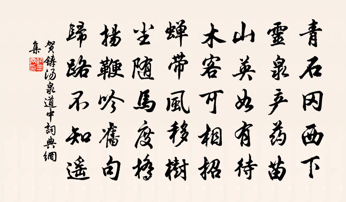 詩詞名句歷史字典書法欣賞書法字典國語詞典說文解字康熙字典古漢語字典標 題 作 者 詩 句 湯泉道中作者:賀鑄 朝代:宋代湯泉道中原文青石岡西下,靈泉產藥苗。山英如有待,木客可相招。蟬帶風移樹,塵隨馬度橋。揚鞭吟舊句,歸路不知遙。詩詞問答問:湯泉道中的作者是誰?答:賀鑄問:湯泉道中寫於哪個朝代?答:宋代問:賀鑄的名句有哪些?答:賀鑄名句大全賀鑄湯泉道中書法欣賞湯泉道中書法作品詩詞推薦和范元作二首胡寅〔宋代〕仇虜何須殺,調和乃妙機。又聞堅誓約,不用講攻圍。六月鵬南徙,三春雁北歸。自知同斥鷃,蓬菊且卑飛。大江東去 滕王閣 元草堂詩餘卷上高永〔元代〕閒登高閣,嘆興亡滿目,風煙塵土。畫棟珠簾當日事,不見朝雲暮雨。秋水長天,落霞孤鶩,千載名如故。長空淡呈尤運使袤延之五首趙蕃〔宋代〕今時使者中,所進非一律。學術用其長,公獨名副實。江左更江右,非為循更迭。政以歲方艱,當遣德星出。草廬白玉蟾〔宋代〕劉禪材非天下君,出師一表費殷勤。臥龍夢破隆中月,列雁轟開蜀口雲。甫得江心成八陣,奈何天意要三分。木牛游大中乾元寺張鎡〔宋代〕突兀前朝寺,維舟又一來。殿空金像暗,徑斷石幢摧。物相依成壞,塵緣漫樂哀。僧殘無悟語,猶幸結宗雷。婆羅門引(壽長老)彭耜〔宋代〕中秋皓月,隔霄光倍照塵寰。九龍噴香水,勝沈檀。白家珠明協瑞,尊者誕人間。世稱生佛子、派接清原。滿江紅晁補之〔宋代〕莫話南征,船頭轉、三千餘里。未嘆此、浮生飄蕩,但傷佳會。滿眼青山芳草外,半篙碧水斜陽里。問此中、何處水北民家窗間有題夜深短檠燈功名平生心者戲曹彥約〔宋代〕詩書窮生燈,功名平生心。辛勤鶯遷喬,哀鳴猿投林。蘭膏誰為容,朱弦無知音。安能如蜉蝣,隨時安其陰。秋閨怨詩陰鏗〔南北朝〕獨眠雖已慣。秋來只自愁。火籠恆暖腳。行障鎮床頭。眉含黛俱斂。啼將粉共流。誰能無別恨。唯守一空樓。送宋君用游輦下蘇軾〔宋代〕暴雨書漲荒溪,書尺水生洪書流。中有書潑潑鯉,泛然方快游。安知赤日爍,沸浪生浮漚。石密岸狹束,鱗鬣窘若友人陳槱得楊補之三昧賞之以詩白玉蟾〔宋代〕梅花不清是水清,最是一枝溪上橫。梅花不明是雪明,凍折老梢飄碎瓊。梅花不暗是雨暗,隔籬和雨粘珠糝。梅花令狐相公見示新栽蕙蘭二草之什,兼命同作劉禹錫〔唐代〕上國庭前草,移來漢水潯。朱門雖易地,玉樹有餘陰。艷彩凝還泛,清香絕復尋。光華童子佩,柔軟美人心。惜晚詠酒徐文瀾〔宋代〕才傾一盞碧澄澄,自是山妻手法成。不遣水多防味薄,要令曲少得香清。涼從荷葉風邊起,暖向梅花月里生。世味和侃法師庾信〔南北朝〕秦關望楚路,灞岸想江潭。幾人應落淚,看君馬向南。五弦彈-惡鄭之奪雅也白居易〔唐代〕五弦彈,五弦彈,聽者傾耳心寥寥。趙璧知君入骨愛,五弦一一為君調。第一第二弦索索,秋風拂松疏韻落。第三嘆老劉克莊〔宋代〕口惟兩齒鬢雙皤,百計無如耄及何。少壯未嘗參奼女,衰殘始欲養黃婆。原鴒逝去床誰對,遼鶴歸來冢漸多。客笑西齋小飲贈別陝州沖卿學士歐陽修〔宋代〕今日胡不樂,眾賓會高堂。坐中瀛洲客,新佩太守章。豈無芳◇酒,笑語共一觴。亦有嘉菊叢,新苞弄微黃。所嗟讀放翁詩作方回〔宋代〕放翁六十二,起家守嚴陵。三稔即只召,禮闈直青綾。虛翁四十九,外補當兵興。七稔始受代,萬死脫怨憎。放翁鷓鴣天·嫩綠重重看得成范成大〔宋代〕嫩綠重重看得成。曲闌幽檻小紅英。酴醿架上蜂兒鬧,楊柳行間燕子輕。春婉娩,客飄零。殘花淺酒片時清。一杯夜集作離合詩謝惠連〔南北朝〕四坐宴嘉賓。一客自遠臻。九言何所戒。十善故宜遵。名句推薦沅水通波接武岡,送君不覺有離傷。王昌齡《送柴侍御》 客有哀時失職而聽者,淚淋浪以沾襟。李白《幽澗泉》 那堪旅館經殘臘,只把空書寄故鄉。王建《維揚冬末寄幕中二從事》 何時一樽酒,重與細論文。杜甫《春日憶李白》 仁義禮善之於人也,辟之若貨財粟米之於家也。荀子《荀子·大略》 萬事一身傷老矣,戎葵凝笑牆東。陳與義《臨江仙·高詠楚詞酬午日》 花明柳暗繞天愁,上盡重城更上樓。李商隱《夕陽樓》 別離還有經年客,悵望不如河鼓星。徐凝《七夕》 以小人之慮,度君子之心。劉義慶《世說新語·雅量》 歸雲一去無蹤跡,何處是前期?柳永《少年游·長安古道馬遲遲》