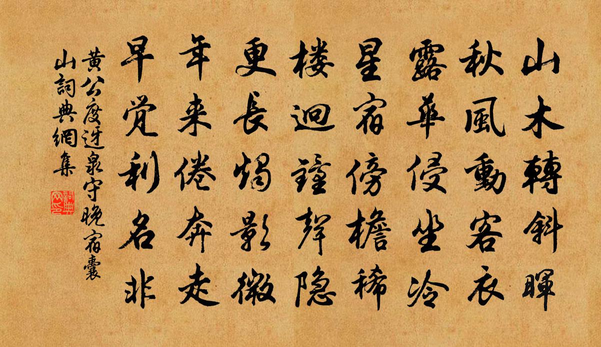 詩詞名句歷史字典書法欣賞書法字典國語詞典說文解字康熙字典古漢語字典標 題 作 者 詩 句 迓泉守晚宿囊山作者:黃公度 朝代:宋代迓泉守晚宿囊山原文山木轉斜暉,秋風動客衣。露華侵坐冷,星宿傍檐稀。樓迥鐘聲隱,更長燭影微。年來倦奔走,早覺利名非。詩詞問答問:迓泉守晚宿囊山的作者是誰?答:黃公度問:迓泉守晚宿囊山寫於哪個朝代?答:宋代黃公度迓泉守晚宿囊山書法欣賞迓泉守晚宿囊山書法作品詩詞推薦城上初作新亭猶未名也邦人哄然稱為三槐殊不吳芾〔宋代〕我心只是憶天台,欲去無從首重回。若得此時追五柳,絕勝他日面三槐。年年白髮催人老,夜夜青山入夢來。縱有巫山廟上下數十里有烏鳶無數取食於行舟之上蘇軾〔宋代〕群飛來去噪行人,得食無憂便可馴。江上飢烏無足怪,野鷹何事亦頻頻。金陵雜興二百首蘇泂〔宋代〕幽草沿階翠織成,初荷經雨碎珠生。藕絲道服松毛扇,獨自花間趁鹿行。偈頌一百四十一首釋師範〔宋代〕一陽生,萬匯生。正當生,作麽生。群陰消殄,吾道大亨。中秋聯句吳浚〔宋代〕棘闈受得樹涼多,耿耿孤燈奈夜何。後夜中秋可無月,雨工先為洗銀何。中秋此去日無多,笑問青天雨若何。舊日明堂觀禮雜詠十三首端門觀習肆赦儀王同祖〔宋代〕兩邊共幕護朱檐,中貴當頭候捲簾。扶起金雞爭搶取,要教天表庶民瞻。嘉泰昭陽大淵獻築室董孝君祠之西下有湖焉某楊簡〔宋代〕惜也天然一段奇,如何萬古罕人知。只今步步雲生足,底用思為底用疑。黃田人家別墅繚山種海棠為賦二絕劉克莊〔宋代〕海棠妙處有誰知,全在胭脂乍染時。試問玉環堪比否,玉環猶自覺離披。頌古二十首釋了一〔宋代〕心不是佛,智不是道。舉得十分,未敢相保。推條拄杖閒行,切忌回頭轉腦。句釋惠崇〔宋代〕曠野行人少,長河去鳥平。四賢一不肖詩右余安道蔡襄〔宋代〕南方之強君子居,卓然安首襟韻孤。詞科判等屢得雋,呀然鼓焰天地罏。三年待詔處京邑,斗粟不足榮妻孥。耳聞過檀溪盧明甫〔宋代〕鳥泊隨陽雁,魚藏縮項鯿。停杯問山簡,何似習池邊。立春日有懷楊萬里〔宋代〕玉堂著句轉春風,諸老從前亦寓忠。誰為君王供帖子,丁寧綺語不須工。中和樂九章歌南郊第四盧照鄰〔唐代〕虔郊上帝,肅事圓丘。龍駕四牡,鸞旗九斿。鍾歌晚引,紫煬高浮。日麗蒼璧,雲飛鳴球。皇之慶矣,萬壽千秋。儀真和同官韻二首劉宰〔宋代〕簿書塵里見清揚,握手論心味更長。何日出林共歸去,故園花竹可游藏。顏徒自樂一瓢飲,漢殿爭陪萬壽觴。馬革詠史上伏生陳普〔宋代〕睢陽東苑三百里,中山後宮三百人。漢家制度無窮極,僅有寬仁不是秦。清平樂陳師道〔宋代〕重重疊疊。娜娜裙千襵。時樣官黃香百葉。一歲相逢兩節。曲闌繞遍芳叢。一枝作意妍穠。折得有誰相憶,卻須還小孤山陳從易〔宋代〕山稱孤獨字,廟塑女郎形。過客雖知誤,行人但乞靈。寄餘溫卿王安石〔宋代〕雲散風流不自禁,天涯無路盍朋簪。空馳上國青泥信,誰和南山白石音。平日離愁寬頻眼,訖春歸思滿琴心。終回次韻宋尚書山居日涉園方岳〔宋代〕老石山苔手自冶,愛閒詩最與山宜。無官莫惜頻來往,破費春風又幾時。名句推薦西湖舊日,留連清夜,愛酒幾將花誤。吳文英《永遇樂·探梅次時齋韻》 西風潑眼山如畫,有黃花休恨無錢。張可久《風入松·九日》 鵲飛山月曙,蟬噪野風秋。上官儀《入朝洛堤步月》 君子遵道而行,半途而廢:吾弗能已矣。子思《中庸·第十一章》 人無善志,雖勇必傷。劉安及其門客《淮南子·主術訓》 花開不並百花叢,獨立疏籬趣未窮。鄭思肖《畫菊》 福來有由,禍來有漸。陳壽《三國志·吳書·吳主五子傳》 雉雊麥苗秀,蠶眠桑葉稀。王維《渭川田家》 乍暖還輕冷。張先《青門引·春思》 莫遣只輪歸海窟,仍留一箭射天山。李益《塞下曲》