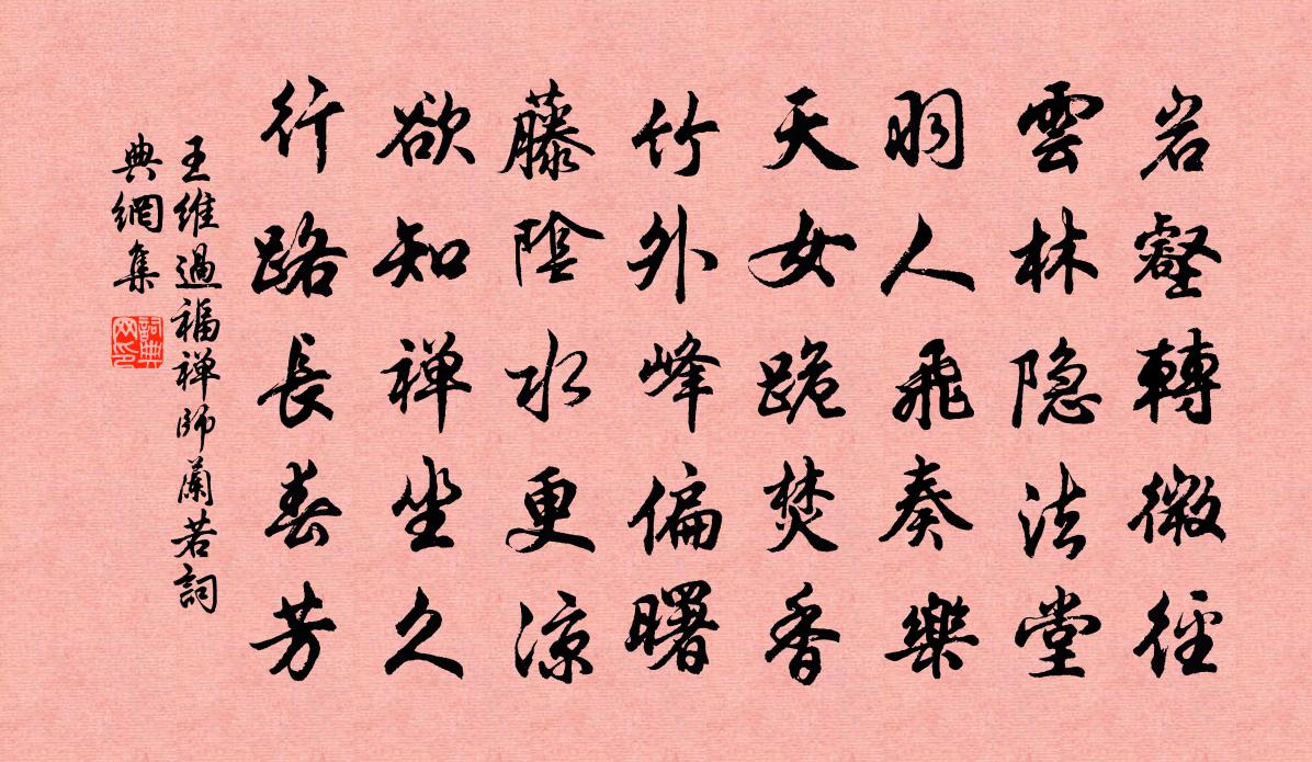 岩壑轉微徑,雲林隱法堂。羽人飛奏樂,天女跪焚香。