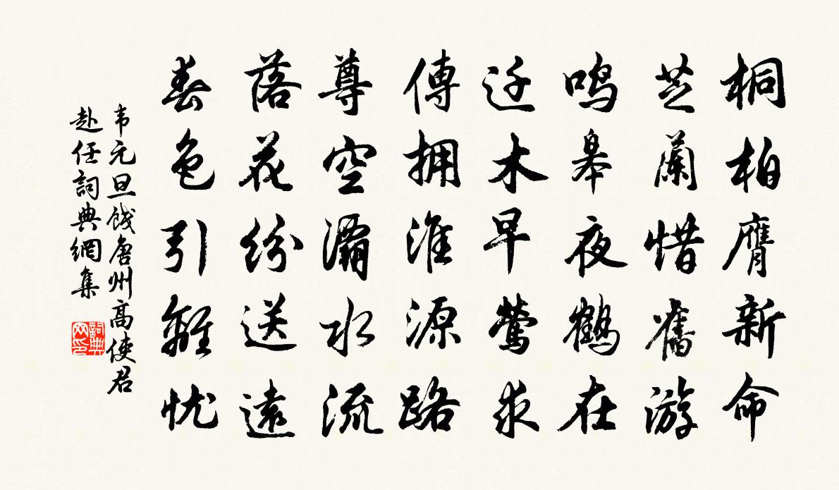 詩詞名句歷史字典書法欣賞書法字典國語詞典說文解字康熙字典古漢語字典標 題 作 者 詩 句 餞唐州高使君赴任作者:韋元旦 朝代:唐代餞唐州高使君赴任原文桐柏膺新命,芝蘭惜舊遊。鳴皋夜鶴在,遷木早鶯求。傳擁淮源路,尊空灞水流。落花紛送遠,春色引離憂。詩詞問答問:餞唐州高使君赴任的作者是誰?答:韋元旦問:餞唐州高使君赴任寫於哪個朝代?答:唐代問:餞唐州高使君赴任是什麼體裁?答:五律韋元旦餞唐州高使君赴任書法欣賞餞唐州高使君赴任書法作品注釋全唐詩:卷69_16詩詞推薦蓬戶陸游〔宋代〕蓬戶真堪設爵羅,歲時野老自相過。人情靜處看方見,詩句窮來得最多。枕上長歌時激烈,樽前一笑且婆娑。白頭早行五首趙蕃〔宋代〕萬石湖南港,楊林湖北潭。不勝搖櫓倦,顧欲使風貪。凜凜岩牆戒,悠悠鴆毒耽。頻能愧沙鳥,數可傲征帆。方量牧地次韻工曹王亞叟傅察〔宋代〕朝廷遮事備成康,郡邑承風底事忙。要使幅員無曠土,始知冀北有留良。疏狂似我徒勞耳,術業如君詎易量。奔走古興聶夷中〔唐代〕片玉一塵輕,粒粟山丘重。唐虞貴民食,只是勤播種。前聖后聖同,今人古人共。一歲如苦飢,金玉何所用。杭州璘上人以花栽數種見寄蔡襄〔宋代〕名品參差十數窠,商船千里任風波。土花分破根株小,春色隨來意氣多。欲種更看移樹法,將開須與傍欄歌。中年虎跑泉廖顒〔宋代〕真馭遺蹤古,寒泉瀉石清。養源人莫測,流潤濟蒼生。章法院中作丘葵〔宋代〕一入紫雲深更深,游僧亦喜不相尋。已無塵事改人意,時有書聲雜梵音。浩氣養成天地小,欲心掃盡鬼神欽。人生延真觀一首王阮〔宋代〕偃月堂成竟斲棺,延真人只葬衣冠。浮雲眼見成騎虎,不似抽身穩跨鸞。晚台宋庠〔宋代〕霽色秋空送目勞,小台搖落更平皋。紅垂海樹烏棲日,清溢江沱鷺浴濤。天勢暮圍鱗隰闊,雁行斜轉翼雲高。楚風楓橋寺小憩程公許〔宋代〕雲已安排雪,天仍慘澹風。纜船投古剎,撥火共談空。和苗員外寓直中書包何〔唐代〕朝列稱多士,君家有二難。貞為台里柏,芳作省中蘭。夜宿分曹闊,晨趨接武歡。每憐雙闕下,雁序入鴛鸞。偶得長魚巨蟹命酒小飲蓋久無此舉也陸游〔宋代〕老生日日困鹽齏,異味棕魚與楮雞。敢望槎頭分縮項,況當霜後得團臍。堪憐妄出緣香餌,尚想橫行向草泥。東崦舟中曾幾〔宋代〕灘聲送我入嚴州,過得州來水漫流。一夜好風潮信早,滿船明月荻花秋。和衛尉寺柳杜之松〔唐代〕漢將本屯營,遼河有戍城。大夫曾取姓,先生亦得名。高枝拂遠雁,疏影度遙星。不辭攀折苦,為入管弦聲。九日鄰翁招飲仇遠〔宋代〕佳節喜新霽,作意登南山。茲山雖不高,亦足供躋攀。平明放舟出,日暮騎馬還。行止不自由,寸步千里艱。北鄰病起五首劉克莊〔宋代〕越境迎醫伎又窮,殘骸奉施與天公。外庭幸際清明始,內障如囚黑暗中。貝葉今難開隻眼,薰弦昔忝和重瞳。暮年絕句六十四首張伯端〔宋代〕偃月爐中玉蕊生,硃砂鼎內水銀平。只因火力調和後,種得黃芽漸長成。從先生明哲道中呈伯廣炳道時瀾〔宋代〕燕子楊花各自飛,雨乾溪路綠初肥。無人會得風雩意,可是千年瑟竟希。禋郊詩余靖〔宋代〕函夏恢文治,禋燔講禮隆。物兼明德薦,天以至誠通。制度親祠盛,威儀陟配崇。戎容儼仙仗,霽色照郊宮。國典山庵夜宿呈深居先生張紹文〔宋代〕松逕轉幽密,一程深一程。濤聲在平地,月色正三更。僧定欲喚起,鶴眠頻夢驚。曉來真富貴,露葉綴珠瓔。名句推薦清明又近也,卻天涯為客。曹組《憶少年·年時酒伴》 危樓高百尺,手可摘星辰。李白《夜宿山寺》 曉看天色暮看雲,行也思君,坐也思君。唐寅《一剪梅·雨打梨花深閉門》 民有三患,飢者不得食,寒者不得衣,勞者不得息墨子《墨子·32章 非樂(上)》 出耒在明晨,山寒易霜霰。王守仁《謫居糧絕請學於農將田南山詠言寄懷》 人間夢隔西風,算天上、年華一瞬。吳文英《惜秋華·七夕》 君去滄江望澄碧,鯨鯢唐突留餘跡。李白《赤壁歌送別》 千秋釣舸歌明月,萬里沙鷗弄夕陽。杜牧《西江懷古》 浮生只合尊前老。雪滿長安道。舒亶《虞美人·寄公度》 春近寒雖轉,梅舒雪尚飄。陰鏗《雪裡梅花詩》