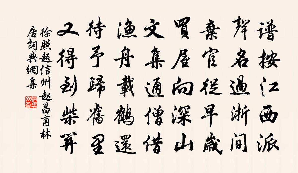 詩詞名句歷史字典書法欣賞書法字典國語詞典說文解字康熙字典古漢語字典標 題 作 者 詩 句 題信州趙昌甫林居作者:徐照 朝代:宋代題信州趙昌甫林居原文譜按江西派,聲名過浙間。棄官從早歲,買屋向深山。文集通僧借,漁舟載鶴還。待予歸舊里,又得到柴關。詩詞問答問:題信州趙昌甫林居的作者是誰?答:徐照問:題信州趙昌甫林居寫於哪個朝代?答:宋代徐照題信州趙昌甫林居書法欣賞題信州趙昌甫林居書法作品詩詞推薦贈太行開路者於濆〔唐代〕手劚太行山,心齊太行巔。劚盡太行險,君心更摩天。何如回苦辛,自鑿東皋田。荊門行王建〔唐代〕江邊行人暮悠悠,山頭殊未見荊州。峴亭西南路多曲,櫟林深深石鏃鏃。看炊紅米煮白魚,夜向雞鳴店家宿。南中游香社寺趙善括〔宋代〕山水興方逸,塵埃縛暫寬。菜腸甘久素,酒頰助微丹。江闊煙光薄,霜滋葉暈殘。不妨走幽寺,或可叩禪端。塊坐齋中有感陸游〔宋代〕敗席凝麈嬾拂除,況能作意去庭蕪。讀書眼力衰難強,對酒心情薄欲無。野寺鐘魚思下擔,山郵鞍馱憶登途。頹然發吉州文天祥〔宋代〕己卯六月初一日,蒼然亭下楚囚立,山河顛倒紛雨泣。乙亥七夕此何夕,煌煌鬥牛劍光濕,戈鋋彗雲雷電擊。三百詠史詩葉縣胡曾〔唐代〕葉公丘墓已塵埃,雲矗崇墉亦半摧。借問往年龍見日,幾多風雨送將來。次友人書懷張元乾〔宋代〕此生無意入修門,精飽雞豚短褐溫。卜築幾椽臨水屋,經營數畝傍山園。酒杯剩喜故人飲,書帙能遮老眼昏。身世送王巡檢之定海梅堯臣〔宋代〕休淬鸊鵜劍,休調鵲血弓。平時自壯大,何所立戰功。得兵不滿百,防寇滄海東。駕船如飛鶻,出入巨浪中。苟能灩澦堆杜甫〔唐代〕巨積水中央,江寒出水長。沈牛答雲雨,如馬戒舟航。天意存傾覆,神功接混茫。干戈連解纜,行止憶垂堂。寄和州韓舍人徐鉉〔唐代〕急景駸駸度,遙懷處處生。風頭乍寒暖,天色半陰晴。久別魂空斷,終年道不行。殷勤雲上雁,為過歷陽城。金剛隨機無盡頌正信希有分第六釋印肅〔宋代〕猶道人如歸,歸道不如如。道本無象法,無念契無為。憶潮陽陳堯佐〔宋代〕東西樓閣與雲齊,天際孤煙認惡溪。記得幽人舊吟處,獨游亭在野橋西。和梅臞瀑布韻胡仲弓〔宋代〕銀河清夜決,一派落岩前。雷激驚龍蟄,霜飛冷鶴眠。醉鄉思入聖,吟骨欲登仙。世路風波惡,山中別有天。頌十玄談一色釋印肅〔宋代〕行人到此盡蹉跎,一指頭端不奈何。毫髮有差千萬里,溈山撫掌笑呵呵。趙資政園梅篆樓鑰〔宋代〕小徑迴環里許長,寒梅森列間疎篁。路如古繭縈繆篆,身似輕煙繚印香。九折坂中經蜀險,八盤嶺上趁朝忙。歸來偈頌二十九首釋雲〔宋代〕佛說一乘法,無二亦無三。山花開似錦,澖水湛如藍。支提遮里,無法可說,贏得口似匾擔。奉和幸大薦福寺(寺乃中宗舊宅)趙彥昭〔唐代〕寶地龍飛後,金身佛現時。千花開國界,萬善累皇基。北闕承行幸,西園屬住持。天衣拂舊石,王舍起新祠。剎鳳三月晦日同弟觀侄津往寶幢哭刑部伯求弟道從陳著〔宋代〕劫火不飛處,便如仙洞源。載秧交野艇,賣筍到僧門。潮水河分港,南風雨暗村。家山百里外,回首已黃昏。晚鶯二首張耒〔宋代〕庭樹知秋雕晚枝,春鶯一去幾時歸。晚來何事枝頭見,啞鴉數聲還復飛。次韻張太博見貽魏了翁〔宋代〕門前車馬塵滔滔,試問有誰閒似我。夜燈照出千古心,曉窗掣破重玄鎖。名句推薦冥冥寒食雨,客意向誰親?劉一止《冥冥寒食雨》 彩舟載得離愁動。無端更借樵風送。賀鑄《菩薩蠻·彩舟載得離愁動》 來如風雨,去似微塵。佚名《增廣賢文·上集》 天清一雁遠,海闊孤帆遲。李白《送張舍人之江東》 倚篷窗無寐,引杯孤酌。張元乾《滿江紅·自豫章阻風吳城山作》 忘身辭鳳闕,報國取龍庭。王維《送趙都督赴代州得青字》 善不積不足以成名,惡不積不足以滅身。佚名《易傳·繫辭傳下·第五章》 夜發清溪向三峽,思君不見下渝州。李白《峨眉山月歌》 能者勞而俯怨,何如拙者逸而全真。洪應明《菜根譚·概論》 百囀千聲隨意移,山花紅紫樹高低。歐陽修《畫眉鳥》