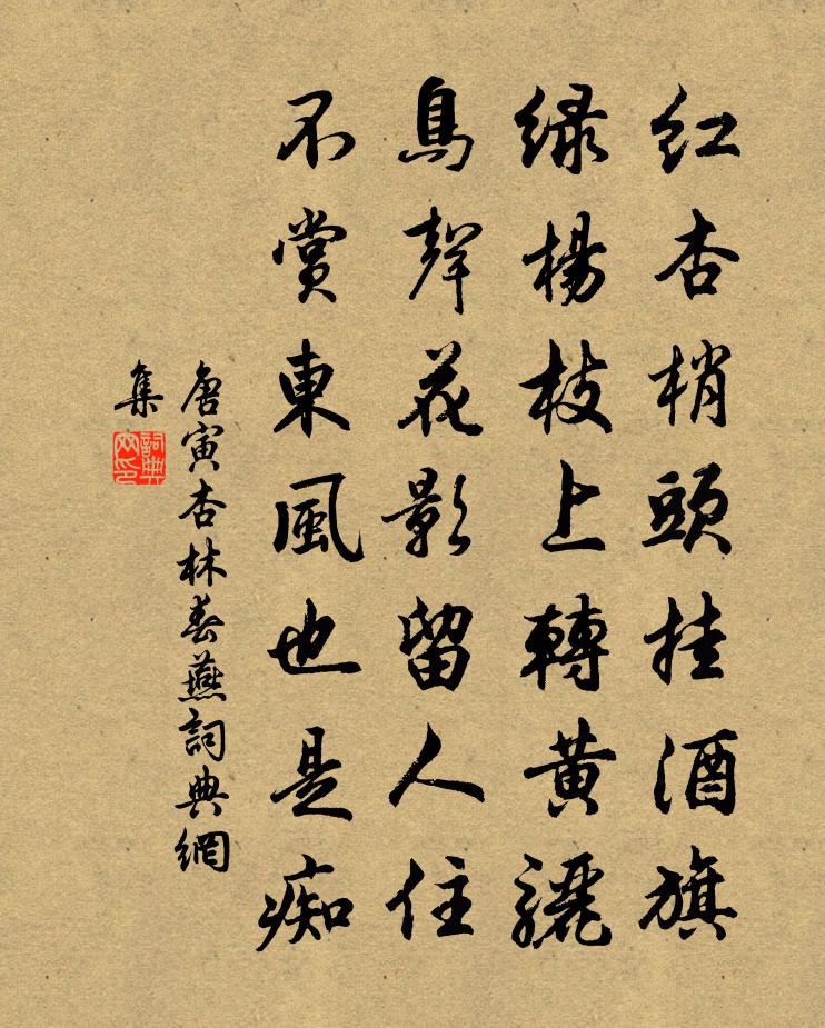 紅杏梢頭掛酒旗,綠楊枝上轉黃驪。鳥聲花影留人住,不賞東風也是痴。