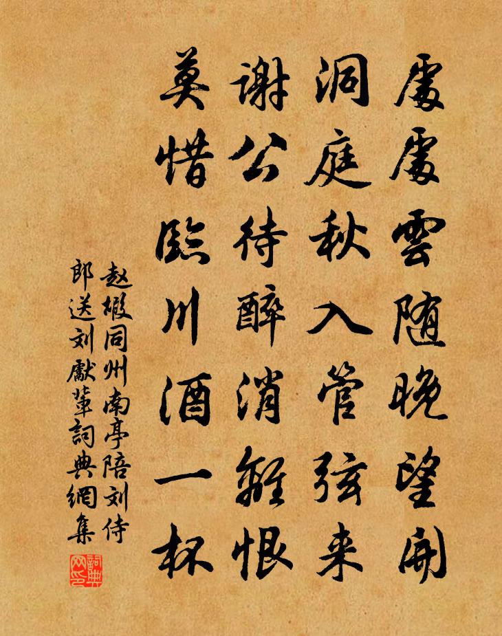 趙嘏同州南亭陪劉侍郎送劉先輩書法欣賞