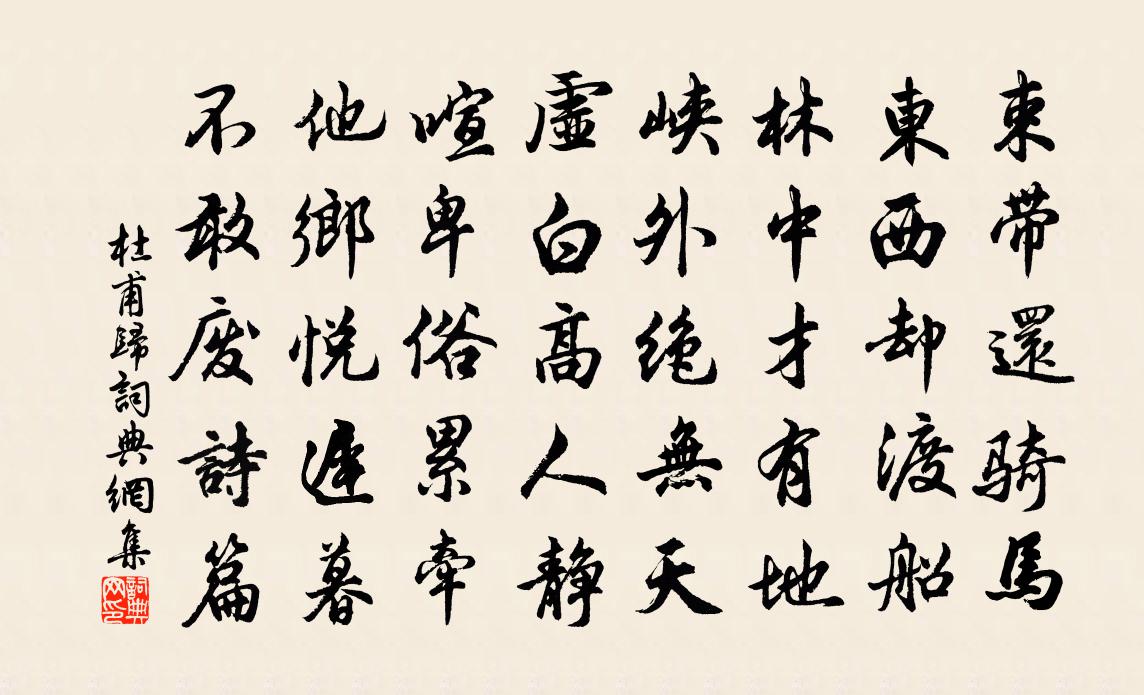 束帶還騎馬,東西卻渡船。林中才有地,峽外絕無天。