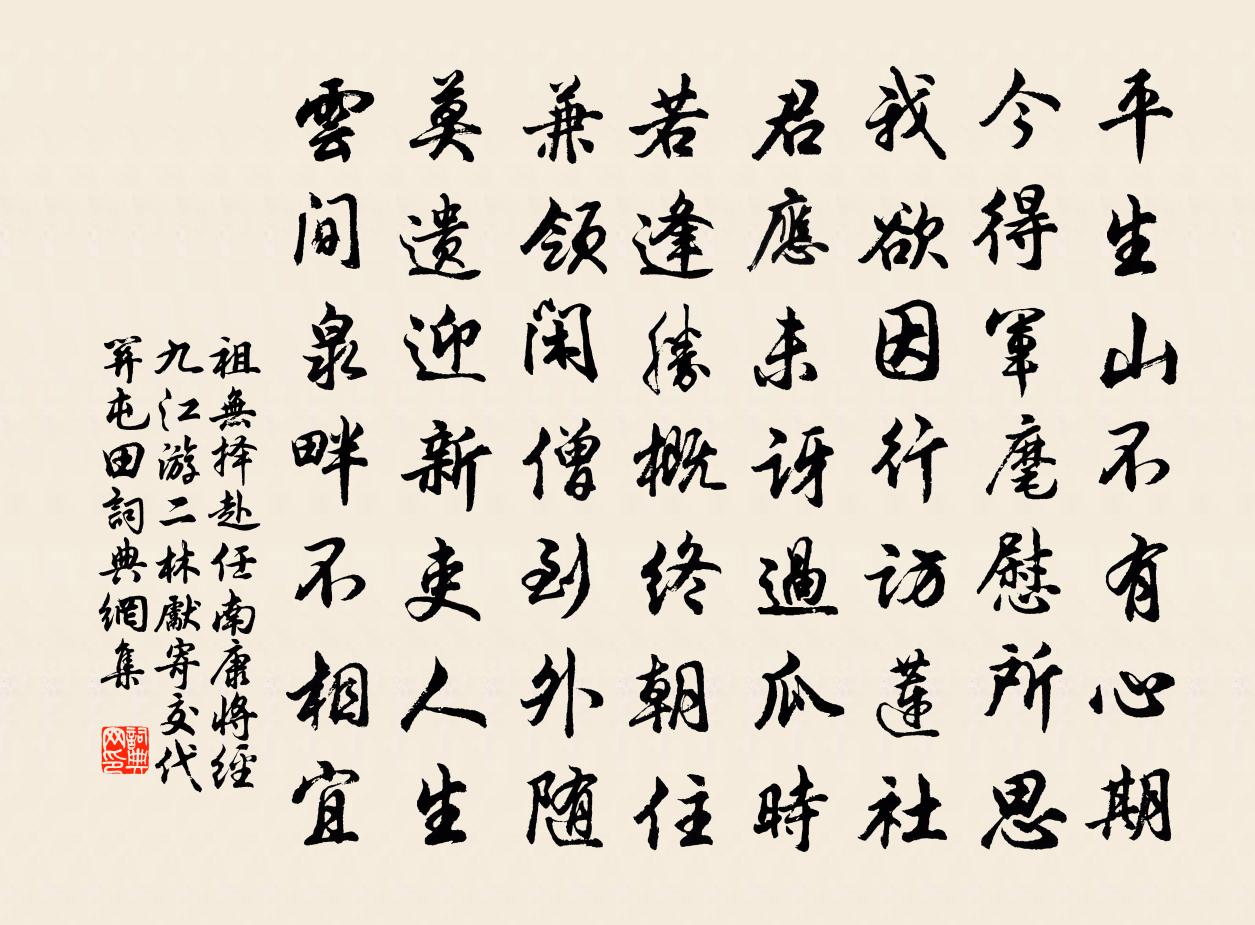 詩詞名句歷史字典書法欣賞書法字典國語詞典說文解字康熙字典古漢語字典標 題 作 者 詩 句 赴任南康將經九江游二林先寄交代關屯田作者:祖無擇 朝代:宋代原文平生山不有心期,今得軍麾慰所思。我欲因行訪蓮社,君應未訝過瓜時。若逢勝概終朝住,兼領閒僧到外隨。莫遺迎新吏人生,雲間泉畔不相宜。詩詞問答問:《赴任南康將經九江游二林先寄交代關屯田》的作者是誰?答:祖無擇問:該詩寫於哪個朝代?答:宋代書法欣賞赴任南康將經九江游二林先寄交代關屯田書法作品詩詞推薦夜聽黃仲立彈廣陵徐照〔宋代〕月色照君琴,移床出木陰。數聲廣陵水,一片古人心。投劍功無補,衝冠怒亦深。蹤能清客耳,還是亂時音。挑薺釋紹曇〔宋代〕小奚挑薺攜籃去,尋遍頹垣與荒圃。根染微黃怯曉霜,葉鋪嫩綠滋春雨。沙瓶鳴井{奭右斗}寒泉,膏泥濯盡夸芳蘇魏公到鎮出京二帖贊岳珂〔宋代〕德量維昔該乾坤,藝成而下道乃尊。堂堂魏公古大臣,劫火同燬靈光存。直躬致主無間言,餘事翰墨何足論。百年早春寄景仁司馬光〔宋代〕疊石溪上春,茅茨卜築新。前言如不踐,山蟬又笑人。五月七日拜致仕敕口號陸游〔宋代〕剡曲東歸日醉眠,冰銜屢忝武夷仙。恩如長假容居里,官似分司不限年。一紮疏榮馳廄置,兩兒扶拜望雲天。坐糜和李相園亭二首李彌遜〔宋代〕軒戶新成紫翠邊,花光竹色借廚煙。詩人莫浪夸盤谷,畫手無工貌輞川。何必吾廬在丘壑,要令是處有林泉。此心寄在伯二首趙蕃〔宋代〕成我中興年,朝家政急賢。侍臣更論薦,東閣重招延。子去當茲日,才惟莫與先。習軒經濟學,於此定為川。送李明府赴滑州韓翃〔唐代〕渭城寒食罷,送客歸遠道。烏帽背斜暉,青驪踏春草。酒醒孤燭夜,衣冷千山早。去事沈尚書,應憐詞賦好。頌古三十一首釋梵琮〔宋代〕婆子孤窮要嫁人,趙州聞得便相親。歸來只說恩情話,堪笑無端惹客塵。浪淘沙劉禹錫〔唐代〕汴水東流虎眼紋,清淮曉色鴨頭春。君看渡口淘沙處,渡卻人間多少人。劉向徐鈞〔宋代〕忠言歷歷總成虛,二十餘年列大夫。未死已知他日禍,此身幸不見新都。宿裴友書齋李觀〔唐代〕臥君山窗下,山鳥與我言。清風何颼飀,松柏中夜繁。久游失歸趣,宿此似故園。林煙橫近郊,谿月落古原。稚子送召客馮時行〔宋代〕暮春送客朝明光,顛風吹花繞柂檣。大江吞天日出沒,赤心許國一葦航。平生夢躡螭龍尾,天門九重九萬里。一朝菩薩蠻(照溪)侯置〔宋代〕江梅占盡江頭雪。忍寒玉骨夸清絕。不似杜秋娘。婆娑秋水傍。波光涵晚日。照影從教密。隱隱認遙黃。隔溪十里雨行五嶺下趙文〔宋代〕天地忽晝晦,四山潑墨濃。而我行其間,宛如所翁龍。大風吹倒人,欲避無所容。有翼不得張,狂走急雨中。數里和柴大監留郎中游郁孤及喜雨之什陳元晉〔宋代〕農畝皇皇望有秋,肩赬背裂汗衣流。疲甿不得一飯飽,我輩應慚多食浮。烏尾督逋無迫遽,鼠牙有訟怕淹留。兩君句李迎〔宋代〕籍甚人言易已東。送葉知道歸永嘉約其再為歷陽來徐僑〔宋代〕心事相知久,交情一見真。靜參師友正,細語弟兄親。索去銷魂惡,期來刮眼新。臨分不多語,重會莫過□。即事陸游〔宋代〕放翁老去未忘情,鏡里森然白髮生。一片常愁見花落,三聲最怕聽猿鳴。年年雙雙路傍堠,夜夜短長城上更。晚悟昭君怨四首曹勛〔宋代〕再拜升車望已過,卻教紅粉保山河。當時豈止毛延壽,對面欺君事更多。名句推薦無限傷心夕照中,故國淒涼,剩粉余紅。夏完淳《一剪梅·詠柳》 冰炭不同器而久,寒暑不兼時而至韓非及後人《韓非子·顯學》 明月照積雪,朔風勁且哀。謝靈運《歲暮》 春至花如錦,夏近葉成帷。李爽《芳樹》 呼童烹雞酌白酒,兒女嬉笑牽人衣。李白《南陵別兒童入京》 東風吹落戰塵沙,夢想西湖處士家。劉因《觀梅有感》 馬蕭蕭,人去去,隴雲愁。孫光憲《酒泉子·空磧無邊》 仁人之於弟也,不藏怒焉,不宿怨焉,親愛之而已矣。孟子《孟子·萬章章句上·第三節》 不知戒,後必有,恨後遂過不肯悔,讒夫多進荀子《荀子·成相》 無人調護,自去經心。沈復《浮生六記·閨房記樂》