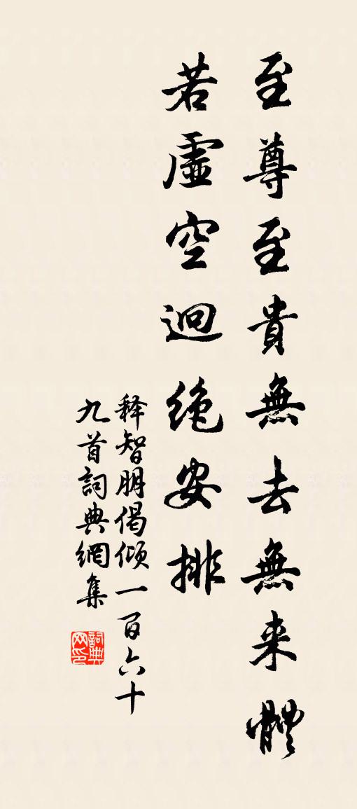 詩詞名句歷史字典書法欣賞書法字典國語詞典說文解字康熙字典古漢語字典標 題 作 者 詩 句 偈傾一百六十九首作者:釋智朋 朝代:宋代偈傾一百六十九首原文至尊至貴,無去無來。體若虛空,迥絕安排。詩詞問答問:偈傾一百六十九首的作者是誰?答:釋智朋問:偈傾一百六十九首寫於哪個朝代?答:宋代釋智朋偈傾一百六十九首書法欣賞偈傾一百六十九首書法作品詩詞推薦貽蜀五首韋兵曹臧文元稹〔唐代〕處處侯門可曳裾,人人爭事蜀尚書。摩天氣直山曾拔,澈底心清水共虛。鵬翼已翻君好去,烏頭未變我何如。殷勤送高執中赴文州楒林李新〔宋代〕兩眼追霜鷹,鐵石懸肺腑。何為向北風,送子淚如雨。平生珍古交,及今未多數。相逢漢江曲,聊作蘋鷗聚。我疾贈筆工張嵲〔宋代〕顧兔霜余毫健如,銛錐妙手應時胥。臨池自愧無功用,欲借僧房柿葉書。崇慶通判楊君輓詩魏了翁〔宋代〕長佩高冠集翠裾,華途落落僅題輿。官無小大皆行己,理有是非寧問渠。賦似長楊猶悔作,材如雄劍獨藏余。方相懷舊山(一作別嘉興知己)皎然〔唐代〕一坐西林寺,從來未下山。不因尋長者,無事到人間。宿雨愁為客,寒花笑未還。空懷舊山月,童子念經閒。共城十吟其三曰春郊芳草邵雍〔宋代〕春風必有刀,離腸被君斷。春風既無刀,芳草何人剪。腸斷人復接,草剪益還生。誰人有芳酒,為我高歌傾。讀法華經示巽上人游九言〔宋代〕上上不須說,我法妙難思。汝師釋迦文,深欲警群痴。有如優曇花,可玩不可持。瑤車駕大武,火宅鳴狐狸。中道寄子山待制二絕歐陽修〔宋代〕聞君屢醉賞紅英,落盡殘花酒未醒。嗟我落花無分看,莫嫌狼藉掃中庭。柳梢青呂渭老〔宋代〕遠簾籠月。誰見南陌,子規啼血。萸糝菊英,整冠落帽,一時虛說。五湖自有深期,曾指定、燈花細說。燕子巢空失調名佚名〔宋代〕那得工夫送。寄許州清古齊己〔唐代〕北來儒士說,許下有吟僧。白日身長倚,清秋塔上層。言雖依景得,理要入無征。敢望多相示,孱微老不勝。次韻劉無言壽山中五絕句敢請諸僚和之葛立方〔宋代〕命友登山共寄情,亦逢佳處便班荊。有時便取琴雙鎖,寫出蒼髯夜半聲。陪韓守劉村看牡丹李石〔宋代〕洛陽舊譜隔芳園,姚魏尋香作返魂。端為名花肯迂路,定知春色落深村。日中半醉如含恨,雨後幽姿未忍言。上怨玉虹泉何錫汝〔宋代〕百尺雲岩佛閣前,晚鐘疏葉思悠然。岸邊酌酒和清露,石上題詩染翠煙。半嶺泉鳴通古澗,數峰秋盡隔寒川。西風廬陵王墓下作謝靈運〔南北朝〕曉月發雲陽,落日次朱方。含淒泛廣川,灑淚眺連崗。眷言懷君子,沈痛結中腸。道消結憤懣,運開申悲涼。神期北苑十詠茶壟蔡襄〔宋代〕造化曾無私,亦有意所加。夜雨作春力,朝雲護日華。千萬碧玉枝,戢戢抽靈芽。挽龔宣教世基廖行之〔宋代〕文物湘中盛,唯公獨最優。麒麟來瑞世,鵬鶚快橫秋。桂籍名言著,燈窗志少酬。居鄉多令望,治國蘊嘉猷。題寧國府涇縣琴高堂陳著〔宋代〕一山逶迤來,結崖俯寒碧。傳聞控鯉仙,垂釣山下石。前事不必窮,要是古奇蹟。山中好事者,築亭占清特。數本上司諫曹先生劉學箕〔宋代〕聲名滿世重如山,果見延登左掖班。天子虛心求國是,先生著手濟時艱。要看出處諸公上,只在精神一轉間。前此和孫司門寄寬堂詩二首杜范〔宋代〕靖節非沉湎,行藏豈漫遊。幾多經濟具,可付醉吟休。志在存周鼎,悲能學楚囚。流風千載想,我欲賦登樓。名句推薦半盞屠蘇猶未舉,燈前小草寫桃符。陸游《除夜雪》 歸燕識故巢,舊人看新曆。王維《春中田園作》 法莫如顯,而術不欲見韓非及後人《韓非子·難三》 弱柳青槐拂地垂,佳氣紅塵暗天起。盧照鄰《長安古意》 功名富貴逐世轉移,而氣節千載一時。洪應明《菜根譚·概論》 家在夢中何日到,春來江上幾人還?盧綸《長安春望》 綠池落盡紅蕖卻,荷葉猶開最小錢。楊萬里《秋涼晚步》 孟夏草木長,繞屋樹扶疏。陶淵明《讀山海經·其一》 福善之門莫美於和睦,患咎之首莫大於內離。班固《漢書·傳·宣元六王傳》 終然獨不見,流淚空自知。李白《獨不見》