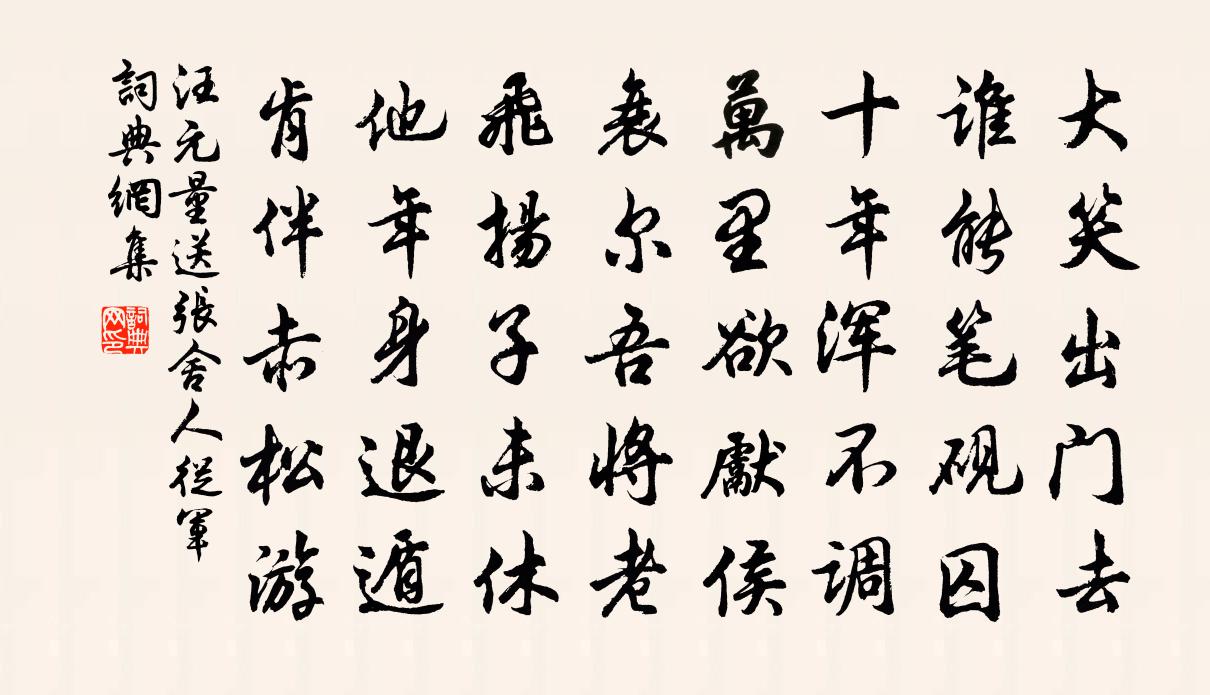 大笑出門去,誰能筆硯囚。十年渾不調,萬里欲先侯。