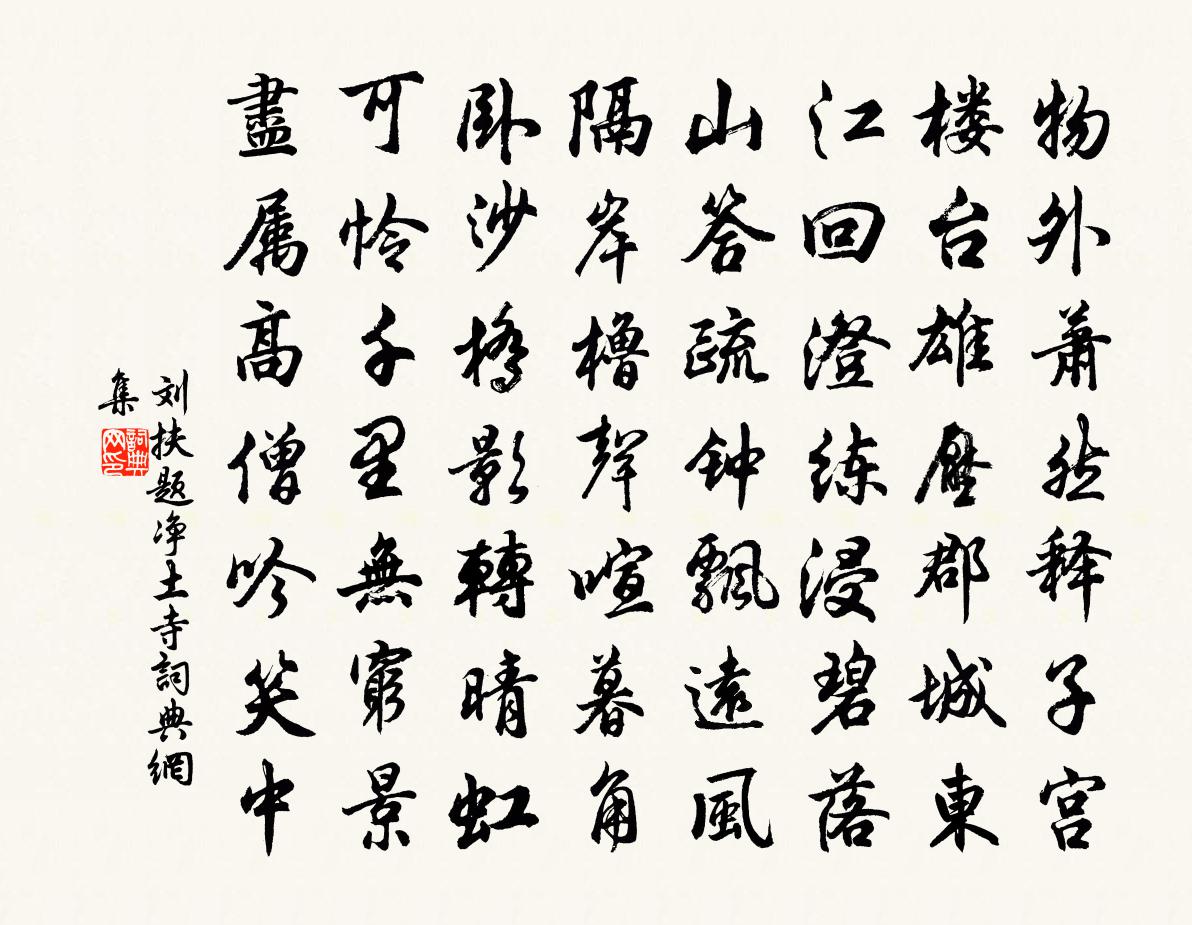 詩詞名句歷史字典書法欣賞書法字典國語詞典說文解字康熙字典古漢語字典標 題 作 者 詩 句 題淨土寺作者:劉扶 朝代:宋代題淨土寺原文物外蕭然釋子1/1宮,樓台雄壓郡城東。江回澄練浸碧落,山答疏鍾飄遠風。隔岸櫓聲喧暮角,臥沙橋影轉晴虹。可憐千里無窮景,盡屬高僧吟笑中。詩詞問答問:題淨土寺的作者是誰?答:劉扶問:題淨土寺寫於哪個朝代?答:宋代劉扶題淨土寺書法欣賞題淨土寺書法作品詩詞推薦秋蕊香(和吳見山落桂)吳文英〔宋代〕寶月驚塵墮曉。愁鎖空枝斜照。古苔幾點露螢小。銷減秋光旋少。佩丸尚憶春酥裊。故人老。斷香忍和淚痕掃。魂已亥雜詩 161龔自珍〔清代〕如何從假入空法,君亦莫問我莫答。若有自性互不成,互不成者誰佛剎。出野觀農二首宋祁〔宋代〕杏蕊菖芽正及春,風煙萬頃縹陂勻。果然莊腹三餐飽,悒悒深耕不顧人。送張鬷嘏李覯〔宋代〕人意皆懷土,嗟君無故園。欲行須盡室,此去又他門。靜里文章好,貧來節行存。振淹知有日,倚伏豈虛言。金蓮出玉華王丹桂〔元代〕無為清靜。虎繞龍蟠歸大定。清靜無為。子母和同出入隨。逍遙自在。去去來來絕掛礙。自在逍遙。一任出林與市夢中作戴表元〔宋代〕晴霞冠領朝紅潔,新漲連空晚綠酣。惆悵春風倦遊夢,木蘭亭上望淮南。晦跡自貽釋重顯〔宋代〕圖畫當年愛洞庭,波心七十二峰青。如今高臥思前事,添得盧公倚石屏。戲詠白髮廖行之〔宋代〕與愁添悴色,為老出孤標。髣髴生銀縷,依微散玉苗。摘除猶茁茁,晞沭更蕭蕭。相見函關路,應符物色邀。李丞相挽章王洋〔宋代〕名紀三朝重,身居百避師。華夷占用否,進退擊安危。見夢英靈在,成功命數奇。出師身已老,垂淚憶當時。初到洛下閒遊白居易〔唐代〕漢庭重少身宜退,洛下閒居跡可逃。趁伴入朝應老醜,尋春放醉尚粗豪。詩攜彩紙新裝卷,酒典緋花舊賜袍。曾在上政府五首郭印〔宋代〕起家白屋忝為郎,俯視同儕道亦光。已幸十年紆赤紱,猶期一日坐黃堂。紛紛奔競真成笑,兀兀蠢愚但守常。不是汴京紀事二十首 其十劉子翬〔宋代〕宮娃控馬紫茸袍,笑捻金丸彈翠毛。鳳輦北游今未返,蓬蓬艮岳內中高。四月中休日聞蟬楊萬里〔宋代〕荔枝葉底暑陰清,已有新蟬一兩聲。荷露柳風餐未飽,怪來學語不分明。謁金門孫光憲〔唐代〕留不得,留得也應無益。白紵春衫如雪色,揚州初去日。輕別離,甘拋擲,江上滿帆風疾。卻羨彩鴛三十六,孤鸞臘日同舍郎即湖上送諸葛吏部赴胡北常平次汪魏了翁〔宋代〕繡衣銜命去,祖帳為王留。大舶滿青鏡,寒雲明玉舟。歲余官事省,蠟畢吏功休。千古行藏意,梅邊細講求。題般若會疏頌黃庭堅〔宋代〕六祖深禪獨腳,與盲抉開眼膜。走人天下乞錢,涪翁放過一著。和微之詩二十三首。和酬鄭侍御東陽春悶放懷追越游見寄白居易〔唐代〕君得嘉魚置賓席,樂如南有嘉魚時。勁氣森爽竹竿竦,妍文煥爛芙蓉披。載筆在幕名已重,補袞於朝官尚卑。一緘列岫亭江定齋〔宋代〕倚檻穹雙目,疏林出遠村。秋深山有骨,霜降水無痕。天地供吟思,煙霞入醉魂。回頭雲 * ,新月報黃昏。邊城曲戴叔倫〔唐代〕人生莫作遠行客,遠行莫戍黃沙磧。黃沙磧下八月時,霜風裂膚百草衰。塵沙晴天迷道路,河水悠悠向東去。胡笳花心動 劍浦有感張翥〔元代〕花信風寒,綺窗深、匆匆禁菸時節。燕子乍來,宿雨才晴,滿樹海棠如雪。黛眉準擬明朝畫,燈花翦、妝奩雙疊。名句推薦不識廬山真面目,只緣身在此山中。蘇軾《題西林壁》 小樓昨夜又東風,故國不堪回首月明中。李煜《虞美人·春花秋月何時了》 能勝強敵者,先自勝者也。商鞅《商君書·畫策》 笑漸不聞聲漸悄,多情卻被無情惱。蘇軾《蝶戀花·春景》 成大功者不小苛。劉向《說苑·政理》 畫船撐入花深處,香泛金卮。歐陽修《採桑子·荷花開後西湖好》 無稽之言,不見之行,不聞之謀,君子慎之。荀子《荀子·正名》 暝色入高樓,有人樓上愁。李白《菩薩蠻·平林漠漠煙如織》 遙知未眠月,鄉思在漁歌。杜荀鶴《送人游吳》 虎踞龍蟠何處是,只有興亡滿目。辛棄疾《念奴嬌·登建康賞心亭呈史致道留守》