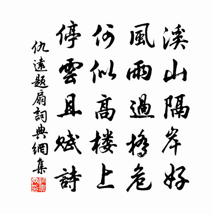 詩詞名句歷史字典書法欣賞書法字典國語詞典說文解字康熙字典古漢語字典標 題 作 者 詩 句 題扇作者:仇遠 朝代:宋代題扇原文溪山隔岸好,風雨過橋危。何似高樓上,停雲且賦詩。詩詞問答問:題扇的作者是誰?答:仇遠問:題扇寫於哪個朝代?答:宋代仇遠題扇書法欣賞題扇書法作品詩詞推薦古意曲劉瑤〔唐代〕梧桐階下月團團,洞房如水秋夜闌。吳刀剪破機頭錦,茱萸花墜相思枕。綠窗寂寞背燈時,暗數寒更不成寢。題坡公贈鄭介夫詩三首劉克莊〔宋代〕玉座見圖嘆,累累菜色民。如何崔白輩,只寫蔡奴真。種橦花陳高〔元代〕炎方有橦樹,衣被代蠶桑。舍西得閒園,種之漫成行。苗生初夏時,料理晨夕忙。揮鋤向烈日,灑汗成流漿。培根送余京同年兄通判嵐州蘇轍〔宋代〕矯矯吳越士,遠為並代行。寒暄雖雲異,慷慨慰平生。我昔在濟南,君時事淄青。連年食羊炙,便欲忘蓴羹。問君好事近(別傅丈)洪适〔宋代〕柳岸碧漪深,底事催人行色。無計曲留情話,只別愁如織。小蠻樊素兩傾城,幾度醉狂客。明日扁舟西去,聽歌聲寄題吳伯豐所居二首亦愛軒陳文蔚〔宋代〕心兮如太虛,何惡亦何愛。吾廬寄吾興,妙處端有在。於中忘歲時,疇覺屢遷代。但知曲肱眠,居然樂其內。無事老樹戴表元〔宋代〕老樹老且枯,數柯枝綴之。蟲來食其葉,藤來纏其皮。幸然根本堅,未至甚雕披。風霜既無損,雨露猶見私。如何和諸君觀畫鬼拔河蘇頌〔宋代〕關中古有拔河戲,傳聞始盛隋唐世。長絙百尺人兩朋,遞以勇力相牽制。芳華樂府務誇大,黎園公卿謾輕肆。拔山子瞻和陶公讀山海經詩欲同作而未成夢中得數蘇轍〔宋代〕此心淡無著,與物常欣然。虛閒偶有見,白雲在空間。愛之欲吐玩,恐為時俗傳。逡巡自失去,雲散空長天。永愧中秋見月寄子瞻蘇轍〔宋代〕西風吹暑天益高,明月耿耿分秋毫。彭城閉門青嶂合,臥聽百步鳴飛濤。使君攜客登燕子,月色著人冷如水。筵前言羅隱〔唐代〕珪玷由來尚可磨,似簧終日復如何。成名成事皆因慎,亡國亡家只為多。須信禍胎生利口,莫將譏思逞懸河。猩猩秋興九首其七擬杜子美秦觀〔宋代〕紫領寬袍漉酒巾,江頭蕭散作閒人。悲風有意催林葉,落日無情下水濱。車馬憧憧諸道路,市朝滾滾共埃塵。覓錢別曾運使趙蕃〔宋代〕鍾陵寂寞幾何年,公自茶山又一傳。萬里未能攀老鶴,晚風那復聽鳴蟬。乖離每覺如思古,流轉何知復拜前。剩欲依韻贈南安方處士五首徐夤〔唐代〕朝露灑時如濯錦,晚風飄處似遺鈿。重門剩著黃金鎖,莫被飛瓊摘上天。蘄城晚泊值雪董嗣杲〔宋代〕雁聲哀怨極淮天,際晚驚呼雪打船。古驛魚稀誰撒網,虛沙馬過自隨鞭。人煙頑獷空多智,形勝丘墟又幾年。龍眼送立上人離天竺講席往依虎丘禪院釋行海〔宋代〕心對青燈作死灰,劍池山色思徘徊。頂初試笠應嫌重,教有招書己懶開。楚塞數行春雁轉,吳天一片白雲來。定回虞美人晏幾道〔宋代〕一弦彈盡仙韶樂,曾破千金學。玉樓銀燭夜深深,愁見曲中雙淚、落香襟。從來不奈離聲怨,幾度朱弦斷。未知誰官舍閒居黃公度〔宋代〕朝市競紛華,山林甘寂寞。要之其間各有趣,飛鳥沖天魚縱壑。我本麋鹿姿,誤被簪紳縛。男婚女嫁苦逼人,薄宦題子瞻畫竹石黃庭堅〔宋代〕風枝雨葉瘠土竹,龍蹲虎踞蒼蘚石。東坡老人翰林公,醉時吐出胸中墨。黃鶯兒晁補之〔宋代〕南園佳枝偏宜暑。兩兩三三修篁,新篁新出初齊,猗猗過檐侵戶。聽亂颭芰荷風,細灑梧桐雨。午餘簾影參差,遠名句推薦君子以鐘鼓道志,以琴瑟樂心。荀子《荀子·樂論》 擲地,當作金石聲房玄齡《晉書·列傳·第二十六章》 天地無全功,聖人無全能,萬物無全用。列子及其弟子《列子·天瑞》 菩薩應如是布施。不住於相。鳩摩羅什譯《金剛經·妙行無住》 旅館寒燈獨不眠,客心何事轉悽然。高適《除夜作》 非鬼亦非仙,一曲桃花水辛棄疾《生查子·獨游雨岩》 形相雖惡而心術善,無害為君子也。荀子《荀子·非相》 高樓送客不能醉,寂寂寒江明月心。王昌齡《芙蓉樓送辛漸二首》 一枝紅艷露凝香,雲雨巫山枉斷腸。李白《清平調·其二》 故人在其下,塵土相豗蹴。蘇軾《送頓起》
