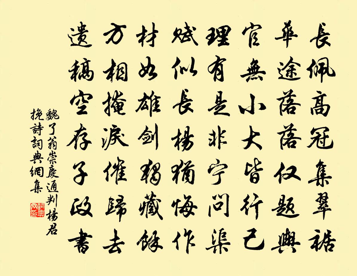 詩詞名句歷史字典書法欣賞書法字典國語詞典說文解字康熙字典古漢語字典標 題 作 者 詩 句 崇慶通判楊君輓詩作者:魏了翁 朝代:宋代崇慶通判楊君輓詩原文長佩高冠集翠裾,華途落落僅題輿。官無小大皆行己,理有是非寧問渠。賦似長楊猶悔作,材如雄劍獨藏余。方相掩淚催歸去,遺稿空存子政書。詩詞問答問:崇慶通判楊君輓詩的作者是誰?答:魏了翁問:崇慶通判楊君輓詩寫於哪個朝代?答:宋代魏了翁崇慶通判楊君輓詩書法欣賞崇慶通判楊君輓詩書法作品詩詞推薦題宅後井張耒〔宋代〕清泉十丈白如漿,甘似醍醐透◇涼。君欲道中無渴死,百尋操綆莫辭長。三禽言方岳〔宋代〕不如歸,燒痕青青春蕨肥。茅籬數掩山四圍,有秫可釀荷可衣。世間何地非危機,曷不長守西山飢。君不見秋崖醉與弁山道士飲周文璞〔宋代〕采茗歸來日未斜,更攜苦菜入仙家。後園同坐枯桐樹,仰看紅桃落澗花。除夕釋善珍〔宋代〕七十明朝是,年將衰並來。頑皮禁冷暖,老氣壓凶災。鐵硯穿何益,金丸跳不回。君兄愛伶利,與汝換痴獃。撫州城外作趙蕃〔宋代〕城中一雨僅飄灑,城外此雨乃霈滂。分龍古語信不妄,不爾惠施何偏方。我行驅車一何忙,早起猶乘昨夜涼。舊聞臥龍山程師孟〔宋代〕聞說林泉便訪尋,平田一逕上孤岑。榕陰落處宜千客,荔子生時直萬金。盡放遲回官舍近,不妨閒坐石門深。四邊和龍圖王學士經塗洛邑見寄宋庠〔宋代〕謝病台階別邃旒,更榮符鑰守司州。篋書已辯恩難報,台禮雖頒政未修。潄石洛波鳴佩曉,插雲嵩色紺屏秋。煩君次韻和吳仲庶池州齋山畫圖王安石〔宋代〕省中何忽有崔嵬,六幅生綃坐上開。指點便知岩石處,登臨新作使君來。雅懷重向丹青得,勝勢兼隨翰墨回。更想贈三局能師二絕蘇轍〔宋代〕旅食江乾秋復春,歸耕未遂不勝貧。憑師細考何年月,可買山田養病身。宮詞王仲修〔宋代〕岳神當面捧南山,馥郁非煙擁聖顏。法部笙歌催獻壽,闔門先引內朝班。山中即事文天祥〔宋代〕山中方雨笠,天外忽晴絲。夕釣江澄練,春行路布棋。乾坤供俯仰,歲月任差池。有酒如澠在,何妨日問奇。過陝邵雍〔宋代〕吾祖道何光,二南分一方。開周為太保,封陝輔成王。歲月裝遼邈,山川造渺茫。世孫雖不肖,猶解憶甘棠。遠山釋智圓〔宋代〕堆青才數點,杳杳幾千程。幽檻葉初落,高空雨乍晴。崔嵬微有狀,窈窕莫知名。招隱誰長往,眠雲自動情。文君和江子我見送詩王銍〔宋代〕放舟弄清泚,始覺南風清。白雲認鄉村,永念隨父兄。一夢三十載,將老猶遠行。聊將鄭衛耳,一聽新蟬鳴。空懷與王夷仲檢討祀社范成大〔宋代〕殘夜露如雨,秋氣淒以分。牆西雲正黑,跕跕墮金盆。良耜酢西成,豆籩蓊芳芬。去年歲大祲,小家甑生塵。疫鬼蘄州廣濟劉主簿梅堯臣〔宋代〕相識雖非久,相親似舊年。論文君豈後,尚齒我慚先。慣狎吳兒水,將浮楚客船。安知不離恨,高柳正鳴蟬。偈頌二十五首釋道璨〔宋代〕如來禪,祖師意。兒啼子哭,雞鳴犬吠。是汝諸人,瞥地也未。斗山接待劉黻〔宋代〕雲水無南北,幾人相往還。井深應接海,石顯為開山。佛塔寒流上,漁帆夕照間。保當脫塵鞅,分石伴僧閒。古驛陸游〔宋代〕古驛橋邊艇子橫,每因羈旅愜幽情。窗間月落無花影,枕上潮來有櫓聲。舊友凋零歸夢想,新詩邂逅得天成。今朝寄楞嚴大師文同〔宋代〕錦官城裡寺,一室若雲峰。水縮秋吟鼎,霜低夜講松。住齋塵入缽,出定蘚生筇。曾聽三摩義,居常夢曉鍾。名句推薦一年最好,偏是重陽。吳文英《惜黃花慢·菊》 世間花葉不相倫,花入金盆葉作塵。李商隱《贈荷花》 颯颯東風細雨來,芙蓉塘外有輕雷。李商隱《無題·颯颯東風細雨來》 摩頂放踵利天下,為之。孟子《孟子·盡心章句上·第二十六節》 偶參伍之驗,以責陳言之實韓非及後人《韓非子·備內》 人煙寒橘柚,秋色老梧桐。李白《秋登宣城謝朓北樓》 拆桐花爛熳,乍疏雨、洗清明。柳永《木蘭花慢·拆桐花爛熳》 共敵不如分敵,敵陽不如敵陰。佚名《三十六計·圍魏救趙》 世上無難事,只要肯登攀。 * 《水調歌頭·重上井岡山》 月色穿簾風入竹,倚屏雙黛愁時。顧敻《臨江仙·月色穿簾風入竹》
