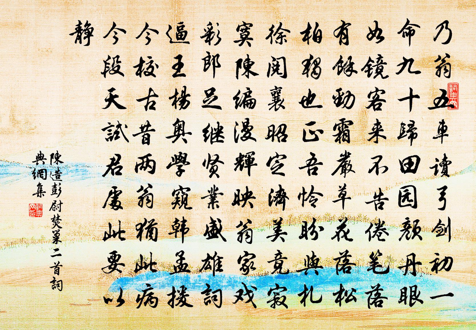 詩詞名句歷史字典書法欣賞書法字典國語詞典說文解字康熙字典古漢語字典標 題 作 者 詩 句 彭尉焚巢二首作者:陳造 朝代:宋代彭尉焚巢二首原文乃翁五車讀,弓劍初一命。九十歸田園,顏丹眼如鏡。客來不告倦,筆落有餘勁。霜嚴草花落,松柏獨也正。吾憐盼與札,徐閱襄昭定。濟美竟寂寞,陳編漫輝映。翁家戲彩郎,足繼賢業盛。雄詞逼王楊,奧學窺韓孟。援今校古昔,兩翁猶此病。今段天試君,處此要以靜。詩詞問答問:彭尉焚巢二首的作者是誰?答:陳造問:彭尉焚巢二首寫於哪個朝代?答:宋代陳造彭尉焚巢二首書法欣賞彭尉焚巢二首書法作品詩詞推薦戲呈孔毅父黃庭堅〔宋代〕管城子無食肉相,孔方兄有絕交書。文章功用不經世,何異絲窠綴露珠。校書著作頻詔除,猶能上車問何如。忽憶秋夕嘆白髮詩何遜〔南北朝〕絲白不難染。蓬生直易扶。唯見星星鬢。獨與眾中殊。昔年十四五。率性既廉隅。直是安被褐。非敢慕懷珠。何言開善寺詩陰鏗〔南北朝〕鷲嶺春光遍。王城野望通。登臨情不極。蕭散趣無窮。鶯隨入戶樹。花逐下山風。棟里歸雲白。牕外落暉紅。古石頌古釋慧空〔宋代〕梁魏山河本太平,無端容此老狐精。九年皮髓分張盡,只履空棺更誑人。過曹娥江釋寶曇〔宋代〕錢塘雪浪與天平,小入曹娥亦有聲。滄海一時忠孝淚,夕陽無盡古今情。春秋祭血神如在,一夜行舟挽到明。不是菊花新葛長庚〔宋代〕有個悶甚處,一向如痴醉。獨倚住危闌,坐咬無名指。金魚玉雁一從去,絕訊息。念念懷天帝。密與冥契。晴霞照所思蘇泂〔宋代〕香爐峰頂行人絕,曾借匡廬帶雪看。今日東州逢六月,恍然回首一清寒。青山白雲歌陸游〔宋代〕青山白雲翁,放浪酒中死;埋骨長松根,夜夜聽溪水。松老會作薪,骨朽會作塵;但留千載狂名在,知我它年自有新安道中許月卿六〔宋代〕白水黃山天一青,雪梨金柳眼雙明。要知來日清明日,請聽鵑鳴第一聲。雜賦陸游〔宋代〕櫛發晨興後,寬腰午餉余。講明窮理學,讎校養生書。倚杖聽啼鳥,臨池看戲魚。怡然又終日,底事解愁予?江雪柳宗元〔唐代〕千山鳥飛絕,萬徑人蹤滅。孤舟蓑笠翁,獨釣寒山雪。解舟惠州東橋楊萬里〔宋代〕南宦寧差北,西歸敢再東。猿聲雲樹月,客枕露船風。綠髮春全白,蒼顏酒不紅。莫憎愁與病,留取伴衰翁。酬楊休文羅椅〔宋代〕未交君臂得君詩,一掬清寒已可知。寫就榴皮書壁字,吟成松上步虛詞。臥看山月涼生夢,飢嚼梅花香透脾。補被和靜照詩韻釋普度〔宋代〕汲來崖瀑煮新茶,紫玉甌中現瑞霞。到此豁然如夢覺,一天疏雨濕秋花。和宿牛山館蘇頌〔宋代〕山深孤館迥,部落不成城,夜永人無寐,冬溫氣自清。夷音通夏楚,漢地接平營。恩信今無外,邊庭肯背盟。再用韻方岳〔宋代〕終須西塞老漁村,抵用南昌隱市門。時序略如飛鳥過,世終何啻聚蚊喧。竹其安否六太息,梅自癯然三可尊。貧味長亭怨(別陳行之)張炎〔宋代〕跨匹馬、東瀛煙樹。轉首十年,旅愁無數。此日重逢,故人猶記舊遊否。雨今雲古。更秉燭、渾疑夢語。袞袞登台驀山溪佚名〔宋代〕小山蒼翠,竹影橫窗畔。青縷斷薰爐,覺身居、風台月觀。清香招近,誰為植幽叢,金作蓓,蕾成花,尚帶鵝黃淺代挽趙工侍湯氏人三首劉宰〔宋代〕西湖野樹上林花,竹樂誰知大尹家。簾幕垂垂人兀坐,金猊香散日西斜。秋日會遠華館呈胡仲威劉克莊〔宋代〕嶺表豈必熱,庚伏頻滂沱。薄暮辱招要,盆李參瓶荷。君侯如長松,折節交藤蘿。奇字識夏鼎,古音彈雲和。今日名句推薦文豈有常體,但以有體爲常李大師、李延壽《南史·列傳·卷三十二》 綠雲擾擾,梳曉鬟也;杜牧《阿房宮賦》 念碎劈芳心,縈思千縷,贈將幽素,偷翦重雲。吳文英《風流子·黃鐘商芍藥》 江東子弟今雖在,肯與君王卷土來?王安石《疊題烏江亭》 君是南山遺愛守,我為劍外思歸客。蘇軾《滿江紅·江漢西來》 故人書報,莫因循、忘卻蓴鱸。辛棄疾《漢宮春·會稽秋風亭觀雨》 日上,正赤如丹,下有紅光,動搖承之。姚鼐《登泰山記》 惟草木之零落兮,恐美人之遲暮。屈原《離騷》 燈火紙窗修竹里,讀書聲。陳繼儒《浣溪沙·初夏夜飲歸》 浪花有意千里雪,桃花無言一隊春。李煜《漁父·浪花有意千里雪》