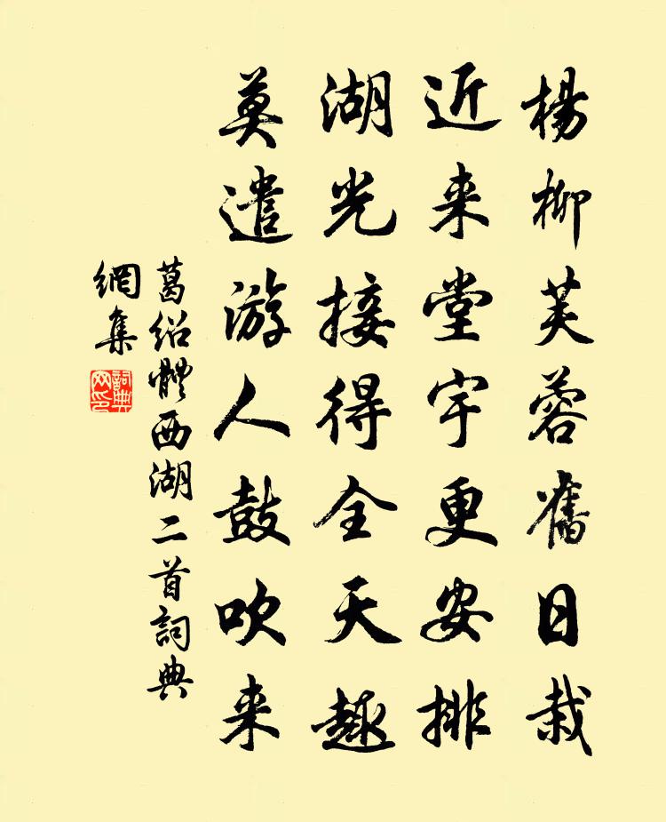 詩詞名句歷史字典書法欣賞書法字典國語詞典說文解字康熙字典古漢語字典標 題 作 者 詩 句 西湖二首作者:葛紹體 朝代:宋代西湖二首原文楊柳芙蓉舊日栽,近來堂宇更安排。湖光接得全天趣,莫遣遊人鼓吹來。詩詞問答問:西湖二首的作者是誰?答:葛紹體問:西湖二首寫於哪個朝代?答:宋代葛紹體西湖二首書法欣賞西湖二首書法作品詩詞推薦句張釜〔宋代〕西湖天下勝。頌古二十四首釋勝〔宋代〕展事無回互,投機通一線。洞山無眼筋,入地獄如箭。沁園春 按原誤作滿庭芳,茲據律改。佚名〔宋代〕遇此荒年,天下門徒,受魔受難。過此番才顯真誠,道友殺那,慷慨應過天仙。廣化天尊,忠昭烈士,甲子旬中要落花怨十首劉克莊〔宋代〕徐庾空浮艷,何曾有一篇。我朝惟二宋,絕唱兩三聯。濯錦江蘇泂〔宋代〕機絲波影借光華,巴女臨流住幾家。爭向芳菲偷錦樣,織成平白濺江花。破衲釋善珍〔宋代〕破衲襤襂兩鬢霜,耳邊誰管俗雌黃。自騎驢煉推敲字,不與人知安樂方。五柳傳中尋靖節,孤桐聲里見嵇康。深山春日書事呈歷陽縣蘇仁仲八首王之道〔宋代〕情似長江流不斷,事如芳草剗還生。此身何苦浮名絆,正擬花時取次行。【雙調】壽陽曲_千年調,一阿魯威〔元代〕千年調,一旦空,惟有紙錢灰晚風吹送。盡蜀鵑血啼煙樹中,喚不回一場春夢。臨安旅邸答蘇虞叟姜夔〔宋代〕生楊風雨小樓寒,宋玉秋詞不忍看。萬里青山無處隱,可憐投老客長安。梧桐嶺感舊方回〔宋代〕憶上梧桐嶺,江淮萬里開。匡廬天外畫,彭蠡地中杯。暖欲還燕雁,香應落庾梅。重來感時序,更覺子山哀。東湖北崦人家釋文珦〔宋代〕柴門映石柟,茅屋似僧庵。蠶候家人熟,耕時父老諳。設罝當兔徑,添竹護魚潭。賽雨鳴簫鼓,迎神向水南。經陸補闕隱居綦毋潛〔唐代〕不敢要君征亦起,致君全得似唐虞。讜言昨嘆離天聽,新象今聞入縣圖。琴鎖壞窗風自響,鶴歸喬木隱難呼。學書清江引·托詠宋方壺〔明代〕剔禿圞一輪天外月,拜了低低說:是必常團圓,休著些兒缺,願天下有情底都似你者。次韻范景文鶯字早字二首方回〔宋代〕深衣講儒業,羽衣學仙道。變 * 變衣,又謂田衣好。三叉路口人,左右惑憂抱。不如從我游,一醉玉山倒。美豈幽居雜興真山民〔宋代〕松桂小菟裘,山扉幽更幽。蜂王衙早晚,燕子社春秋。鬢禿難庶老,心寬不貯愁。年來把鋤手,無復揖公侯。和純甫獨往至德上方避暑強至〔宋代〕敝屋數楹隘,炎曦一線長。梅仙厭煩溽,蕭寺得清涼。山鳥聒幽耳,澗泉蠲渴腸。茲游君獨勝,河朔浪飛觴。覺道同玩梅張嵲〔宋代〕雪盡徑泥乾,團欒繞樹看。玉梅呈素艷,霜重月華寒。一萼半含春意密,數苞未破胭脂粒。斜枝倒浸碧池深,羅衣城南雜題劉敞〔宋代〕當日龍船校五兵,旋開池沼學昆明。邇來封禪和平久,舊地分教百姓耕。次韻和吳侍郎偶至城西一二名園宋庠〔宋代〕幾曲西園路,幽深隱歲華。偶乘安道興,直過辟疆家。畦脈爭分溜,叢名各記花。身閒飛蓋遠,容易到曛霞。寄行宮監門王以通釋永頤〔宋代〕玉鉤簾外前朝柳,斬鴨闌邊小艷葩。莫道君王不曾問,好收銀鑰護宮花。名句推薦馬逢伯樂而嘶,人遇知己而死。羅貫中《三國演義·第六十回》 疲馬山中愁日晚,孤舟江上畏春寒。張謂《杜侍御送貢物戲贈》 算明朝、未了重陽,紫萸應耐看。吳文英《霜花腴·重陽前一日泛石湖》 耽於女樂,不顧國政,則亡國之禍也。韓非及後人《韓非子·十過》 俱往矣,數風流人物,還看今朝。 * 《沁園春·雪》 願為西南風,長逝入君懷。曹植《七哀詩》 葉落風不起,山空花自紅。陳師道《妾薄命·為曾南豐作》 易挑錦婦機中字。難得玉人心下事。劉克莊《玉樓春·戲林推》 白頭燈影涼宵里,一局殘棋見六朝。錢謙益《金陵後觀棋絕句六首·選一》 君看獲稻時,粒粒脂膏香。黃燮清《秋日田家雜詠》