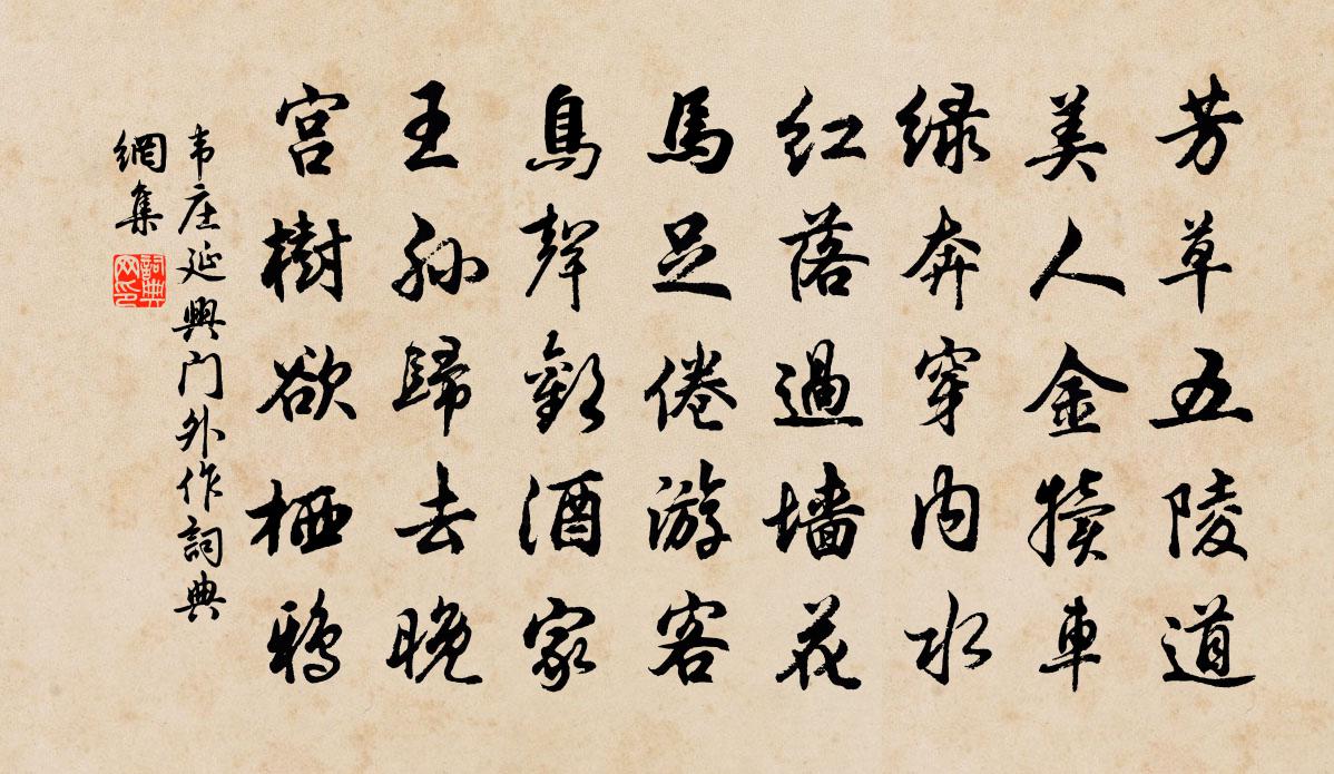 芳草五陵道,美人金犢車。綠奔穿內水,紅落過牆花。