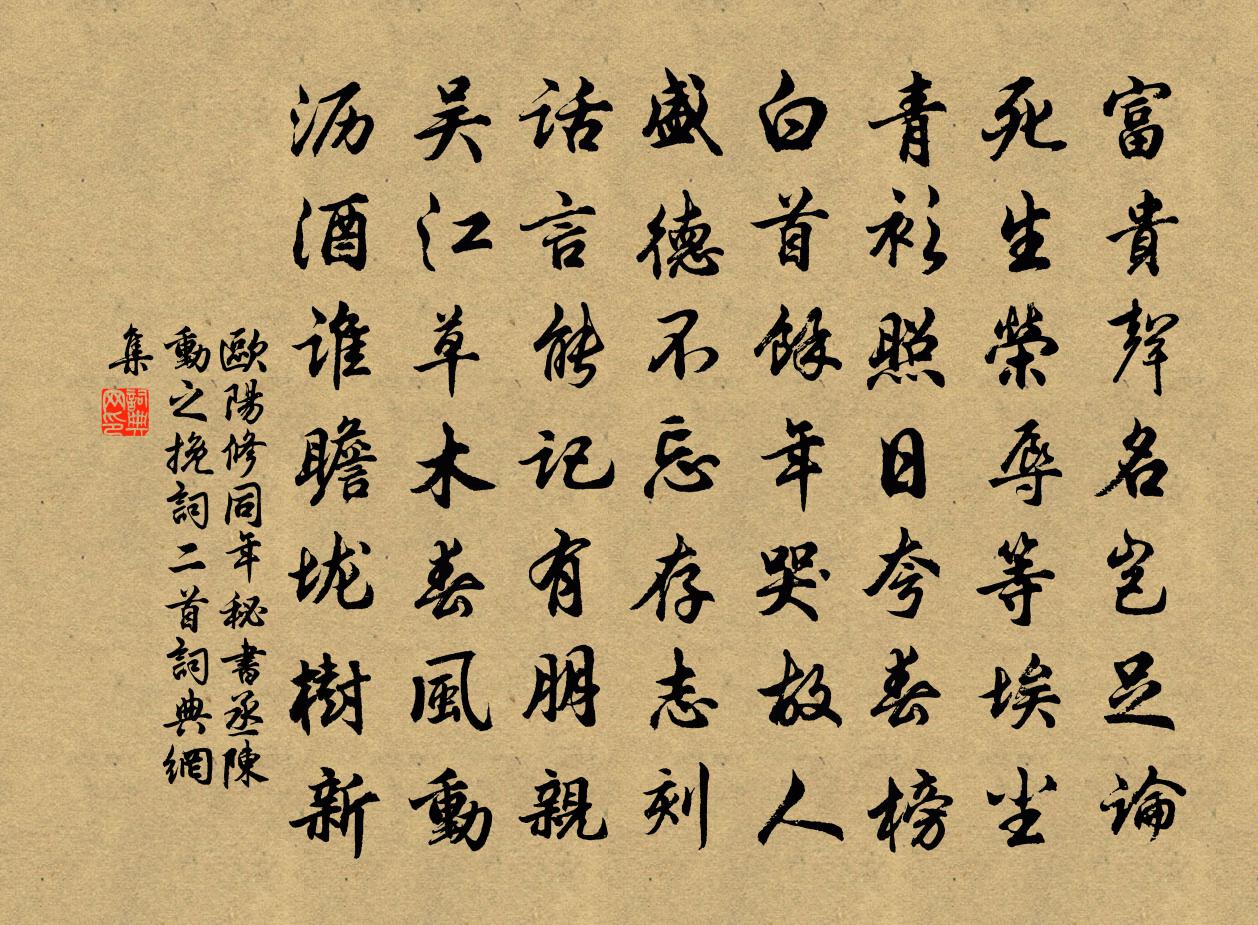 歐陽修同年秘書丞陳動之輓詞二首書法欣賞
