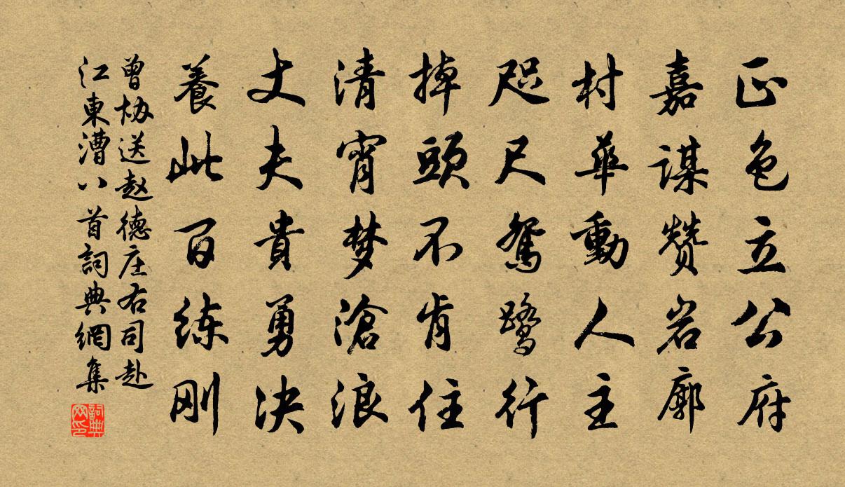 詩詞名句歷史字典書法欣賞書法字典國語詞典說文解字康熙字典古漢語字典標 題 作 者 詩 句 送趙德莊右司赴江東漕八首作者:曾協 朝代:宋代送趙德莊右司赴江東漕八首原文正色立公府,嘉謀贊岩廓。村華動人主,咫尺鴛鷺行。掉頭不肯住,清宵夢滄浪。丈夫貴勇決,養此百練剛。詩詞問答問:送趙德莊右司赴江東漕八首的作者是誰?答:曾協問:送趙德莊右司赴江東漕八首寫於哪個朝代?答:宋代曾協送趙德莊右司赴江東漕八首書法欣賞送趙德莊右司赴江東漕八首書法作品詩詞推薦客來得鄰人攜酒共飲董嗣杲〔宋代〕我無膚寸能,強顏榷茶課。若是玉川子,見之生饞唾。客來無可款,談空面壁坐。雷聲繞枯腸,啜茶寧忍餓。鄰翁送楊念行監簿侍行赴鄂渚張耒〔宋代〕楚天南去水冥冥,鄂渚悠悠到幾程。京洛信稀千里隔,江湖春盡一帆輕。莫辭送別青春滿,會是相逢白髮生。飽讀甲寅西歸江行春懷十首汪莘〔宋代〕繞屋桃花可得追,迎門猶有海棠枝。牡丹未放酴醾小,併入青梅煮酒時。陳武帝釣台周弼〔宋代〕歸心終自遂,何必戀虛聲。轉覺青衫惡,誰憐白髮生。掃花山石瘦,洗藥野泉清。應有忘機者,時來伴我行。送別吳帥楊萬里〔宋代〕我公四海不數人,小煩江西作好春。落霞秋水只似舊,如何入筆事事新?即今諸公方袞袞,一老不應閒里頓。政緣發通州文天祥〔宋代〕淮水淮山阻且長,孤臣性命寄何鄉。只從海上尋歸路,便是當年不死方。董卓蘇軾〔宋代〕公業平時勸用儒,諸公何事起相圖。只言天下無健者,豈信車中有布乎。朝南以詩送巴石研屏香幾用韻香幾洪咨夔〔宋代〕竹風吹酒未全醒,夢入香爐五老雲。好句得君青玉案,起來盥手炷清熏。花犯(桃花)楊 * 〔宋代〕百花中,夭桃秀色,堪餐作珍味。武陵溪上,□宋玉牆頭,全勝姝麗。去年此日佳人倚。凝情心暗喜。恨未得、合江亭晚眺張紹文〔宋代〕登高便可豁雙明,吟外還能見物情。南北盛衰關大數,英雄得失總虛名。莫雲千里鄉心遠,寒雁一聲秋意清。江上寄劉蘇州白居易〔唐代〕去年八月哭微之,今年八月哭敦詩。何堪老淚交流日,多是秋風搖落時。泣罷幾回深自念,情來一倍苦相思。同年對卷劉克莊〔宋代〕妙在心通與理融,卓然有見是英雄。大儒晚作韓考異,往哲曾非墨尚同。折角爭希郭有道,鬀眉求似狄梁公。可憐春日西興道中張栻〔宋代〕一川曉色鷺分去,兩岸煙花鶯帶來。徑欲卜居從釣叟,綠楊缺處竹門開。臨江仙(勸酒)史浩〔宋代〕自古聖賢皆寂寞,只教飲者留名。萬花叢里酒如澠。池台仍舊貫,歌管有新聲。欲識醉鄉真樂地,全勝方丈蓬瀛。偈頌一百一十七首釋紹曇〔宋代〕示大家身,為帝王母。與佛同生,福兼寰宇。萬國歡悰慶誕彌,蟠桃何止宴瑤池。緣識宋太宗〔宋代〕大丈夫兮兼文武。君子能仁潛喜怒。強明非是盡周旋,滿眼真如不自取。三春花卉正芬芳,發作痴迷我也狂。道德春暮思平泉雜詠二十首。望伊川(自此並淮南作)李德裕〔唐代〕遠村寒食後,細雨度川來。芳草連谿合,梨花映墅開。槿籬懸落照,松徑長新苔。向夕亭皋望,游禽幾處回。送張明德使君赴南恩州柳貫〔元代〕幾許炎州畫裡山,西風驅向馬前看。詩人舊志三刀喜,邊候新乘一障安。時取椰漿斟玉液,饒將桂蠹存雕盤。雪花浪淘沙(自南遊,多崇岡,陵峻岭,略見西湖秀色,用和靖語作長短句雲)惠洪〔宋代〕山徑晚樵還。深壑孱顏。孫山背後泊船看。手把遺編披白帔,剩卻清閒。籬落竹叢寒。漁業凋殘。水痕無底照秋寬句滕岑〔宋代〕客櫓行何晚,鄰機織未休。名句推薦卻下水晶簾,玲瓏望秋月。李白《玉階怨》 人不能不樂,樂則不能無形,形而不為道,則不能無亂。荀子《荀子·樂論》 放逐肯消亡國恨?歲時猶動楚人哀!查慎行《三閭祠》 黃河落天走東海,萬里寫入胸懷間。李白《贈裴十四》 莫笑他人老,終須還到老。佚名《增廣賢文·上集》 細看來,不是楊花,點點是離人淚。蘇軾《水龍吟·次韻章質夫楊花詞》 山有扶蘇,隰有荷華。佚名《山有扶蘇》 風急桃花也似愁,點點飛紅雨。如晦《楚天遙過清江引·有意送春歸》 是故去智而有明,去賢而有功。韓非及後人《韓非子·主道》 重重疊疊上瑤台,幾度呼童掃不開。蘇軾《花影》