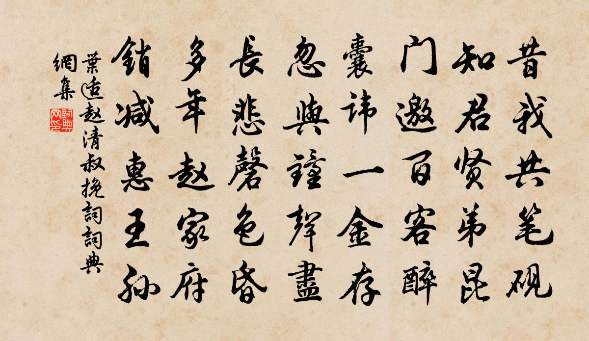詩詞名句歷史字典書法欣賞書法字典國語詞典說文解字康熙字典古漢語字典標 題 作 者 詩 句 趙清叔輓詞作者:葉適 朝代:宋代趙清叔輓詞原文昔我共筆硯,知君賢弟昆。門邀百客醉,囊諱一金存。忽與鐘聲盡,長悲磬色昏。多年趙家府,銷減惠王孫。詩詞問答問:趙清叔輓詞的作者是誰?答:葉適問:趙清叔輓詞寫於哪個朝代?答:宋代葉適趙清叔輓詞書法欣賞趙清叔輓詞書法作品詩詞推薦和花村趙希逢〔宋代〕路入前村認杏花,門前水積半溪沙。風漢仿佛朱陳俗,白酒黃雞姓兩家。次韻吳伯庸竹間梅花十絕釋紹嵩〔宋代〕孤芳高節共亭亭,子細相看似有情。春色惱人眠不得,移床換枕到天明。游山陽十首陳造〔宋代〕邗溝帆席即長淮,鬢未霜時慣往回。絳縣老人今若此,此生更復幾番來。唐享太廟樂章。景雲舞佚名〔唐代〕景雲霏爛,告我帝符。噫帝沖德,與天為徒。笙鏞遙遠,俎豆虛無。春秋孝獻,回復此都。望仙門晏殊〔宋代〕玉壺清漏起微涼。好秋光。金杯重疊滿瓊漿。會仙鄉。新曲調絲管,新聲更颭霓裳。博山爐暖泛濃香。泛濃香。為自和山房十詠李曾伯〔宋代〕禪房寂寂夜昏昏,相對長明一點燈。舉似新詩共僧話,笑儂綺語污溪藤。和永叔從駕謁景靈宮韓維〔宋代〕馳道塵清生紫煙,帝臨原廟拜衣冠。日華先向金輿動,霜氣猶通玉仗寒。後騎綿裘明粲粲,侍臣瑤佩響珊珊。一聞別滿首座釋正覺〔宋代〕丹山鳳窟冷相依,慚愧如今羽翼齊。雲外翔鳴同頡頏,林間啄步暫分攜。玉華銜處天容曉,珠樹棲時月影低。引喙袁從道山廬三首葛紹體〔宋代〕人生盡馳騖,忙裡換烏兔。白髮忽相侵,紅顏若何駐。豈如向丘壑,味此閒中趣。鶬鶊啼春風,鳲鳩喚時雨。因林借宿洞門五絕程公許〔宋代〕身是西來旦過僧,洞門一再解行滕。老師若許中分魯,也會漫天話葛藤。鷓鴣天晏幾道〔宋代〕手拈香箋憶小蓮欲將遺恨倩誰傳歸來獨臥逍遙夜夢裡相逢酩酊天花易落,月難圓只應花月似歡緣秦箏算有心情在試游武夷作棹歌呈晦翁十首辛棄疾〔宋代〕千丈攙天翠壁高,定誰狡獪插遺樵。神仙萬里乘風去,更度槎枒個樣橋。經錢塘故宮蔡襄〔宋代〕廢苑蕪城裹故宮,行人苑外問秋風。當時歌舞何年盡,此意古今無處窮。往事蕭條隨改葉,客情迢遞寄孤鴻。扁般桂枝香佚名〔宋代〕武夷九曲。甚樂響雲韶,旆走星纛。更捧瓊漿九醞,蟠桃初熟。元來崧岳生申旦,會群仙、獻長生籙。歲寒堂上,送陳兼應辟兼寄高適、賈至獨孤及〔唐代〕結綠處燕石,卞和不必知。所以王佐才,未能忘茅茨。罷官梁山外,獲稻楚水湄。適會傅岩人,虛舟濟川時。天網題歸夢李賀〔唐代〕長安風雨夜,書客夢昌谷。怡怡中堂笑,小弟栽澗綠。家門厚重意,望我飽飢腹。勞勞一寸心,燈花照魚目。椹澗晝夢梅堯臣〔宋代〕誰謂死無知,每出輒來夢。豈其憂在途,似亦會相送。初看不異昔,及寤始悲痛。人間轉面非,清魂歿猶共。雁門關野望許棠〔唐代〕高關閒獨望,望久轉愁人。紫塞唯多雪,胡山不盡春。河遙分斷野,樹亂起飛塵。時見東來騎,心知近別秦。送李回李頎〔唐代〕知君官屬大司農,詔幸驪山職事雄。歲發金錢供御府,晝看仙液注離宮。千岩曙雪旌門上,十月寒花輦路中。不睹依韻酬周騤太博同年范仲淹〔宋代〕孰敢先懷富貴圖,良時須惜幾嗟吁。眾心可致巍巍主,上意思平兩兩符。不稱內朝裨耳目,多慚外補救皮膚。子陵名句推薦錢塘江上潮信來,今日方知我是我。施耐庵《水滸傳·第一百一十九回》 實無有法佛得阿耨多羅三藐三菩提。鳩摩羅什譯《金剛經·究竟無我》 笛中聞折柳,春色未曾看。李白《塞下曲六首·其一》 涓涓不壅,終為江河佚名《孔子家語·觀周》 雲中誰寄錦書來,雁字回時,月滿西樓。李清照《一剪梅·紅藕香殘玉簟秋》 無人調護,自去經心。沈復《浮生六記·閨房記樂》 千尺陰崖塵不到,惟有層冰積雪。辛棄疾《賀新郎·用前韻送杜叔高》 昨夜吳中雪,子猷佳興發。李白《答王十二寒夜獨酌有懷》 怒不過奪,喜不過予。荀子《荀子·修身》 天與秋光,轉轉情傷,探金英知近重陽。李清照《行香子·天與秋光》