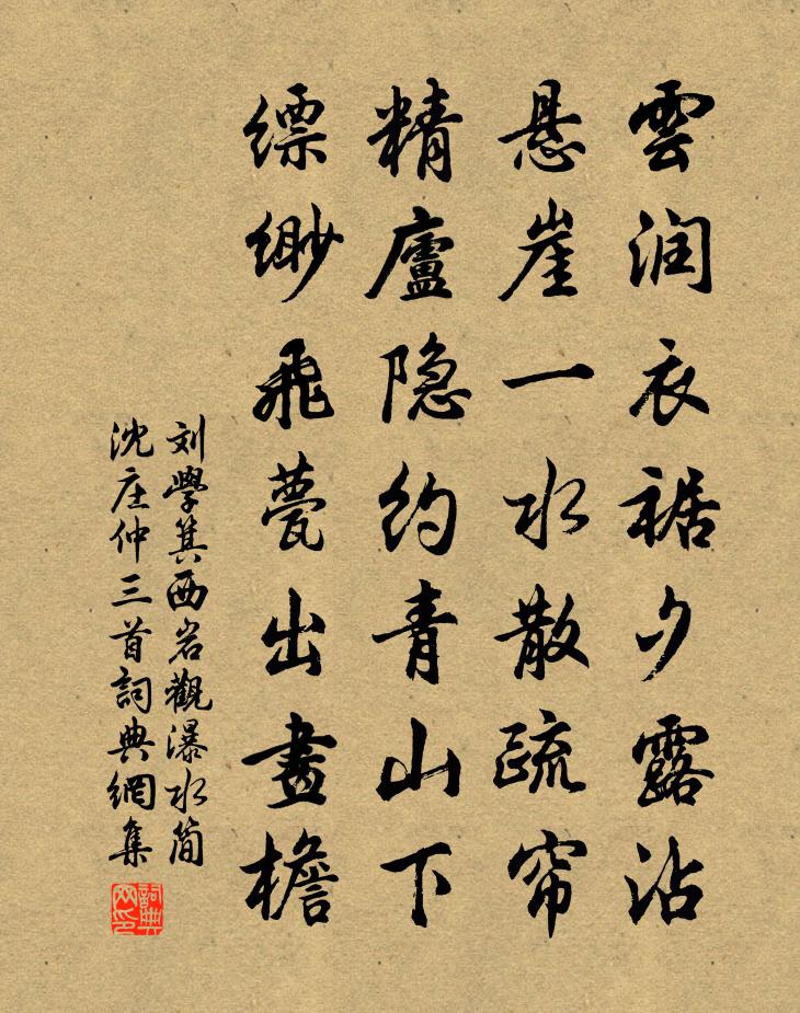 詩詞名句歷史字典書法欣賞書法字典國語詞典說文解字康熙字典古漢語字典標 題 作 者 詩 句 西岩觀瀑水簡沈莊仲三首作者:劉學箕 朝代:宋代西岩觀瀑水簡沈莊仲三首原文雲潤衣裾夕露沾,懸崖一水散疏簾。精廬隱約青山下,縹緲飛甍出畫檐。詩詞問答問:西岩觀瀑水簡沈莊仲三首的作者是誰?答:劉學箕問:西岩觀瀑水簡沈莊仲三首寫於哪個朝代?答:宋代劉學箕西岩觀瀑水簡沈莊仲三首書法欣賞西岩觀瀑水簡沈莊仲三首書法作品詩詞推薦觀項信水墨方乾〔唐代〕險峭雖從筆下成,精能皆自意中生。倚雲孤檜知無朽,掛壁高泉似有聲。轉扇驚波連岸動,回燈落日向山明。小年居延海樹聞鶯同作陳子昂〔唐代〕邊池無芳樹。鶯聲忽聽新。間關如有意。愁絕若懷人。明妃失漢寵。蔡女沒胡塵。坐聞應落淚。況憶故園春。跋吳箕秀才楊萬里〔宋代〕君家子華翰林老,解吟芳草夕陽愁。開紅落翠天為泣,覆手作春翻手秋。晚唐異味今誰嗜,耳孫下筆參差是。一徑元日即事四首程公許〔宋代〕鳳銜丹詔紀初元,余恨難忘杞國天。賢路當三接接書,宅家可卜中興年。出車示可忘多難,覃耜尤須祝大田。千古大夢誰先覺羅貫中〔明代〕大夢誰先覺?平生我自知。草堂春睡足,窗外日遲遲。齊天樂方衡〔宋代〕皇天眷佑中興烈。維岳共生鴻碩。鎮撫精神,規恢調度,未數至言長策。中原徯望,總萬里山河,盡歸經畫。更看四景釋慧空〔宋代〕急雨近欲黑,斜暉遠更明。倚樓誰氏子,興與大江橫。宋守敬引諺佚名〔唐代〕雙陸無休勢。蘆山寺舒坦〔宋代〕雲山流水水中山,盡日青藜共往還。更向僧房看圖畫,不知身在畫圖間。【中呂】滿庭芳_碧山丹房閒張可久〔元代〕碧山丹房閒閒道隱,玄玄妙門,怪怪山人。予生自有神仙分,何必尋真?紅的花開小春,碧檀欒樹倚蒼雲。 * 韻豐城道中聞鶯書於故縣廖行之〔宋代〕底事離群今暮春,故人懷想渴生塵。陽交聲斷空回首,慚愧遷喬鳥語新。仲宗許過我甚久一見便有去意戲用春字韻留之李彌遜〔宋代〕麥秋數盡稻花春,六尺茅茨百懶身。散策崎嶇聊永日,擊舟剝啄定幽人。關心有念真形役,過眼無根俱客塵。肯著水龍吟劉處玄〔元代〕此時辛酉初冬,下元望夜逢甘雨。麥苗滋長,深根固蒂,多歡少慮。念道無災禍,聖賢佑眾,生無苦遇。天元將末強顏寄任道子權王令〔宋代〕強顏求世亦何從,甔石時時得復空。何日能無寒餓役,此身得與聖賢終。人生汲汲須高致,世態渾渾未易窮。安得道傍見梅杜范〔宋代〕一樹棲殘雪,不禁春夜霜。香飄非寶篆,粉褪厭時妝。且合收余白,應難待晚黃,自便籬落好,榛棘不相妨。留題泰山孫復先生新居祖無擇〔宋代〕築室新成日觀前,亂雲重疊稱高眠。人逢捫虱驚旁若,眾望乘駒詠賁然。名理靜談誰捉塵,古書閒校自磨鉛。行聞過鄱陽湖次遊子明韻范成大〔宋代〕春工釀雪無端密,大塊囊風不肯收。休問巉岩與欹側,我今弟靡共波流。野鷹兀兀平沙上,折葦蕭蕭古渡頭。滿眼辛亥各口占十絕劉克莊〔宋代〕誅虎竊弓誰繼者,留邕執筆定何如。東都台閣猶多士,未便無人續漢書。舟發清江釋紹嵩〔宋代〕穩泛一船東,生涯真轉蓬。煙浮平野碧,波軟夕陽紅。蒲樹家家異,風光處處同。回看蒼木杪,眼界入雲中。怪夢十首方回〔宋代〕倜儻千金盡,艱難斗酒謀。有生誰不死,惟醉暫無愁。彭澤先生去,周南太史留。誰家錦步障,還墜綠珠樓。名句推薦當年萬里覓封侯。匹馬戍梁州。陸游《訴衷情·當年萬里覓封侯》 君子成人之美,不成人之惡;小人反是。孔子弟子《論語·顏淵篇》 露蓼香涇,記年時相識吳文英《尾犯·甲辰中秋》 白頭空負雪邊春,著意問春春不語。劉鎮《玉樓春·東山探梅》 東風兮東風,為我吹行雲使西來。李白《久別離》 以繩墨取木,則宮室不成矣。呂不韋《呂氏春秋·覽·離俗覽》 玉座猶寂寞,況乃妾身輕。謝朓《同謝諮議詠銅雀台》 雙星何事今宵會,遺我庭前月一鉤。德容《七夕二首·其一》 便做春江都是淚,流不盡,許多愁。秦觀《江城子·西城楊柳弄春柔》 人不可貌相,海水不可斗量。馮夢龍《醒世恆言·卷三》
